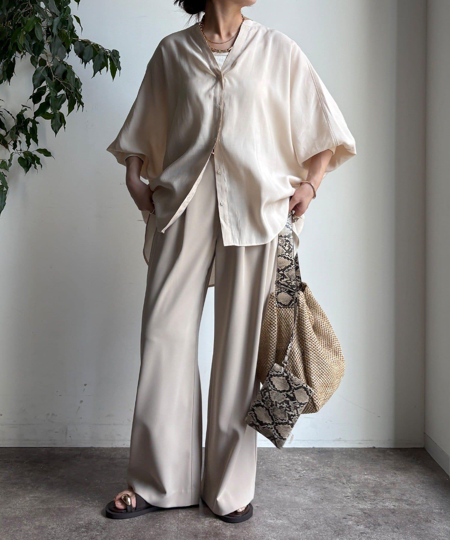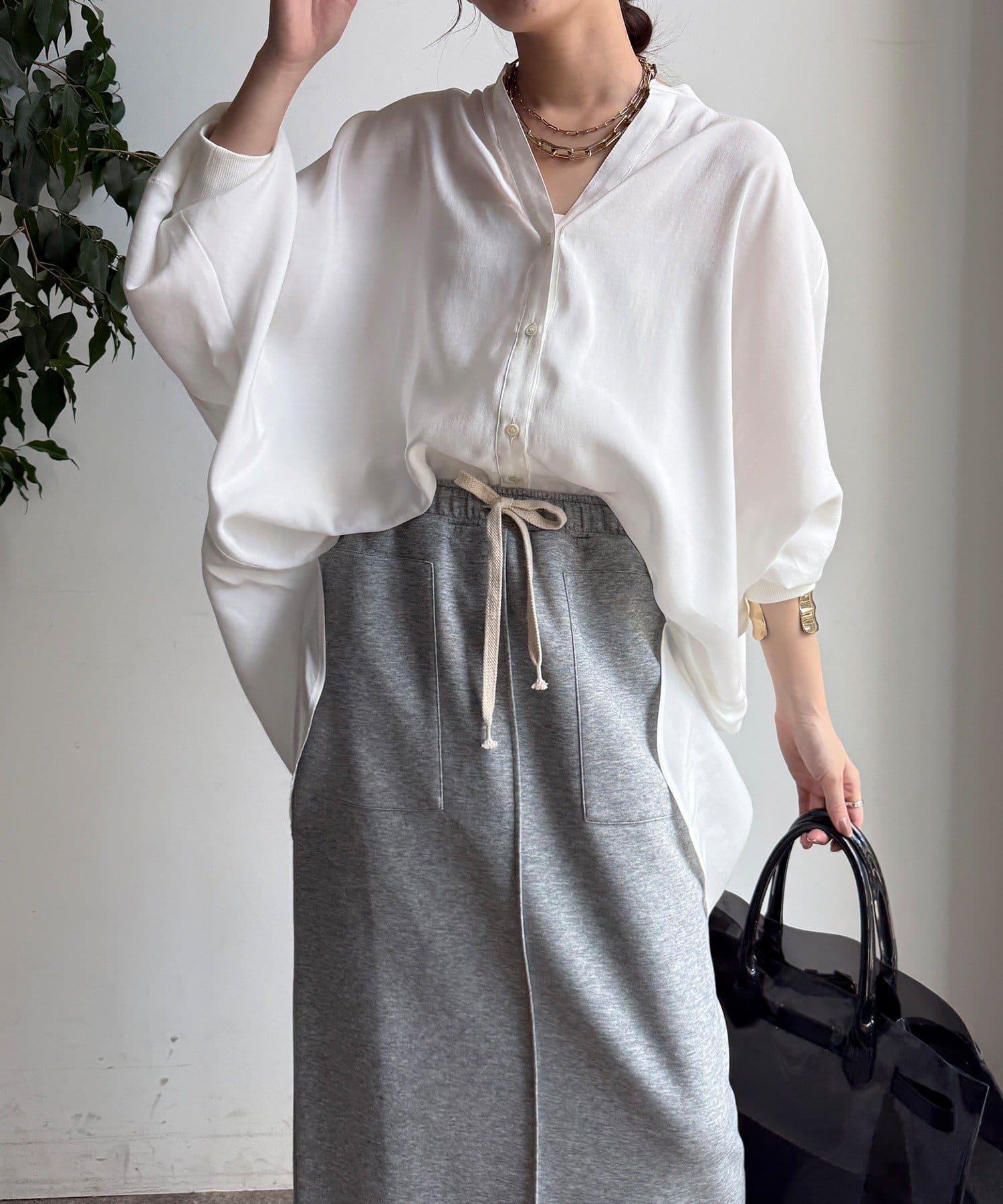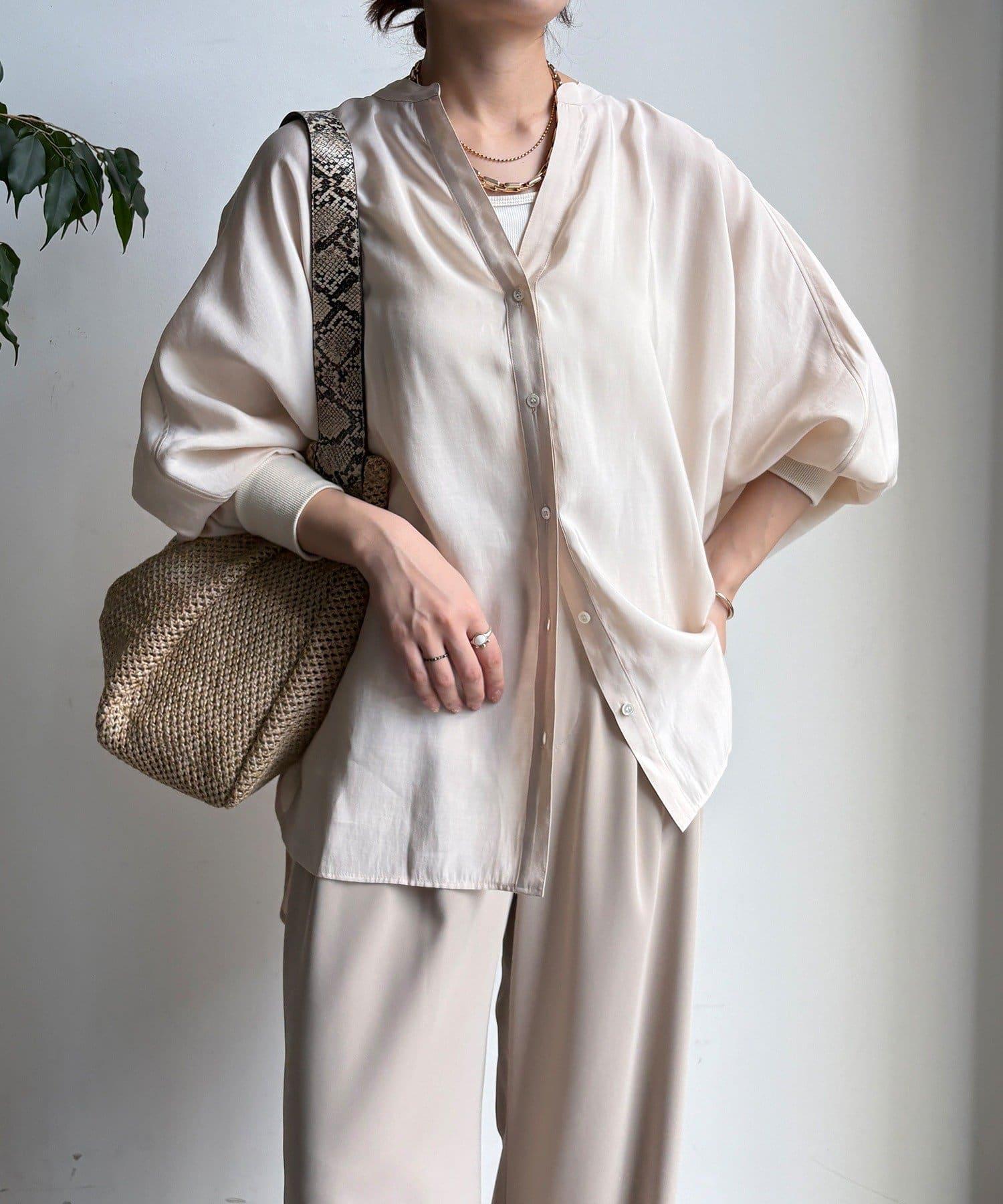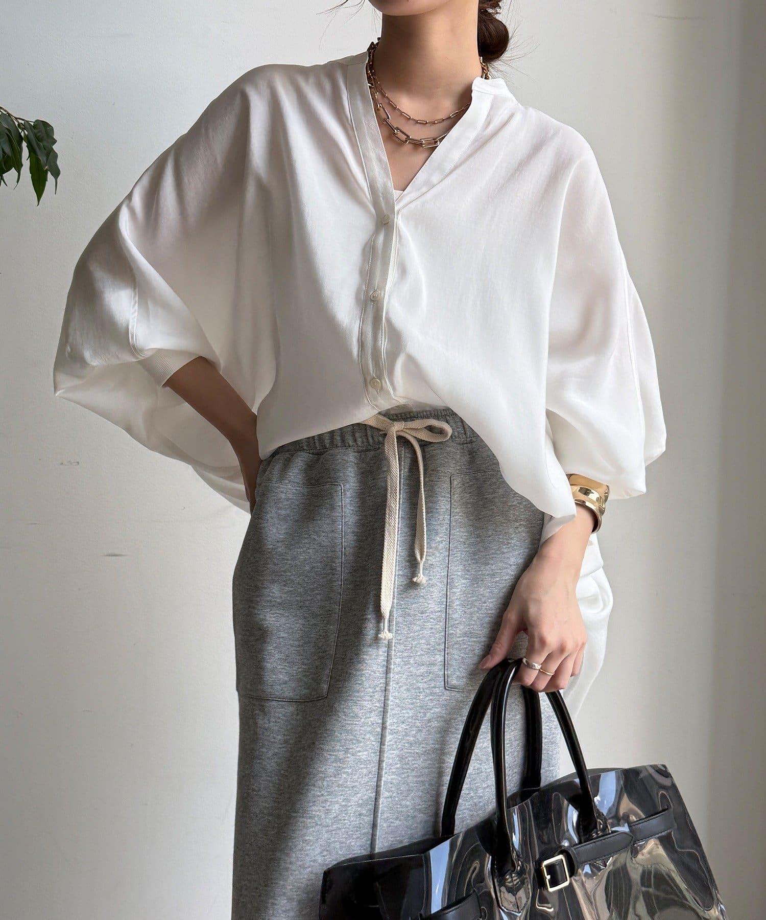 因為領子是 V 領,所以能穿出成熟女性的清爽感。