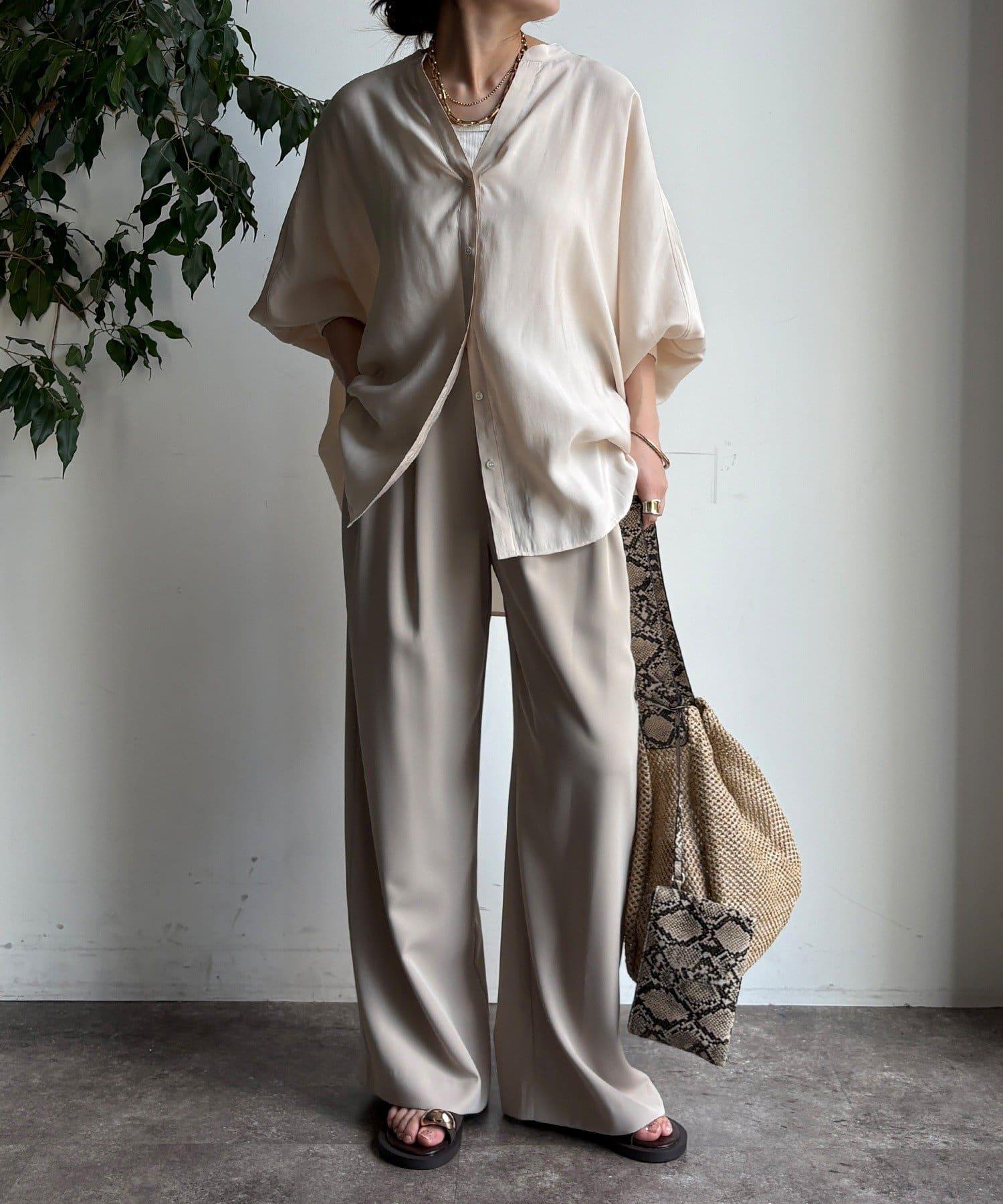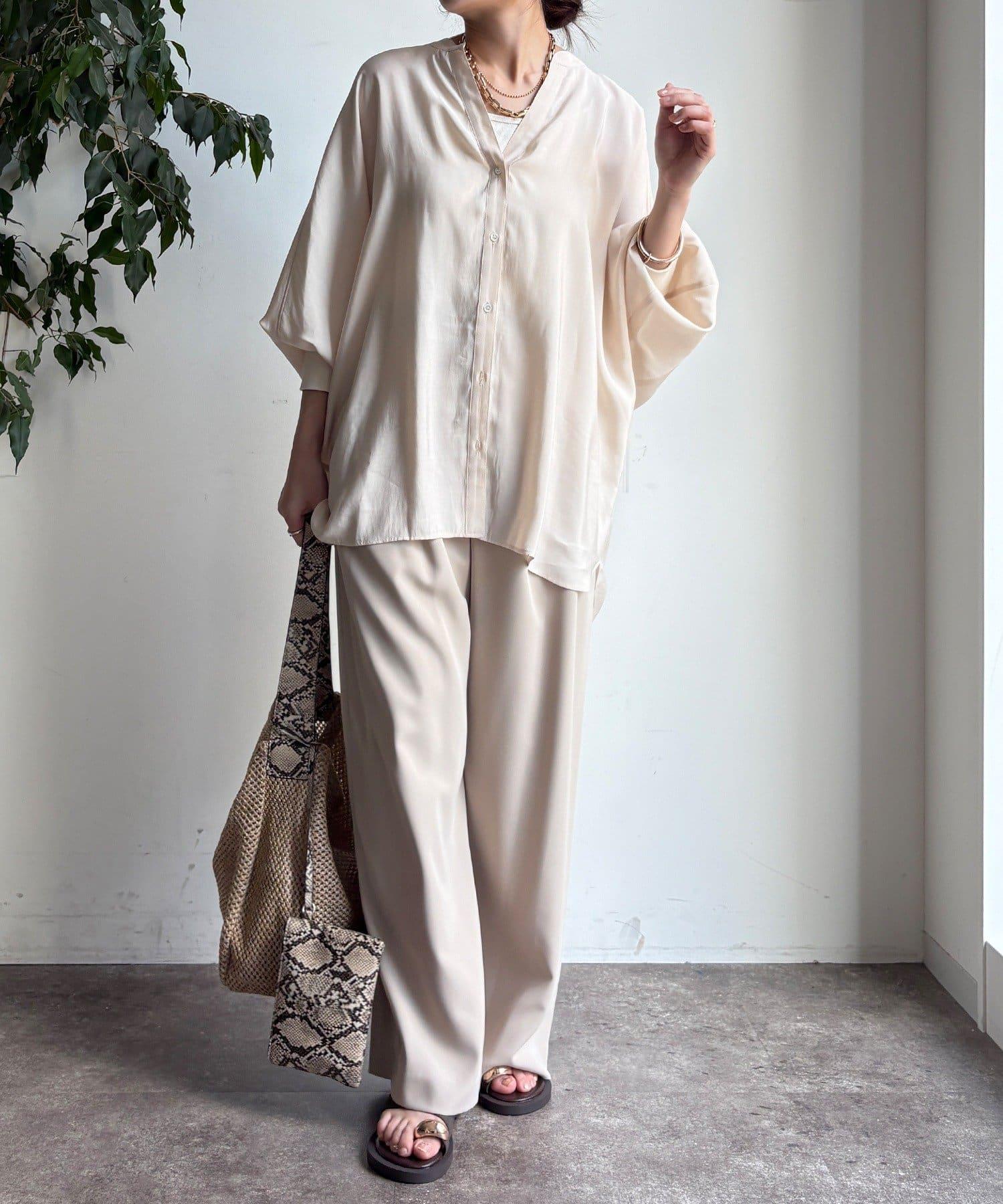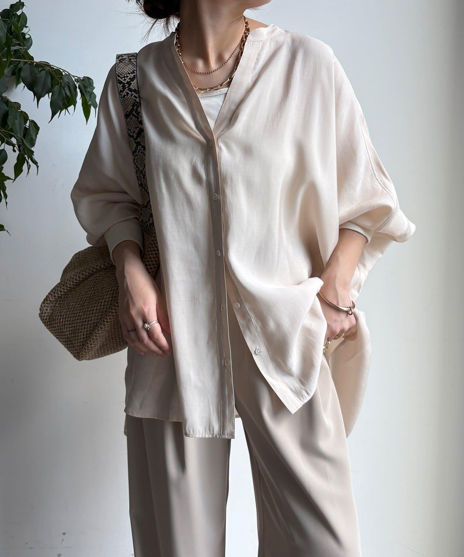 因為領子是 V 領,所以能穿出成熟女性的清爽感。