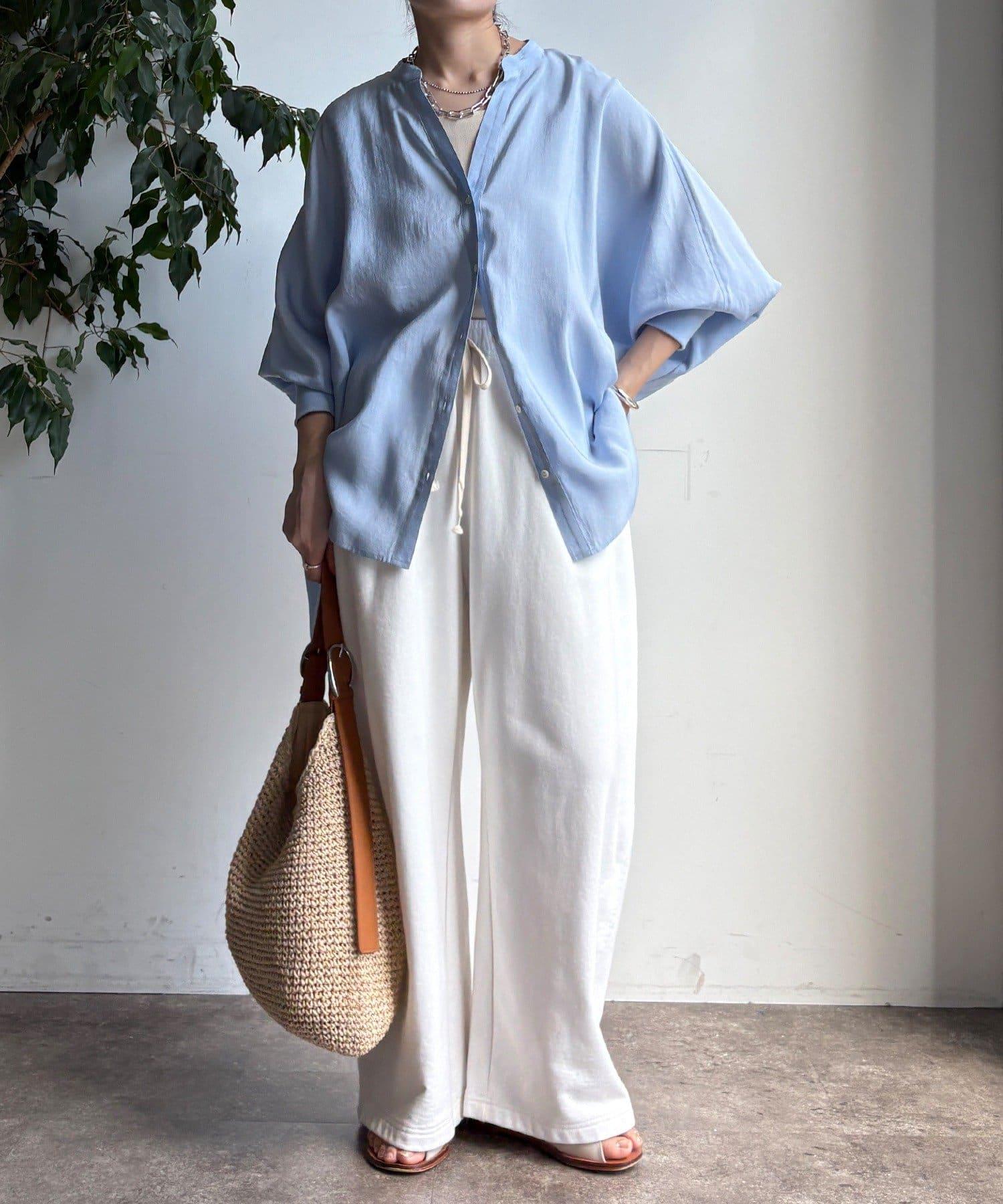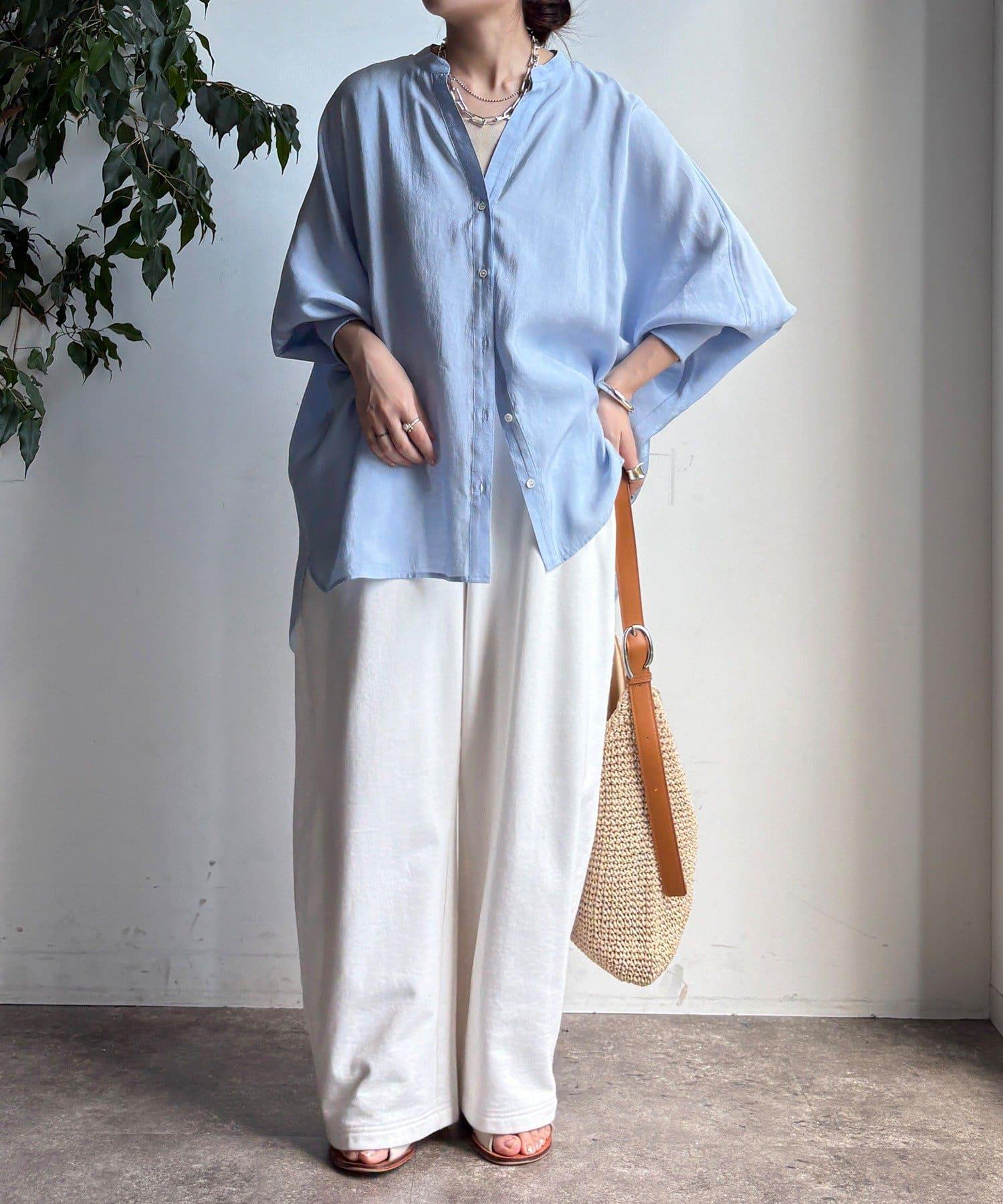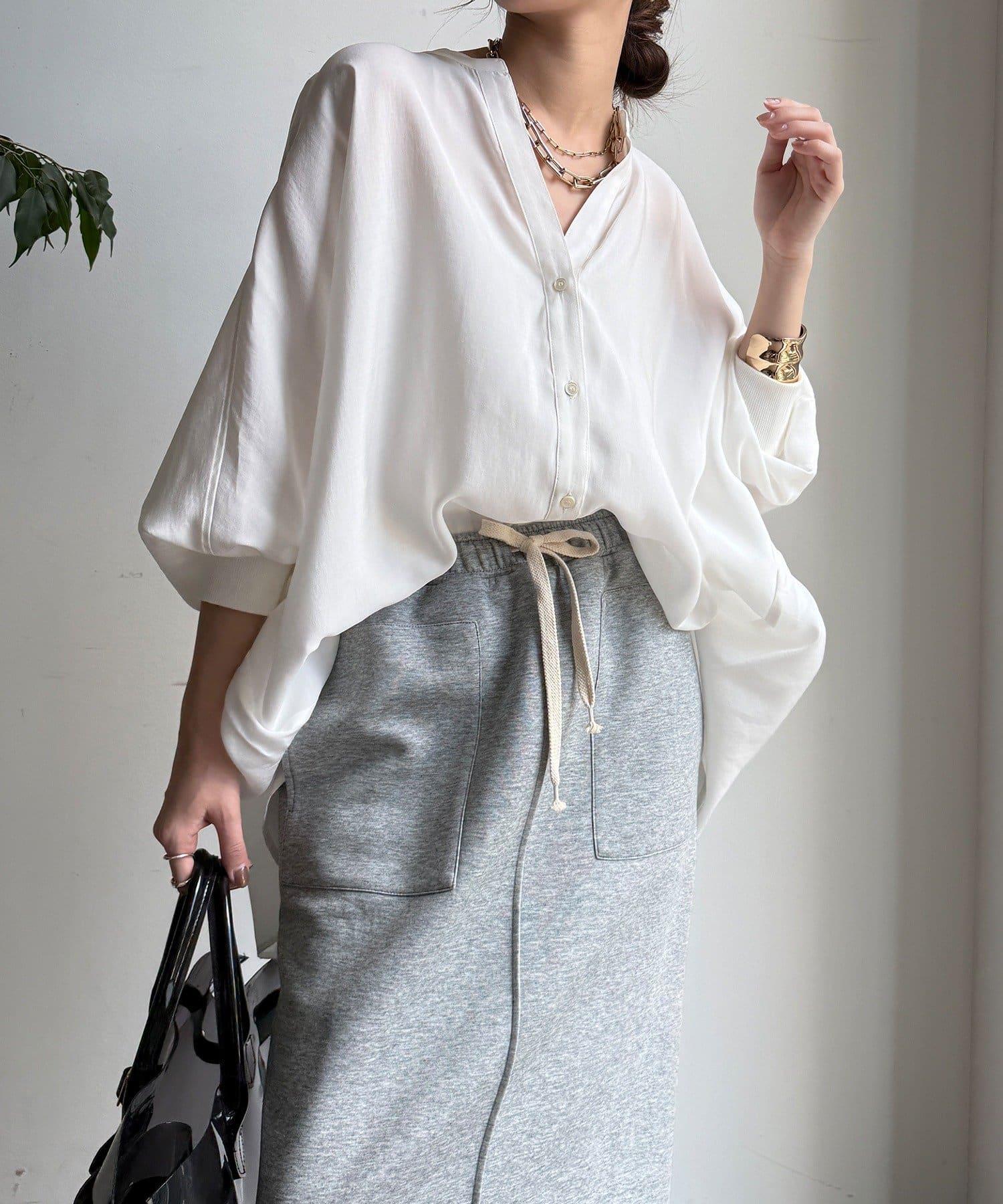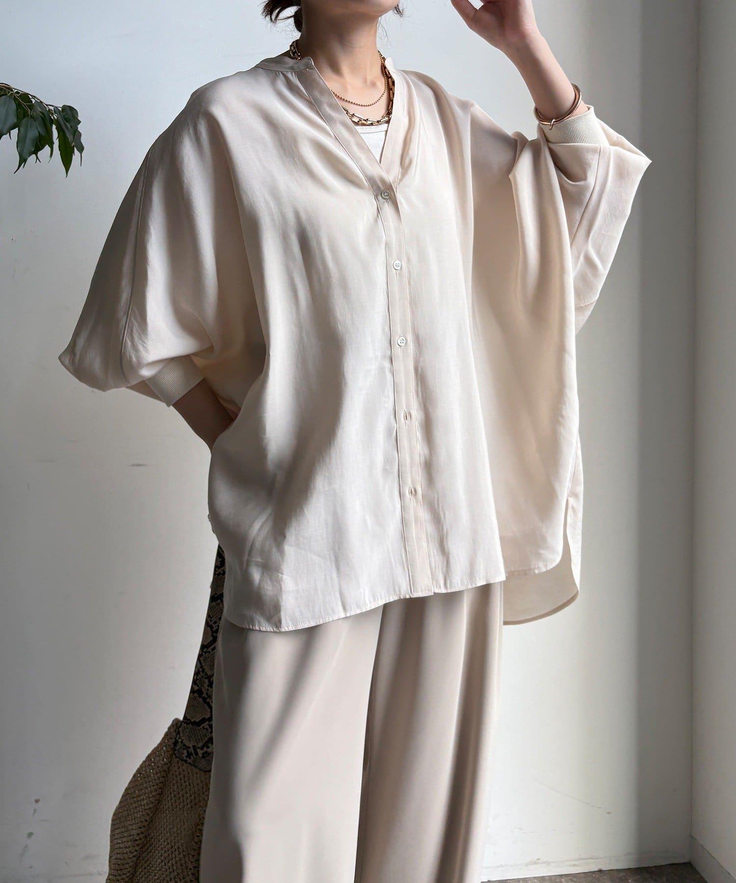 因為領子是 V 領,所以能穿出成熟女性的清爽感。