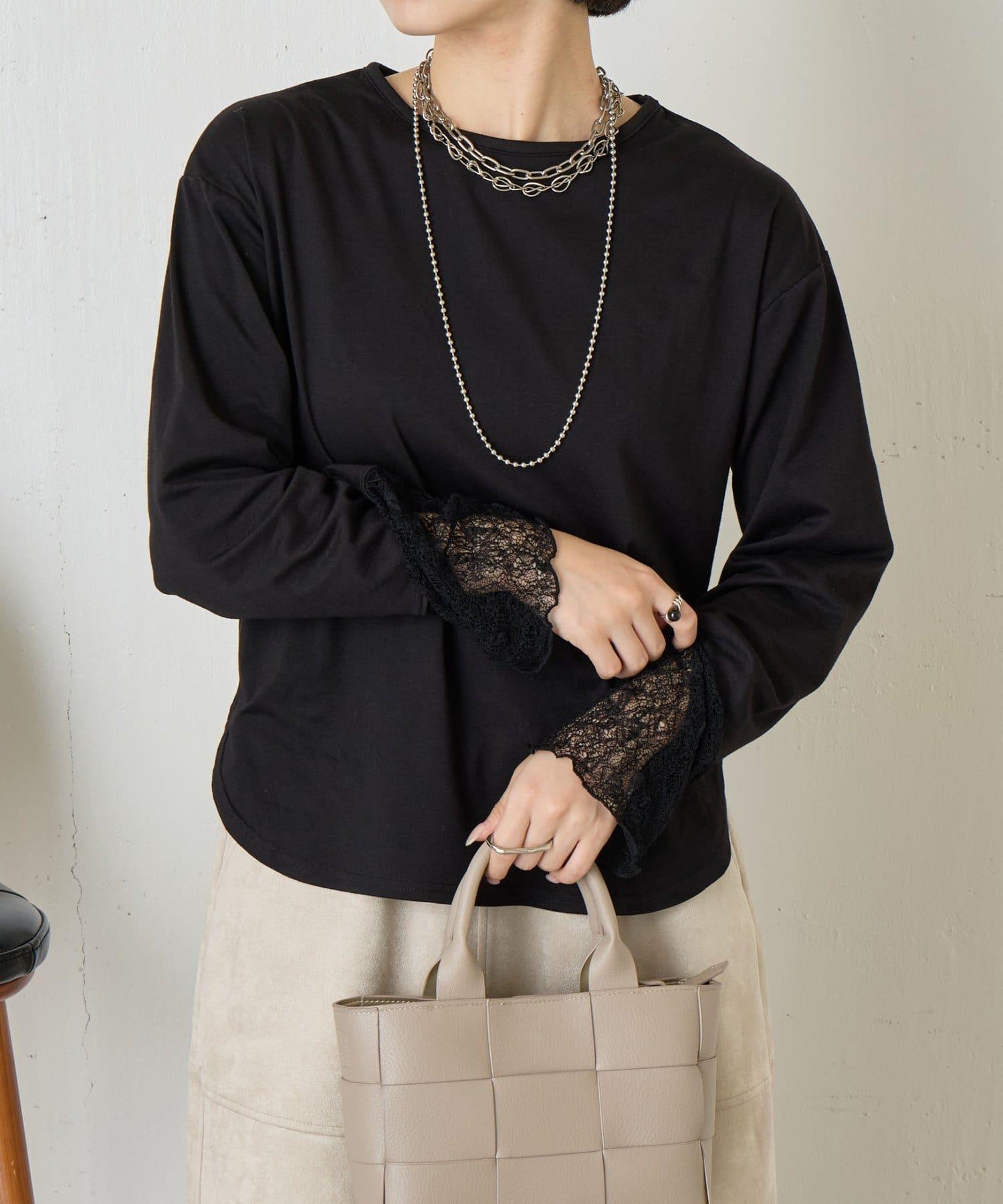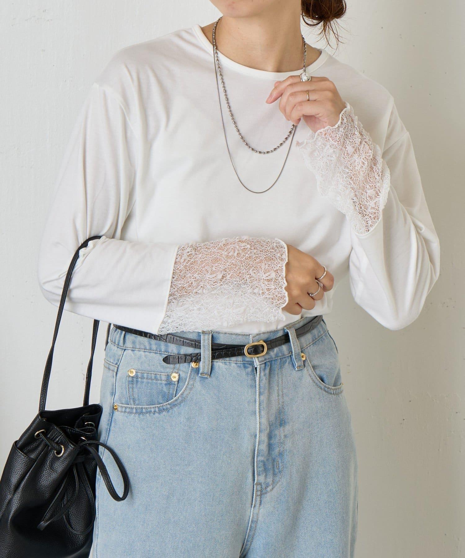這是一款剪裁和縫製簡單的服裝,袖口處有精美的蕾絲設計。