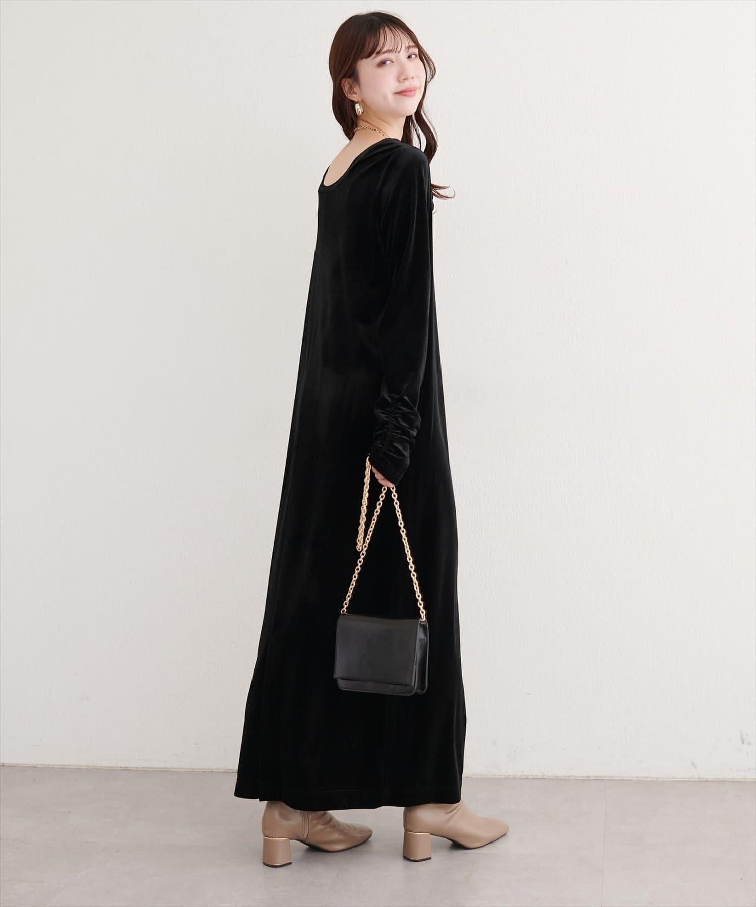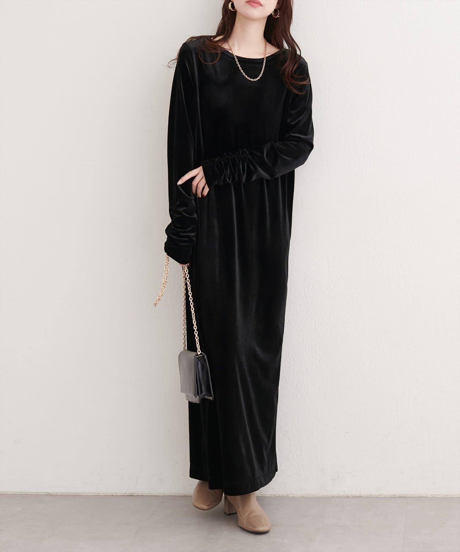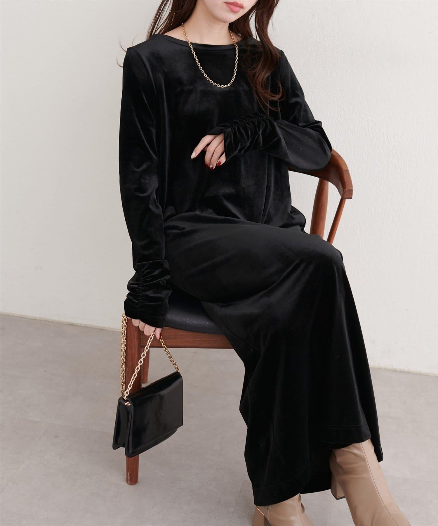 袖口褶皺天鵝絨連衣裙