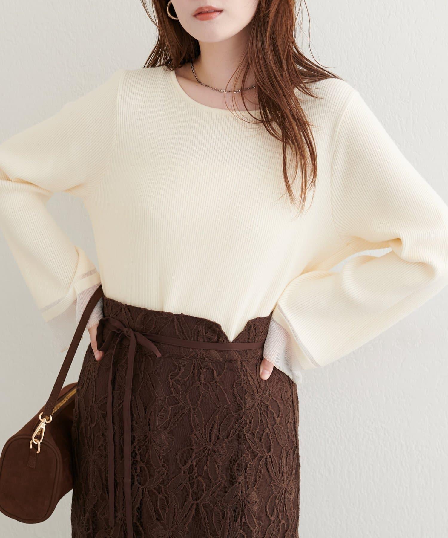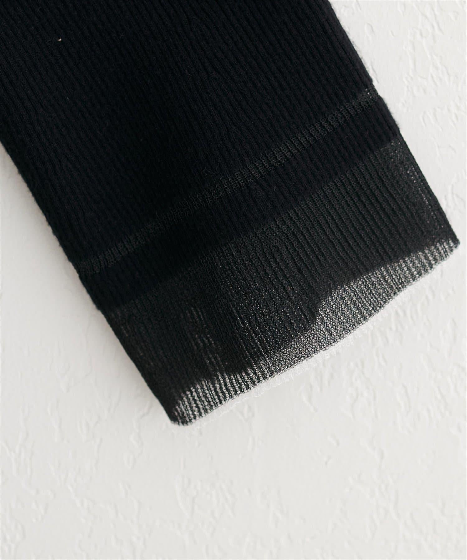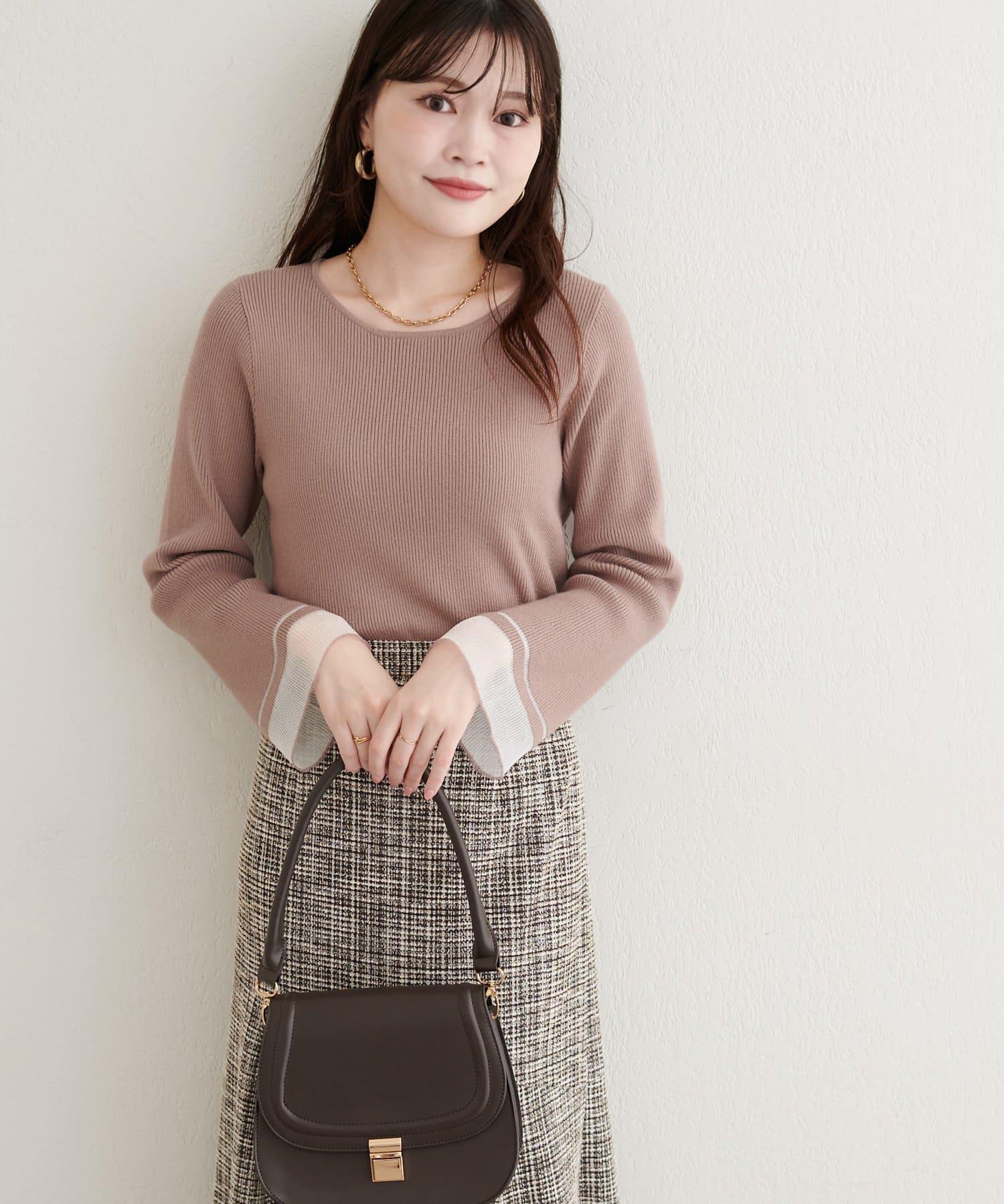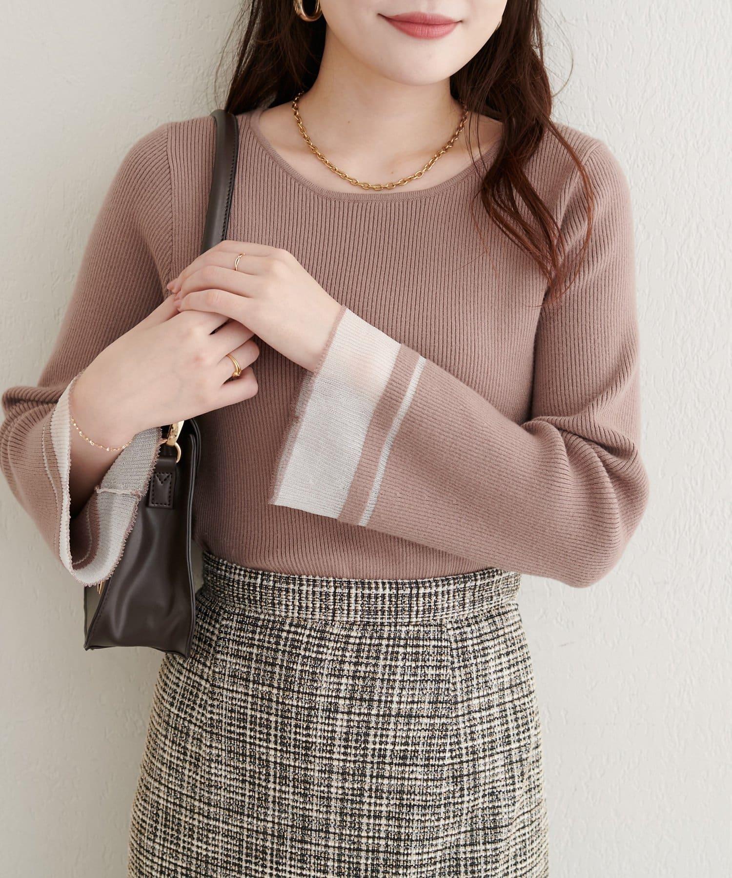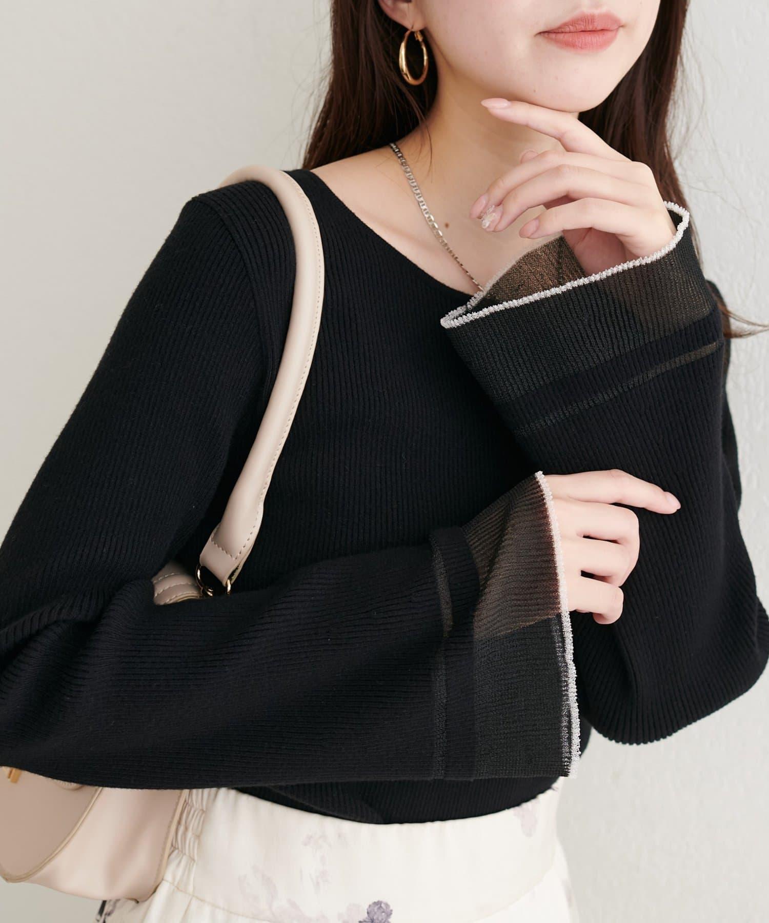 這款針織上衣袖口的透視喇叭設計給人一種含蓄而華麗的印象。