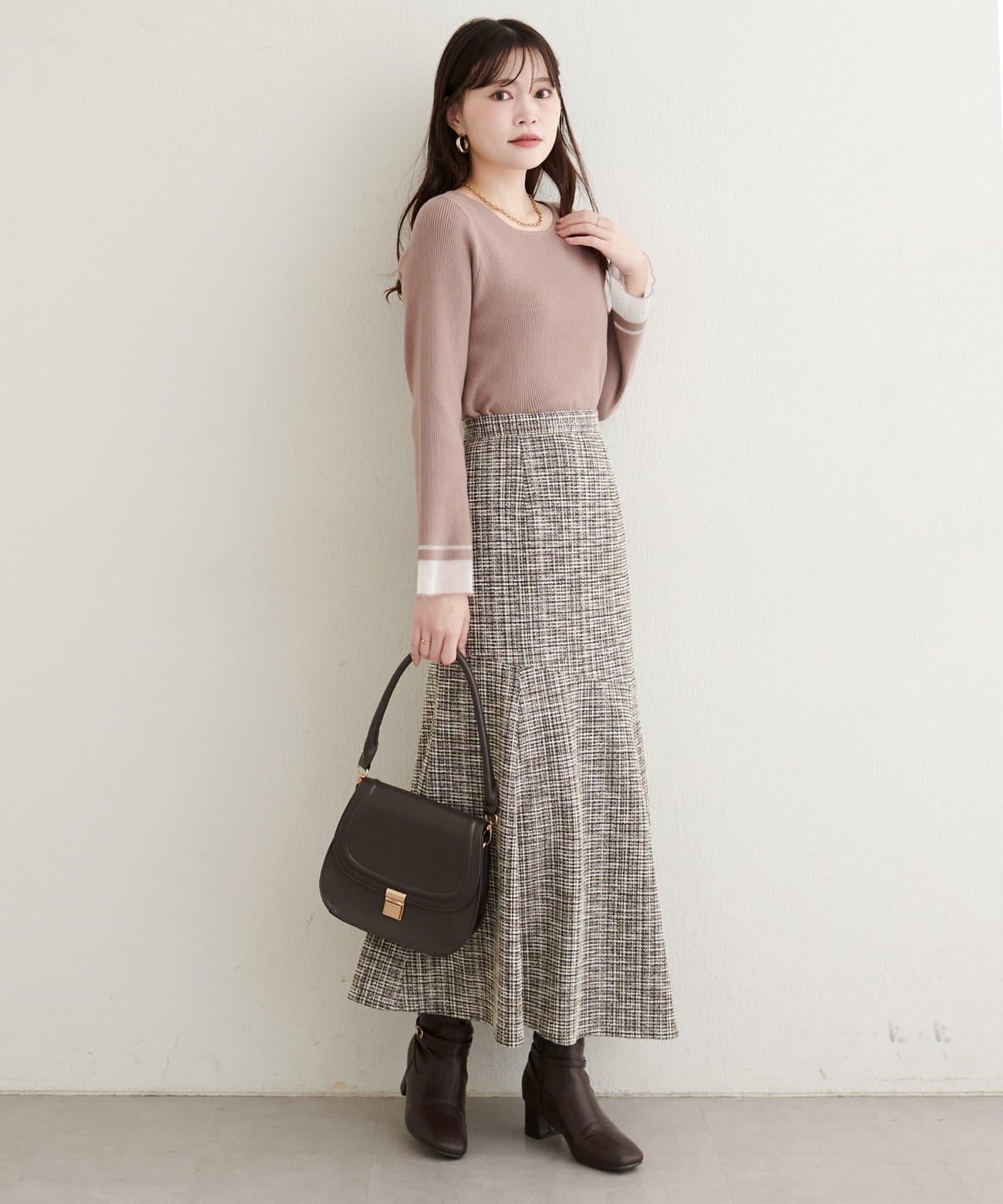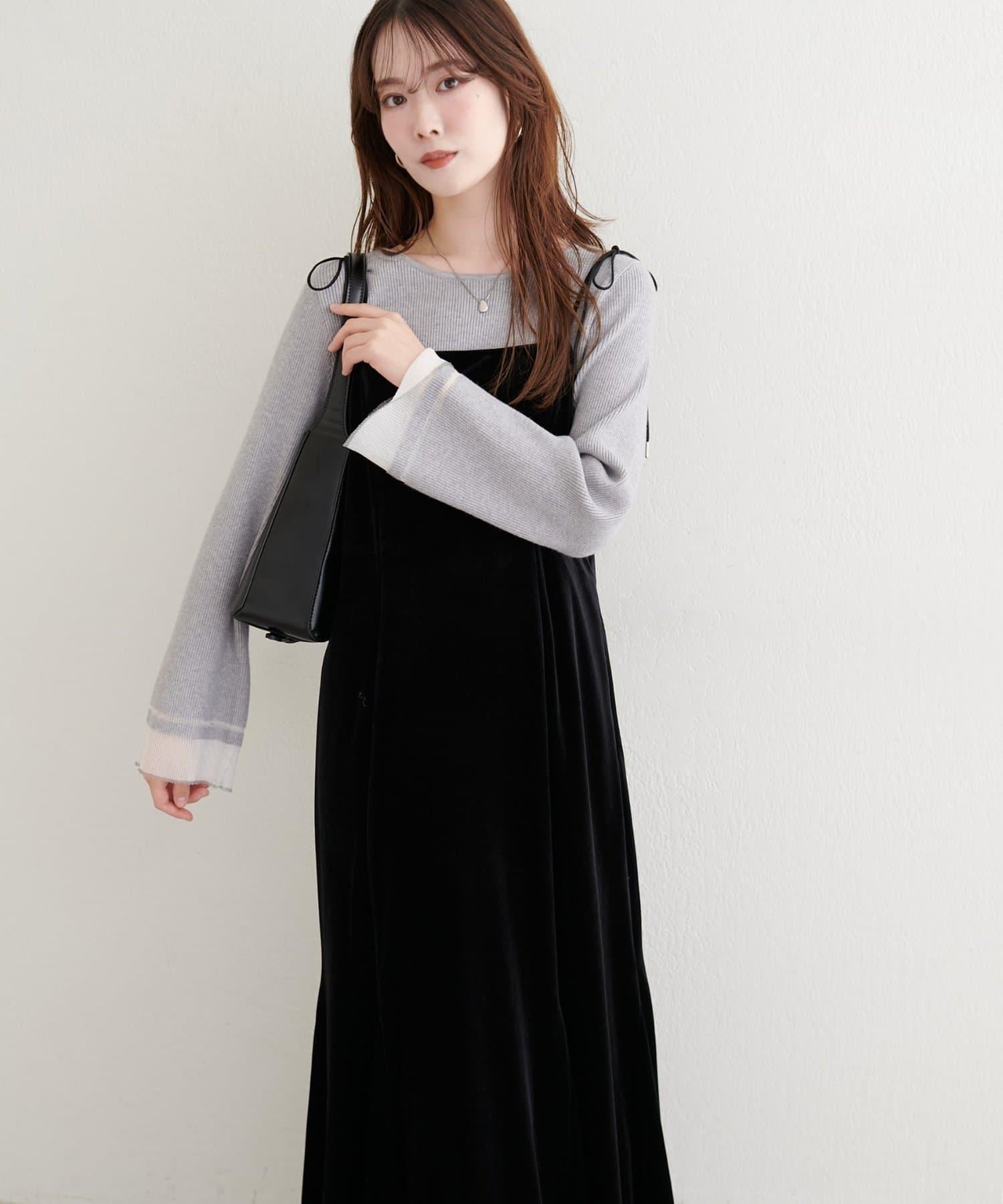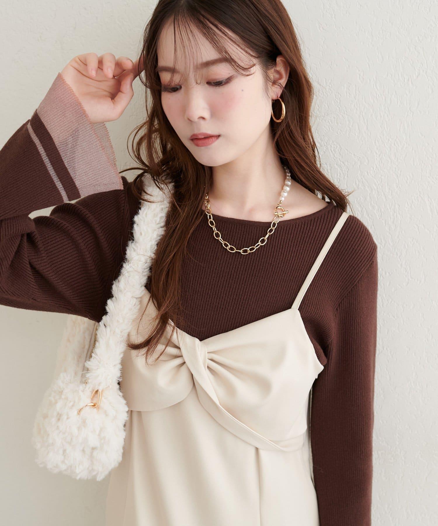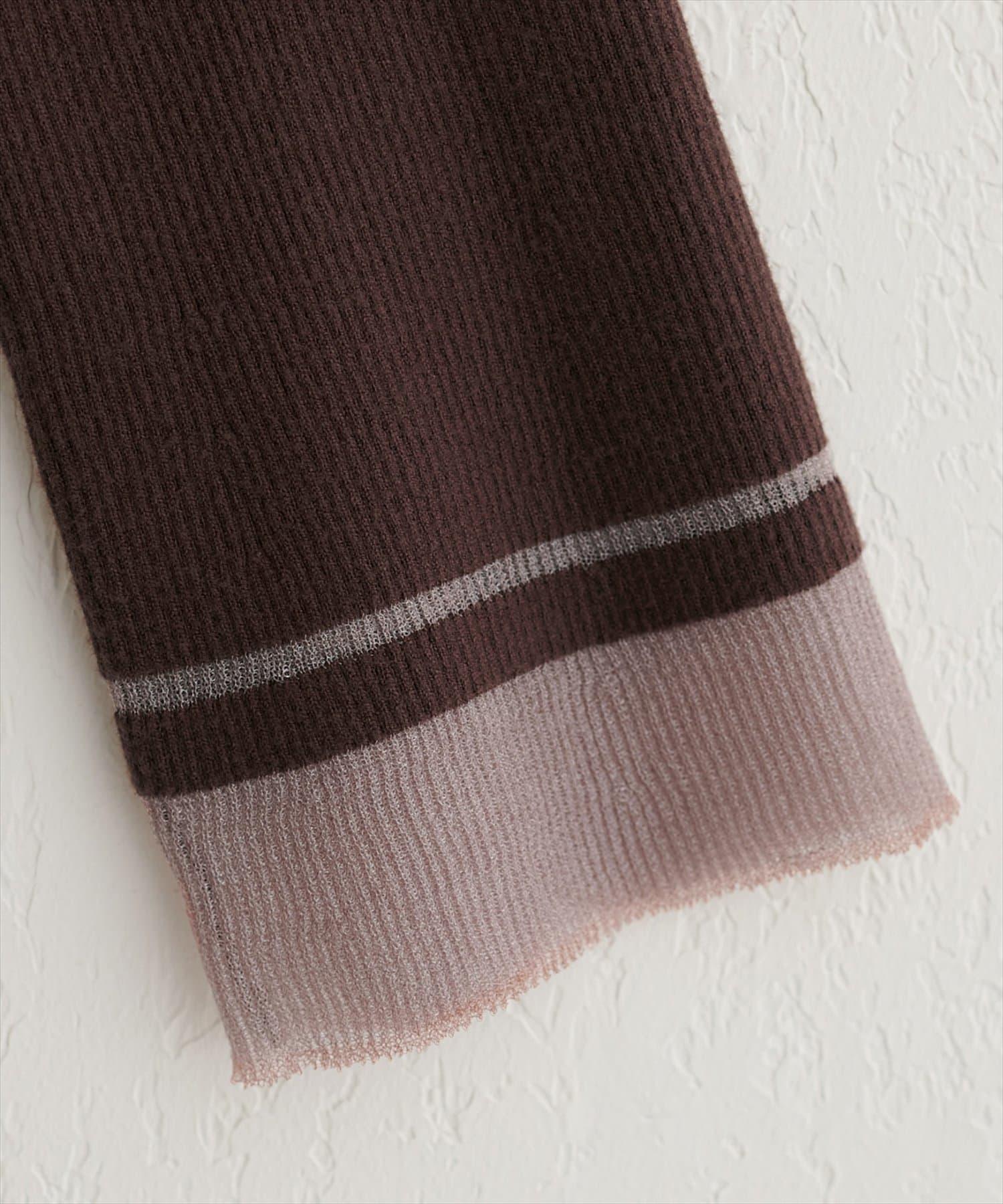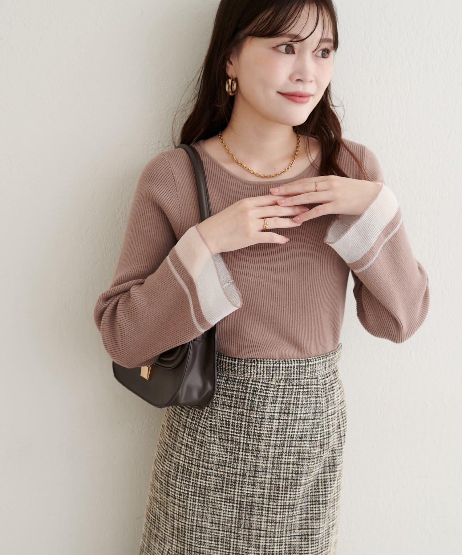 這款針織上衣袖口的透視喇叭設計給人一種含蓄而華麗的印象。