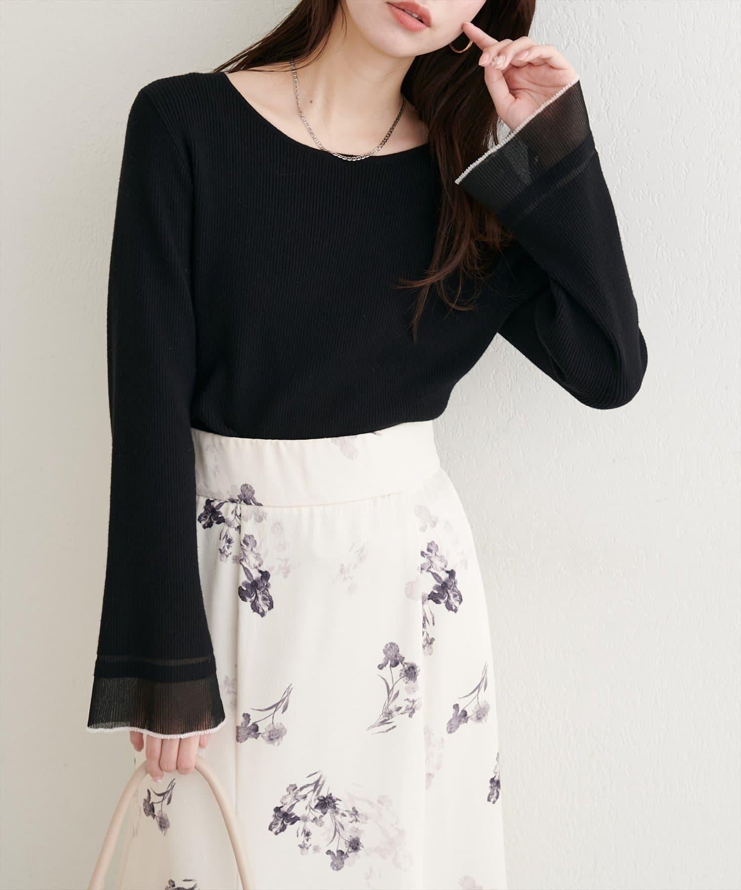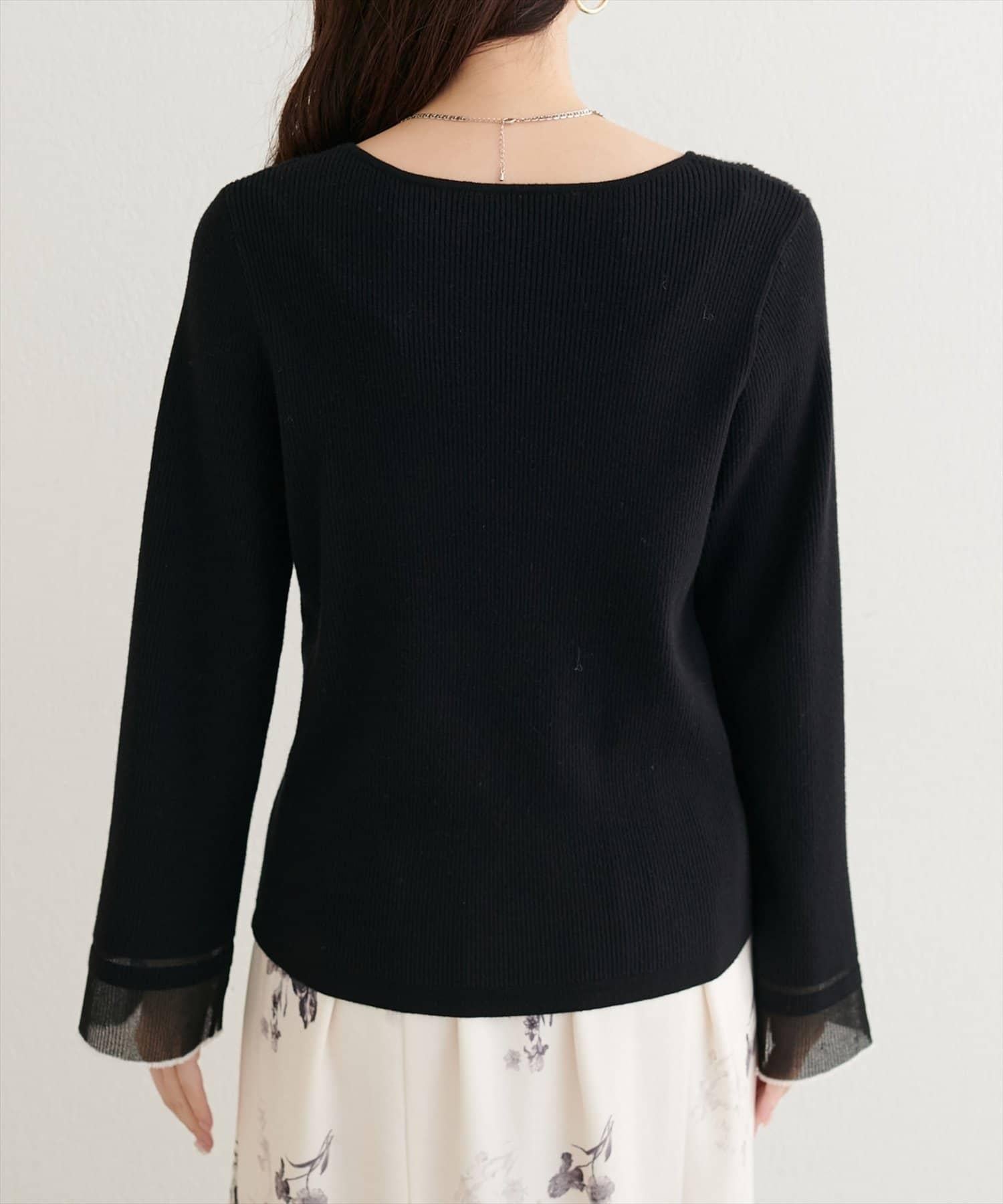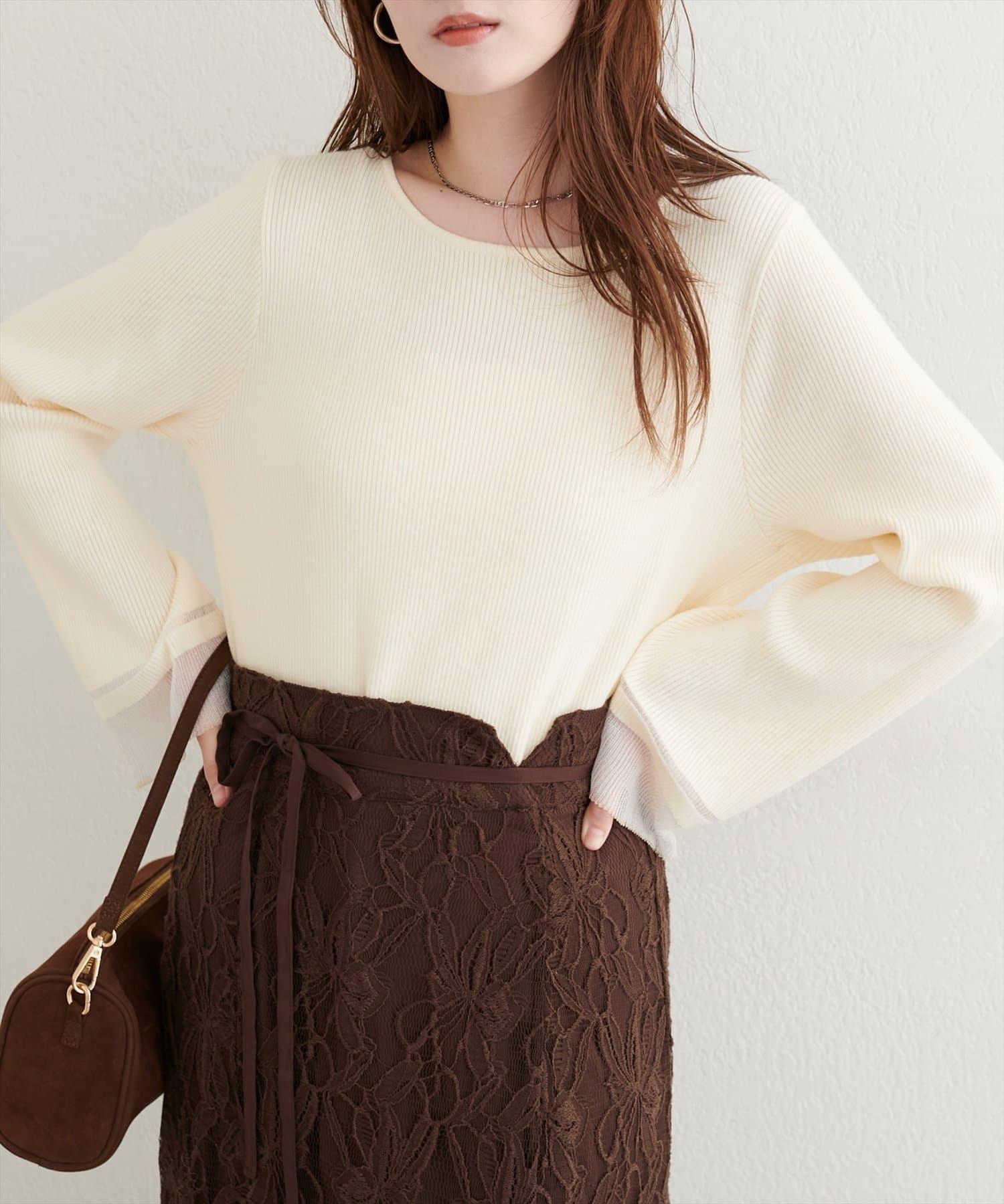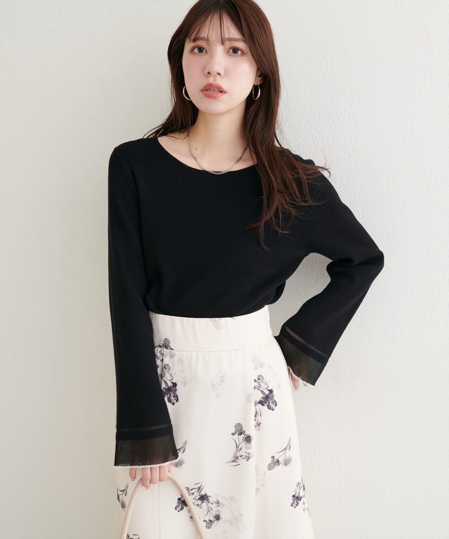 這款針織上衣袖口的透視喇叭設計給人一種含蓄而華麗的印象。