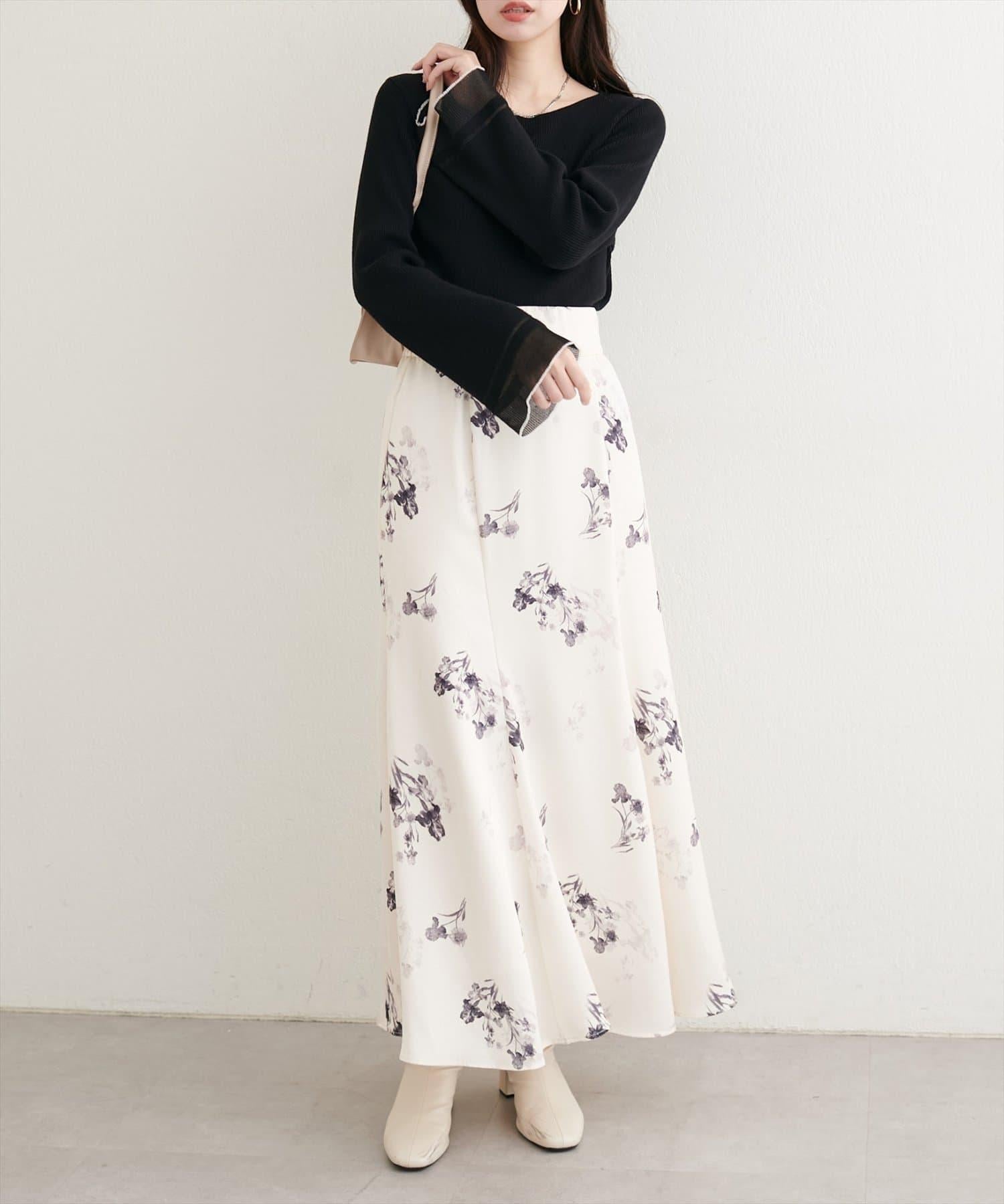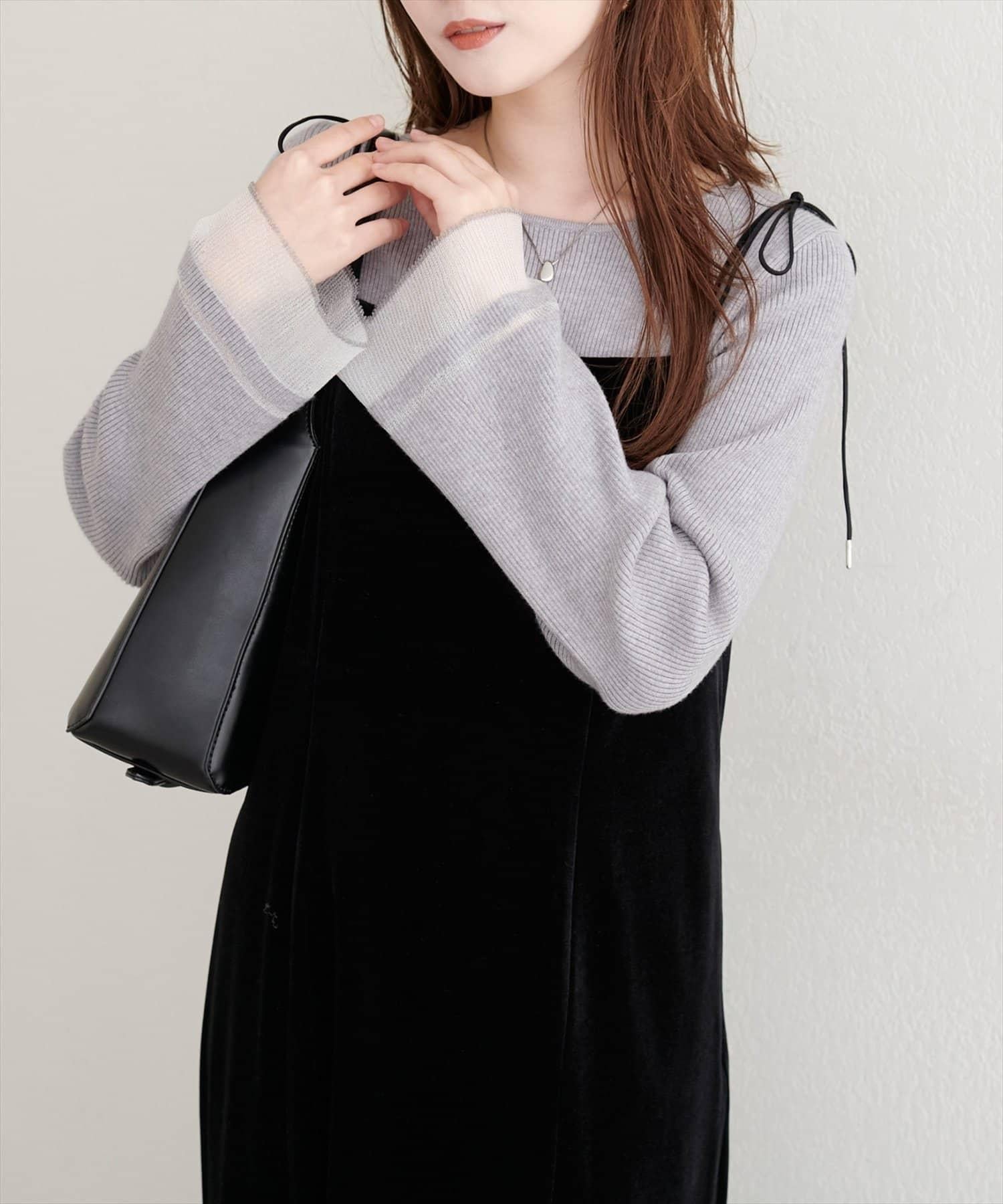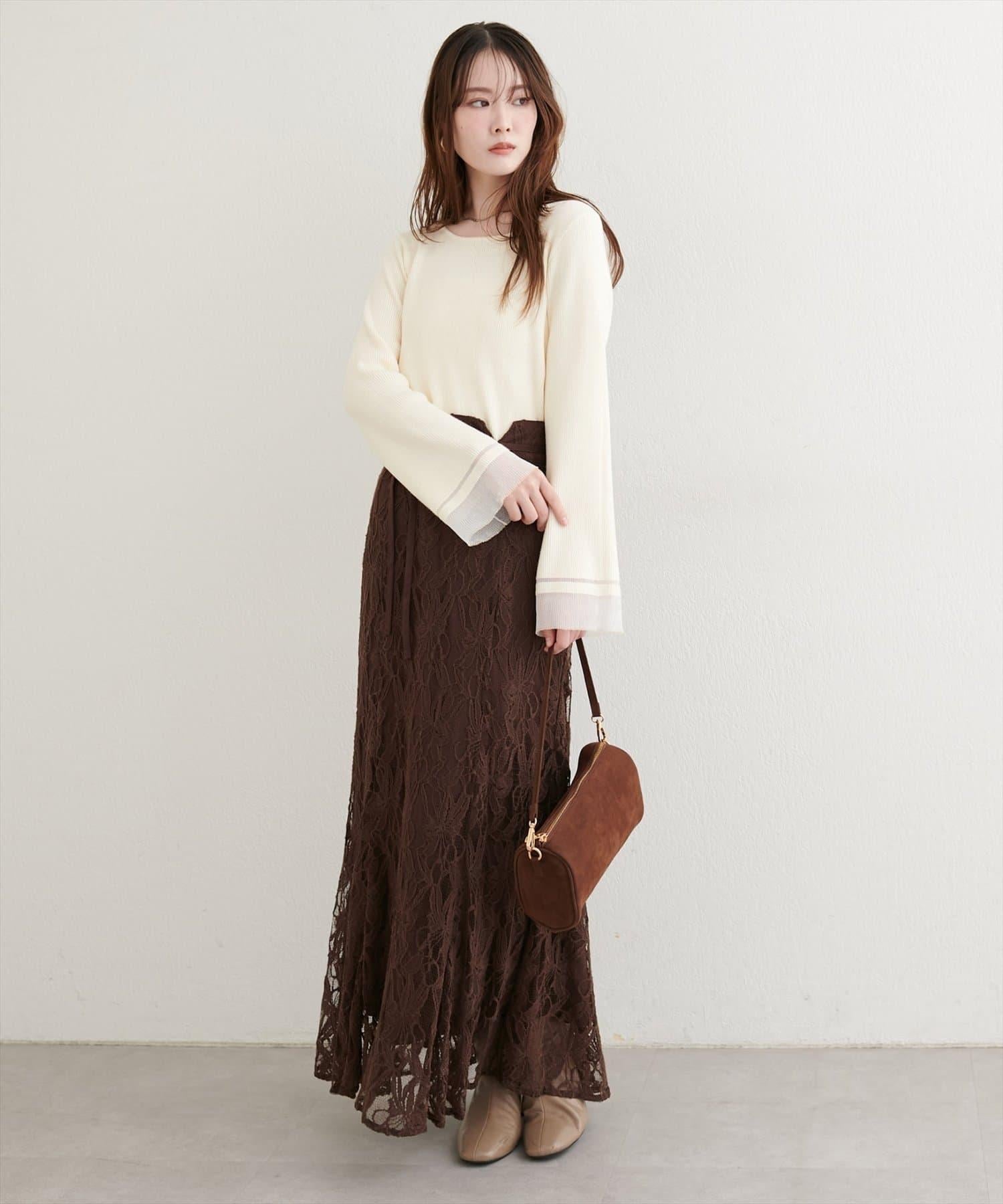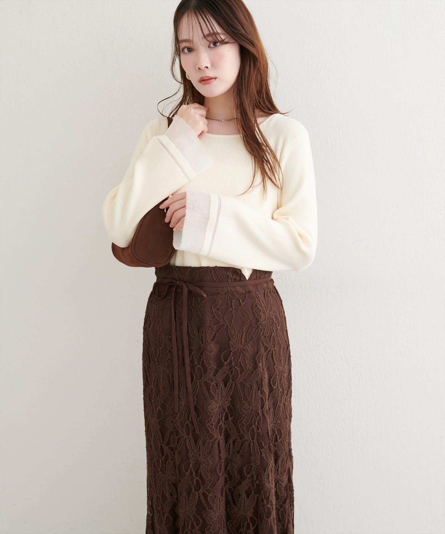 這款針織上衣袖口的透視喇叭設計給人一種含蓄而華麗的印象。