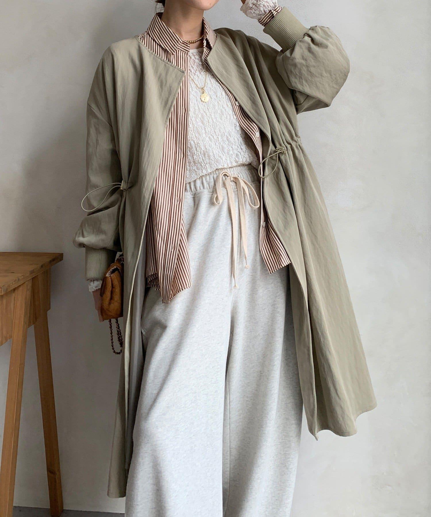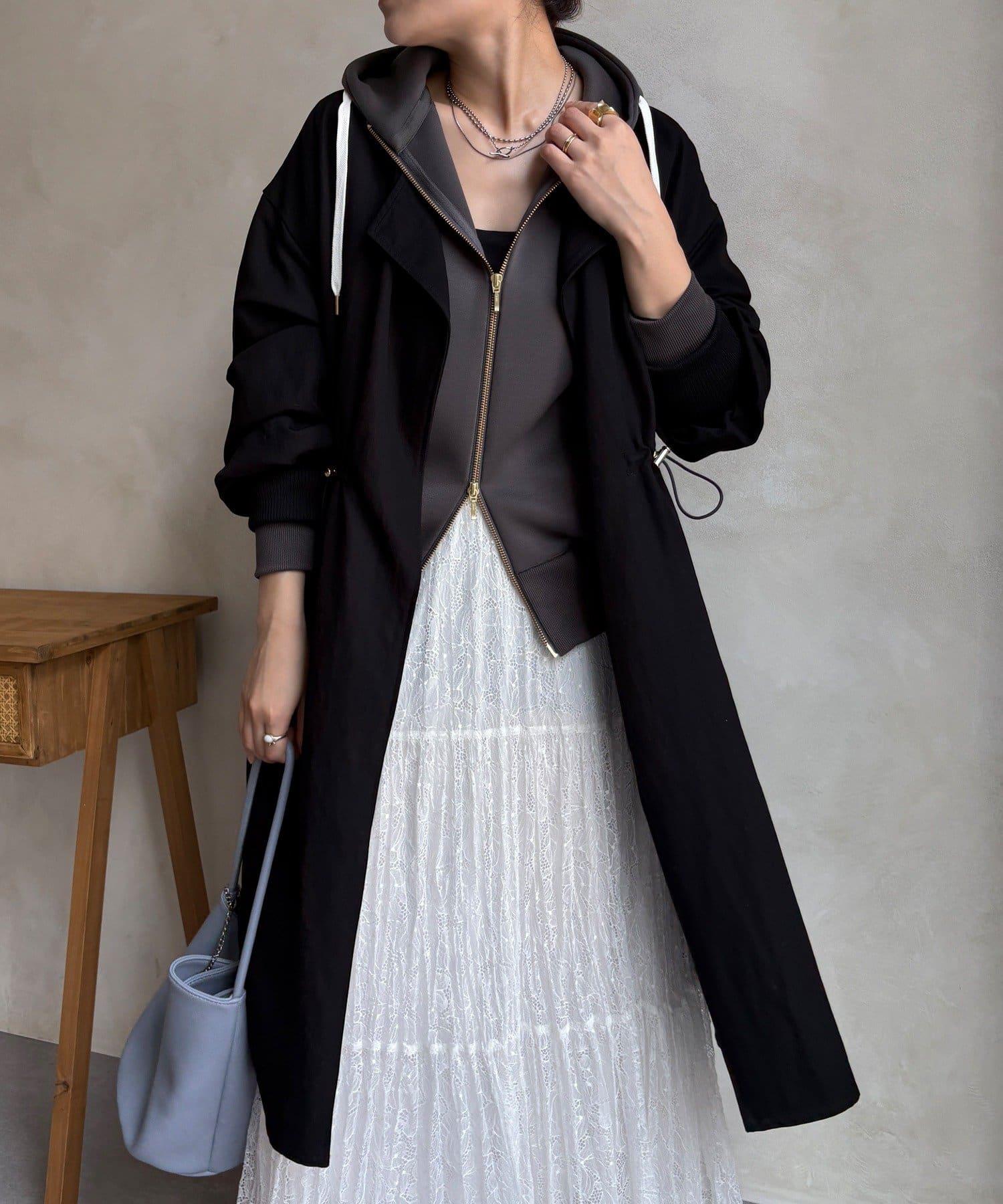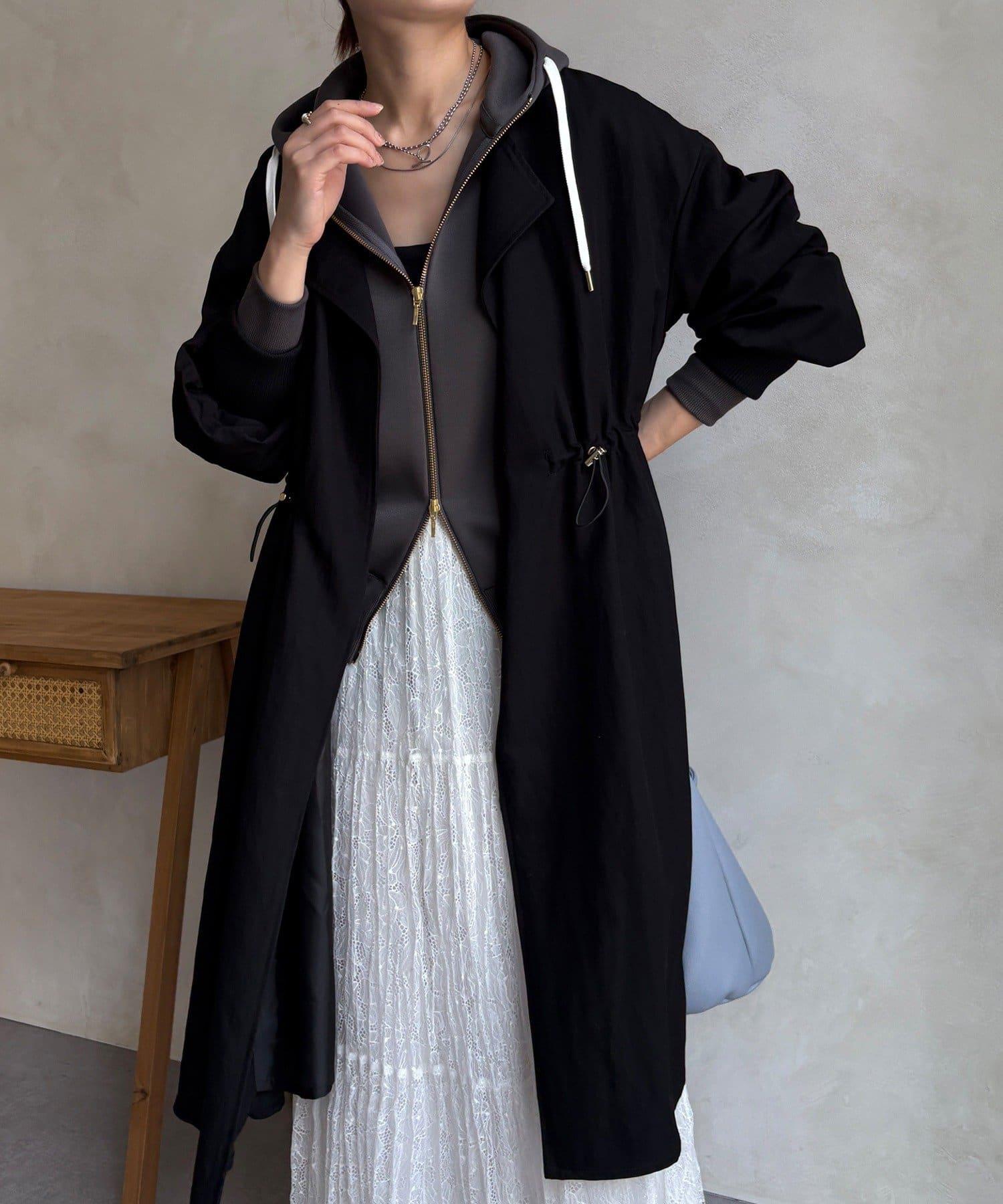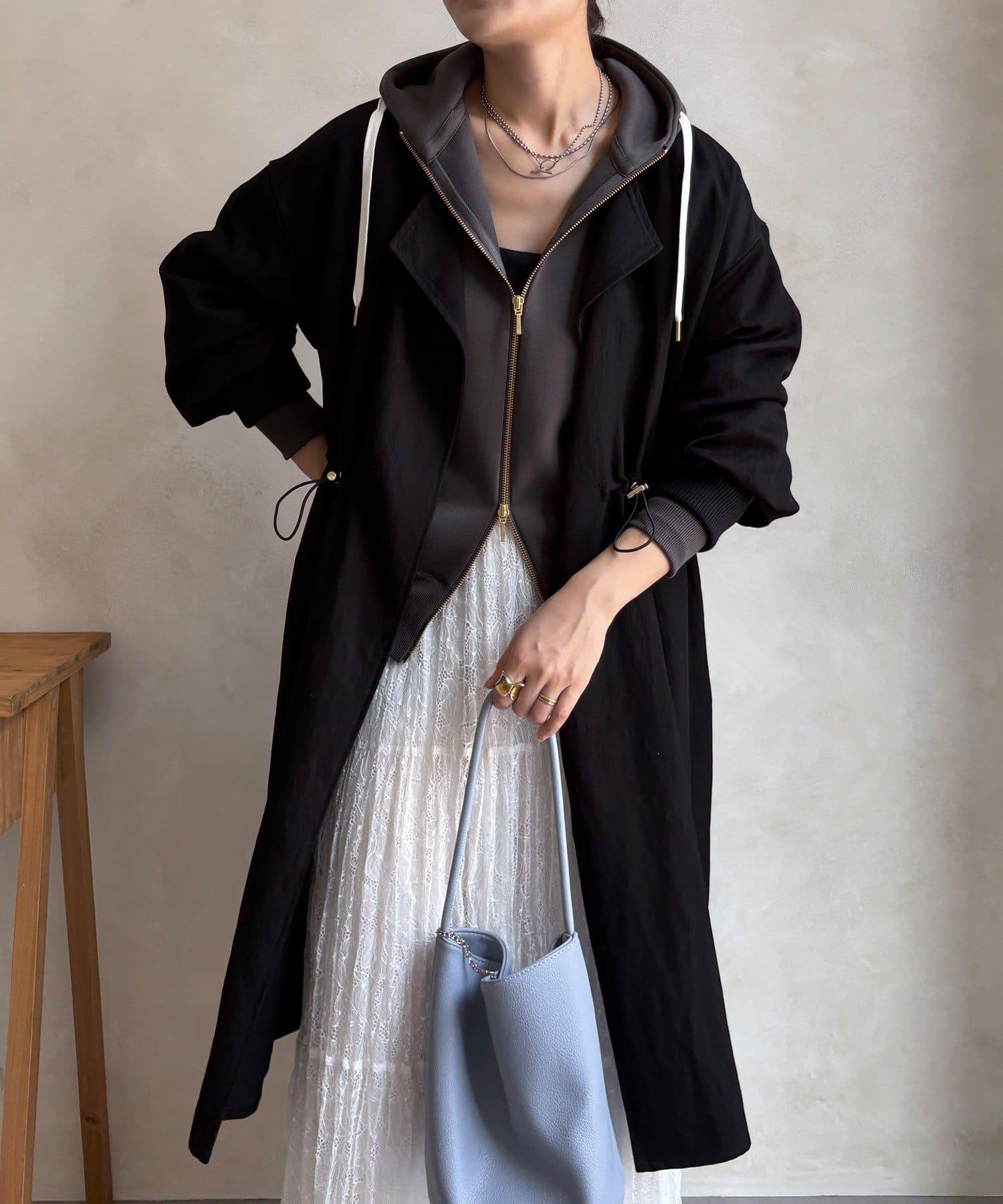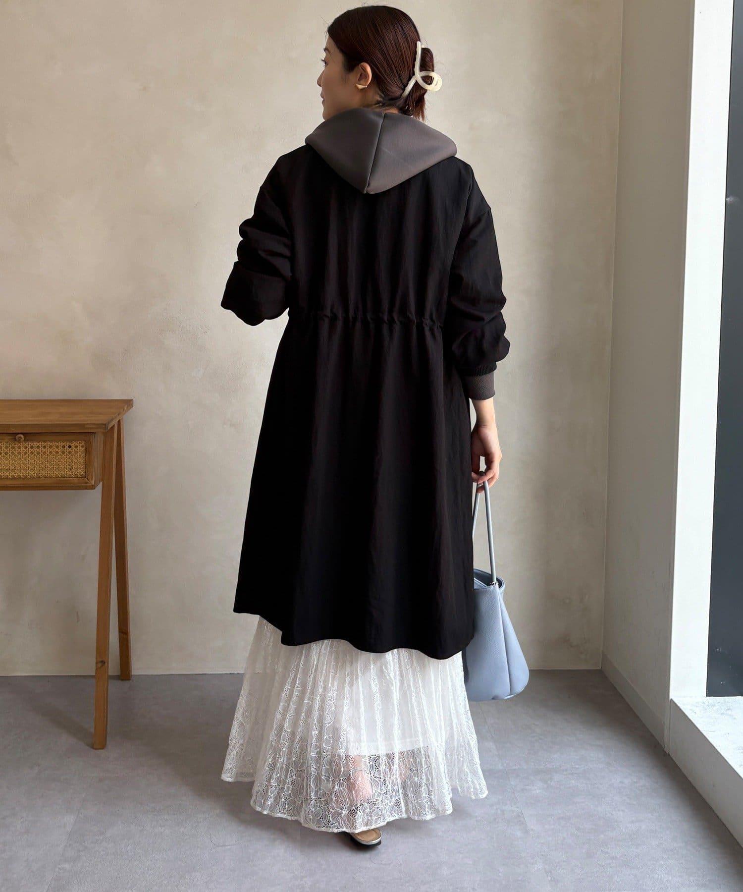 你可以通過擠壓腰部的抽繩來改變廓形,所以你也可以期待擠壓抽繩時的風格提升效果。