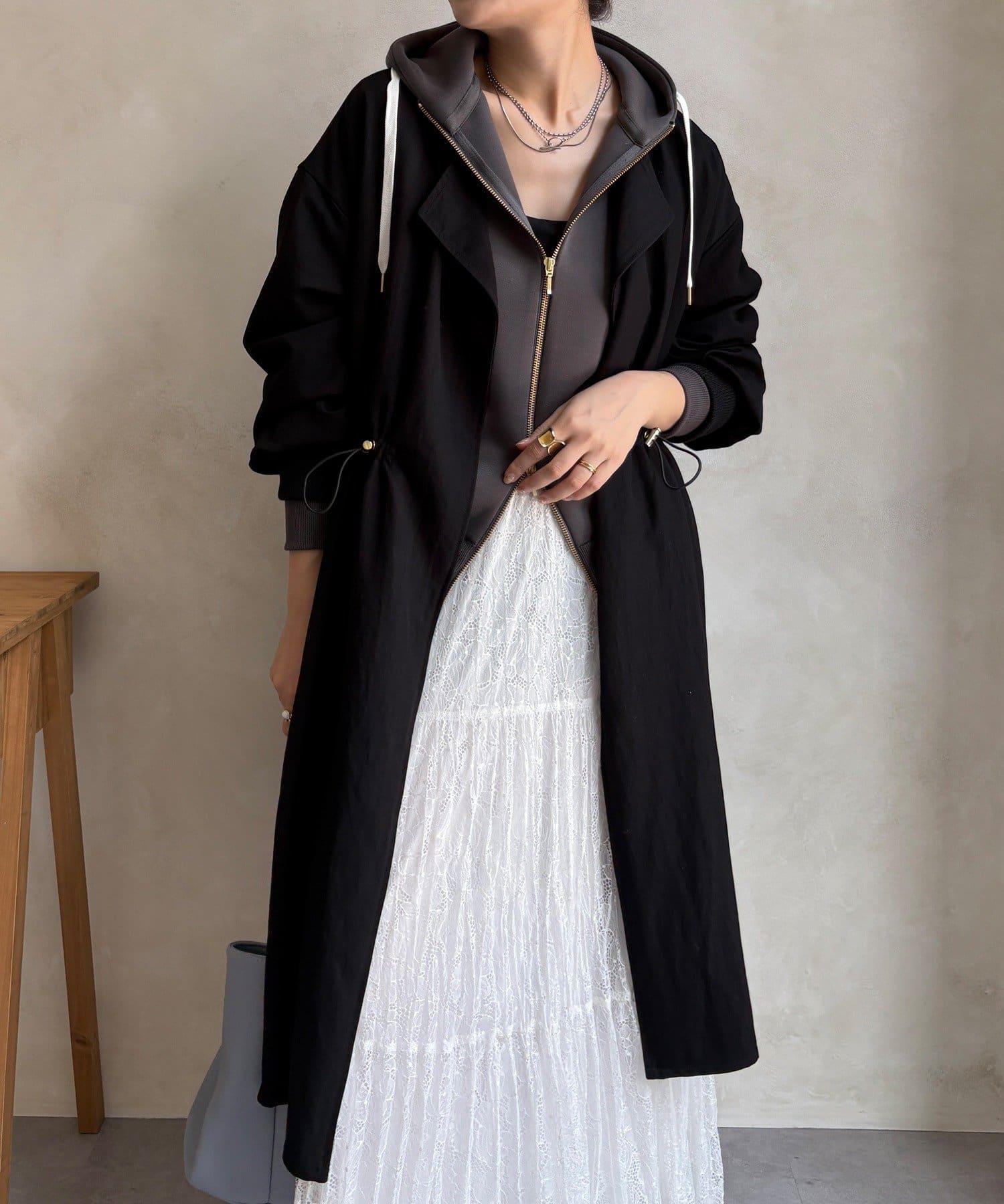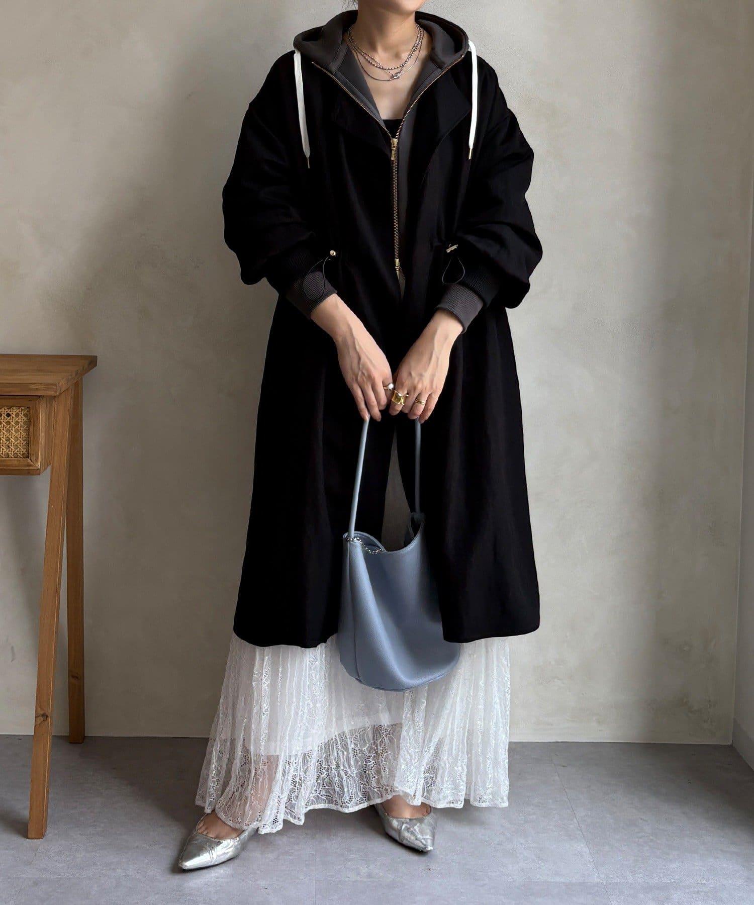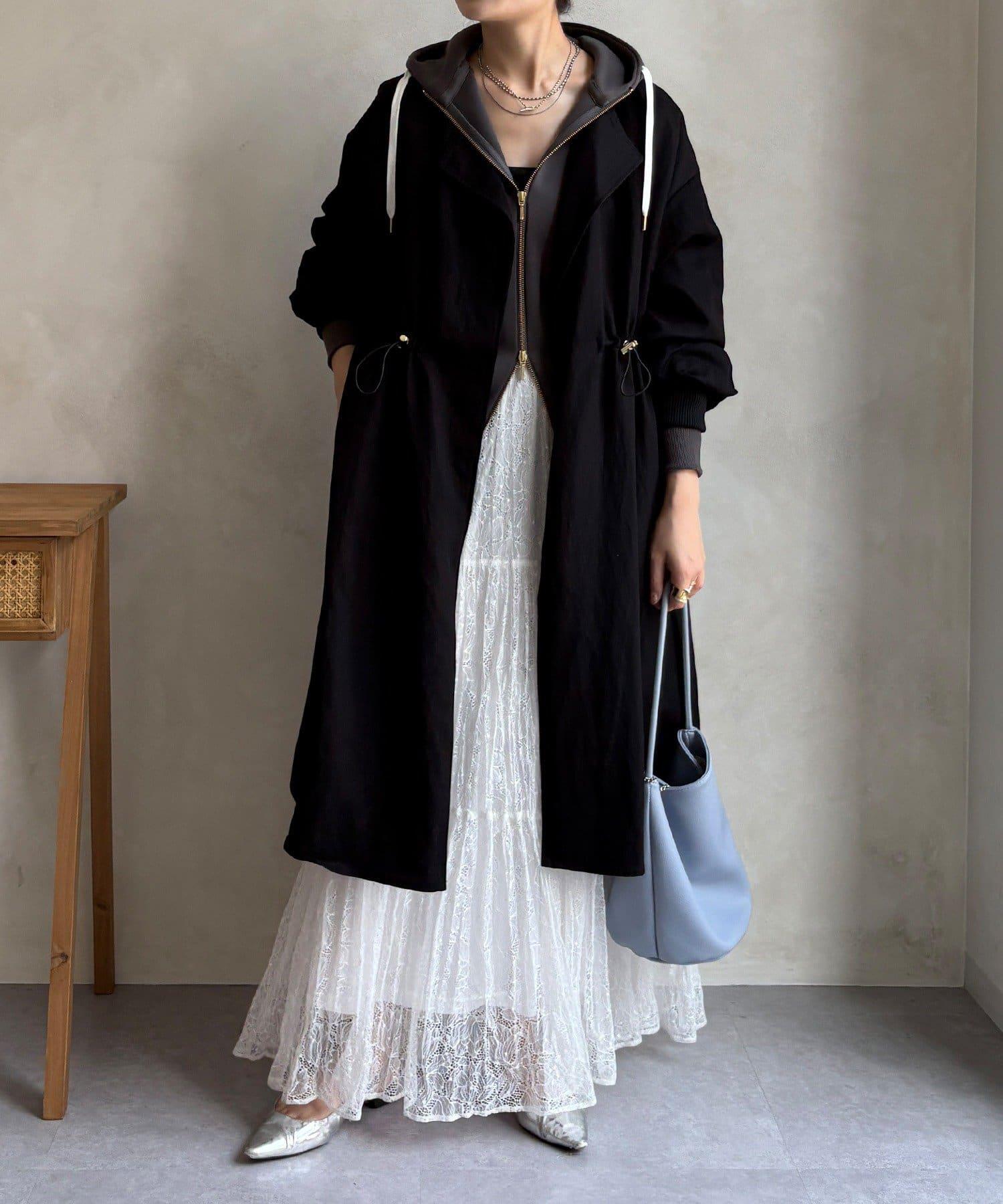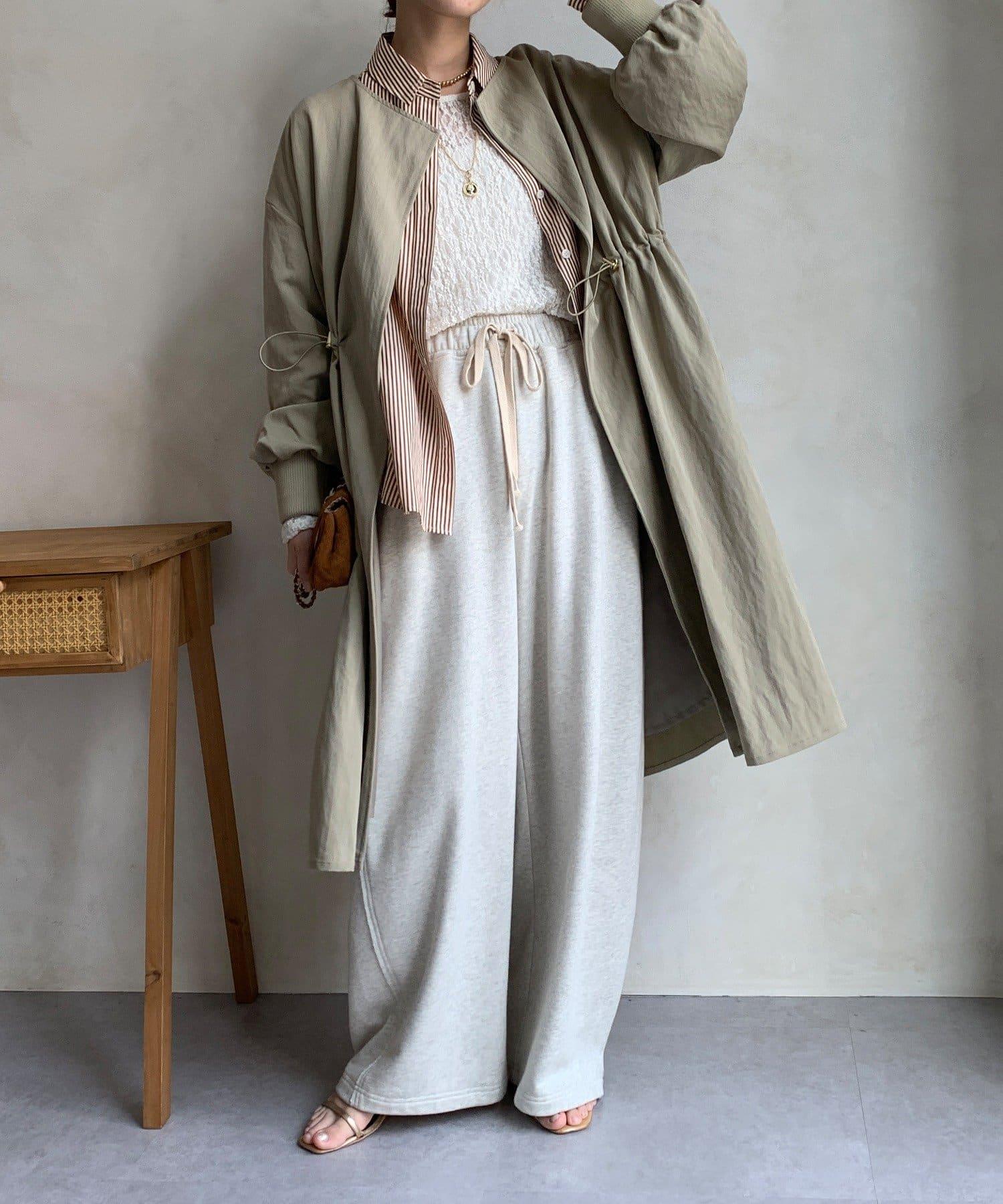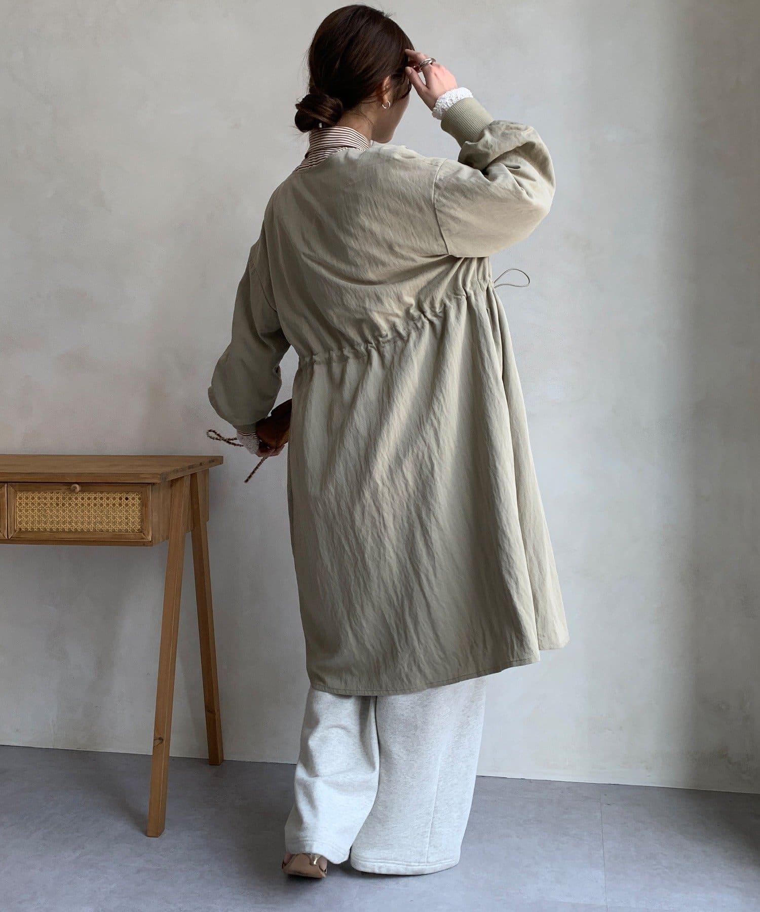 你可以通過擠壓腰部的抽繩來改變廓形,所以你也可以期待擠壓抽繩時的風格提升效果。