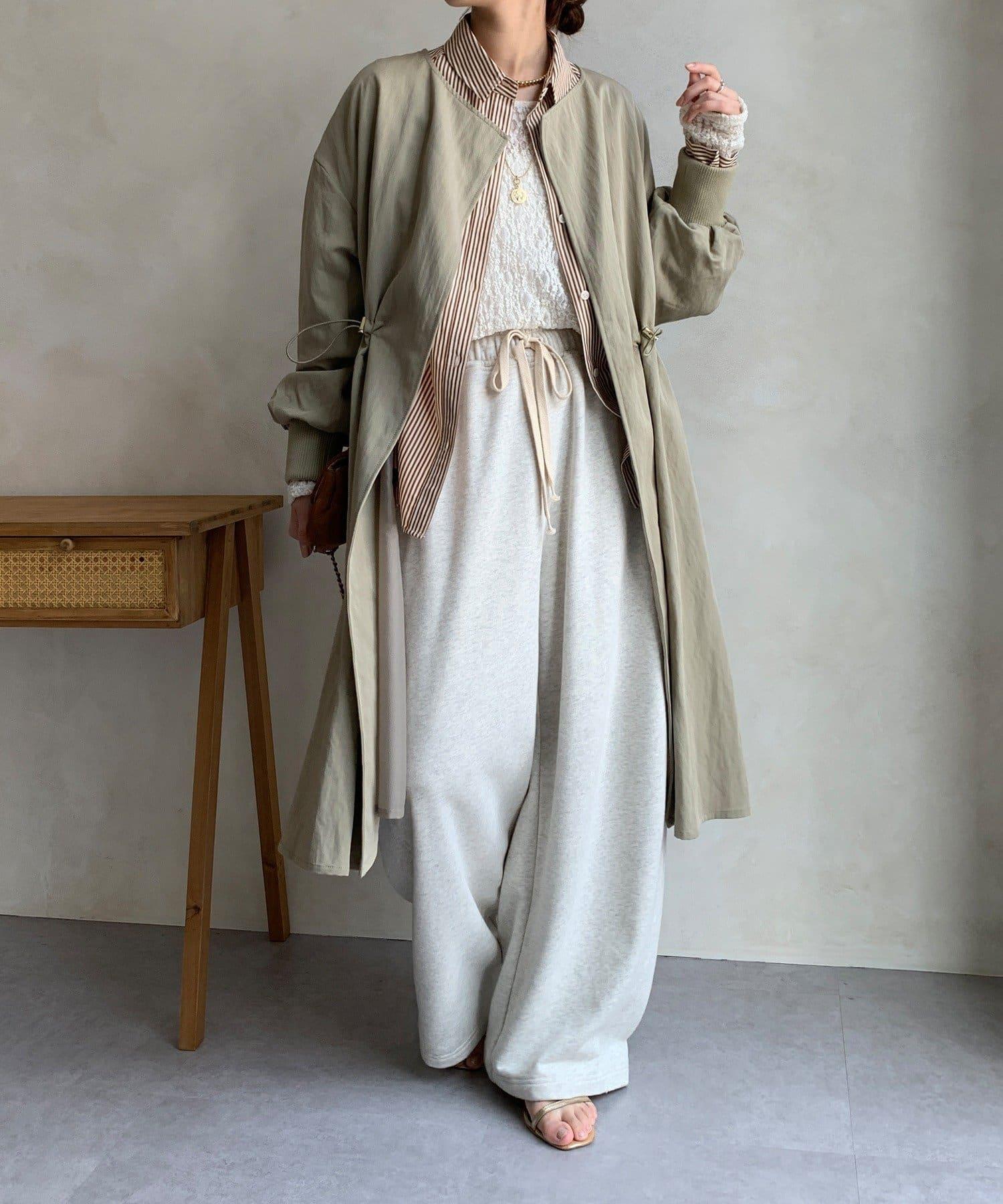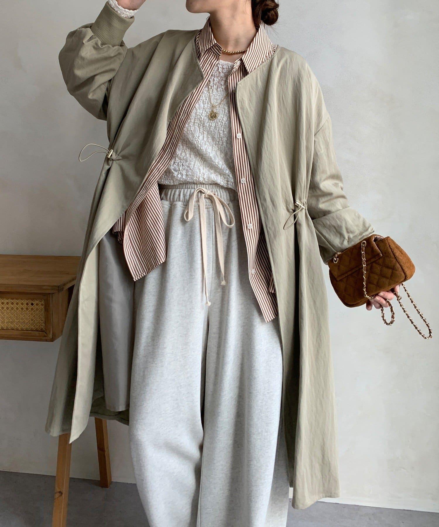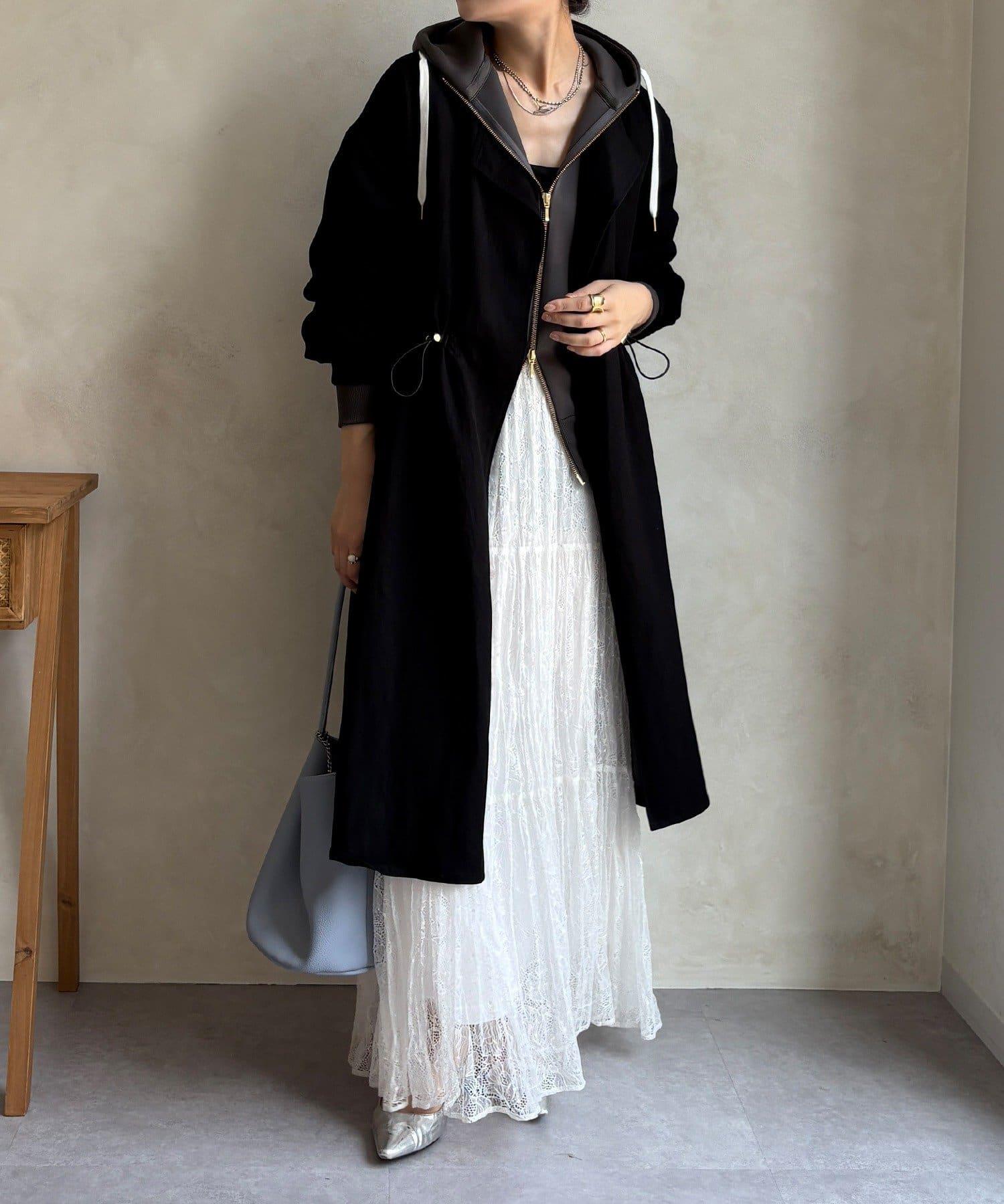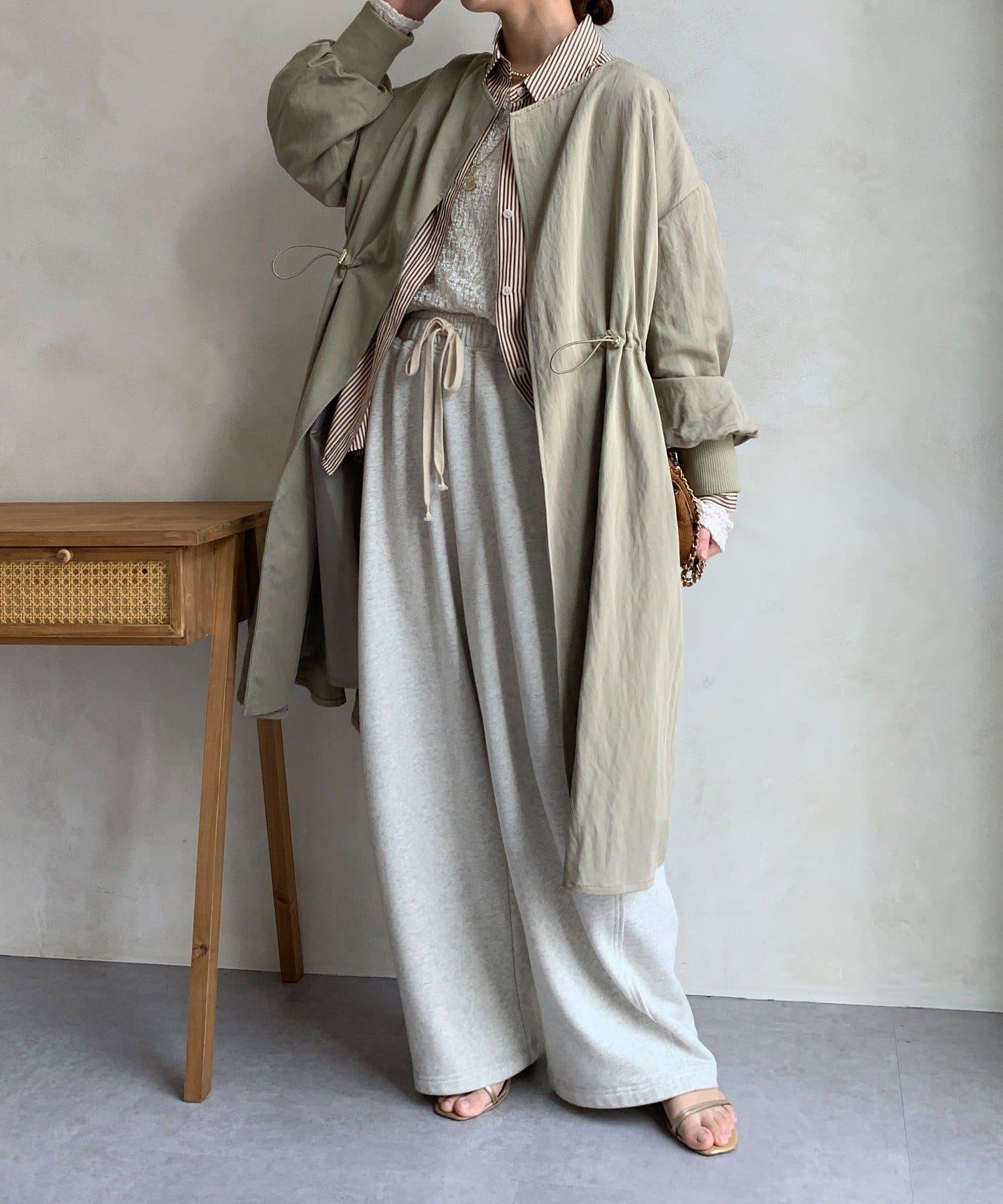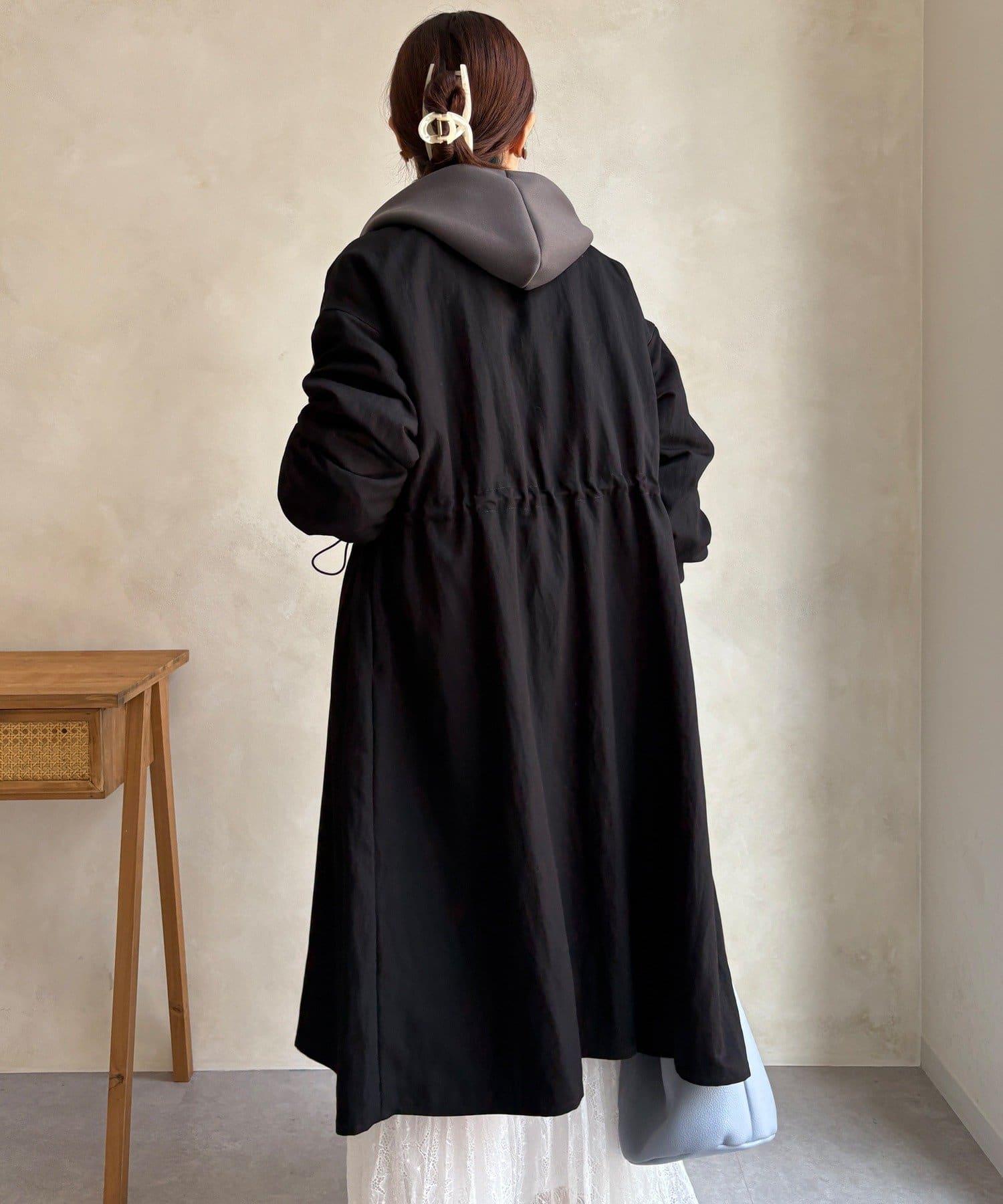 你可以通過擠壓腰部的抽繩來改變廓形,所以你也可以期待擠壓抽繩時的風格提升效果。