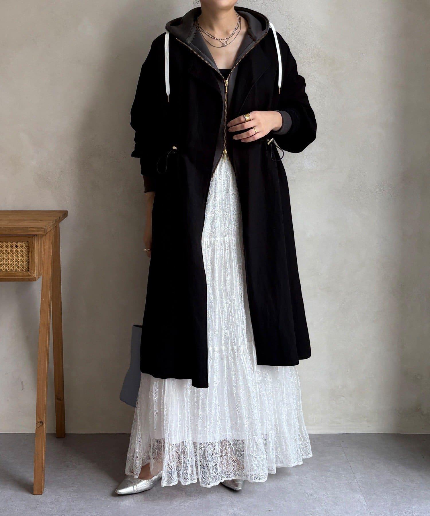 這款長款大衣易於搭配運動褲和裙子等多種風格。