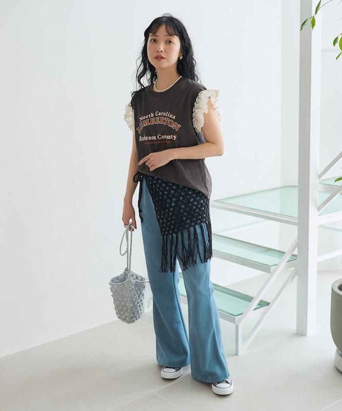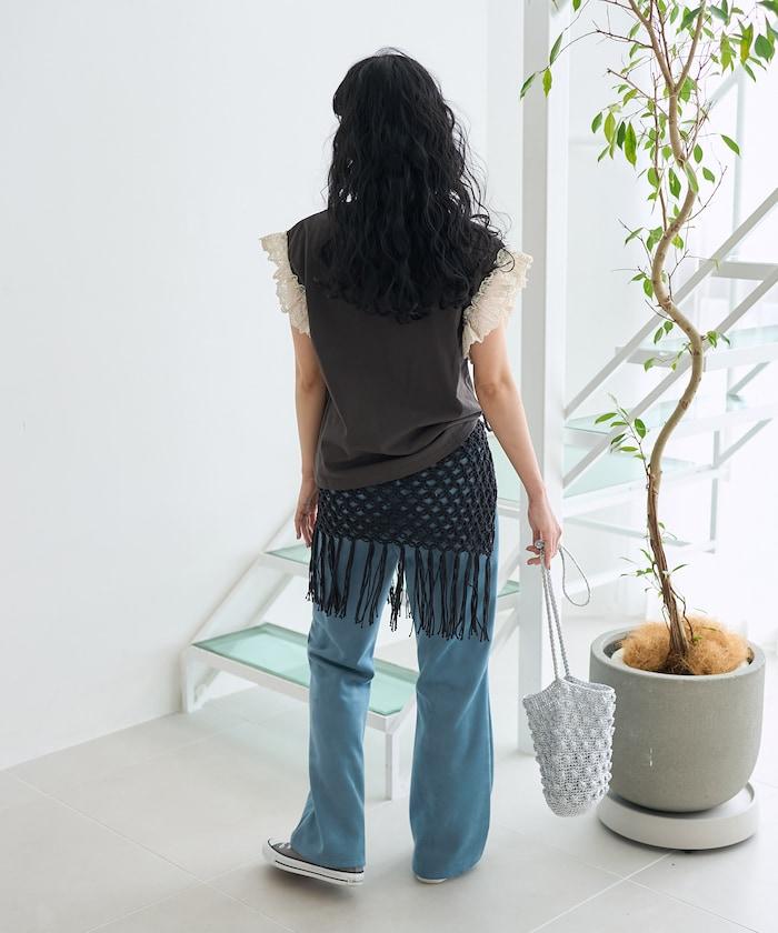 蕾絲花邊讓人眼前一亮,因此與長褲或裙子進行簡單的一二搭配也非常好看。