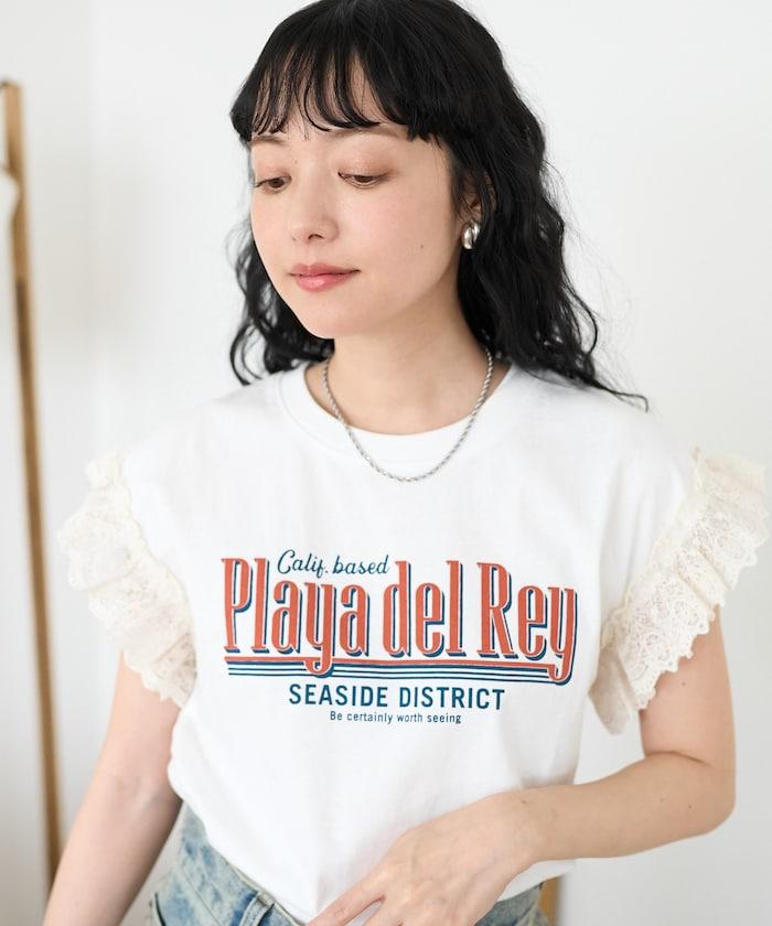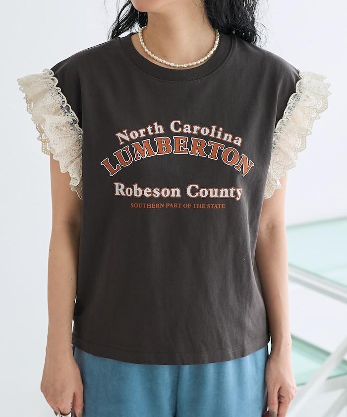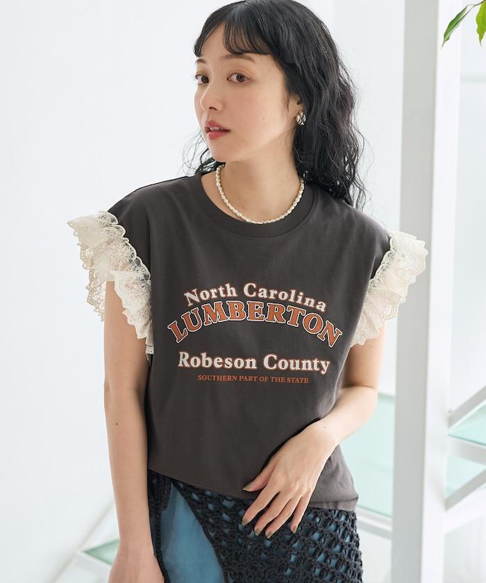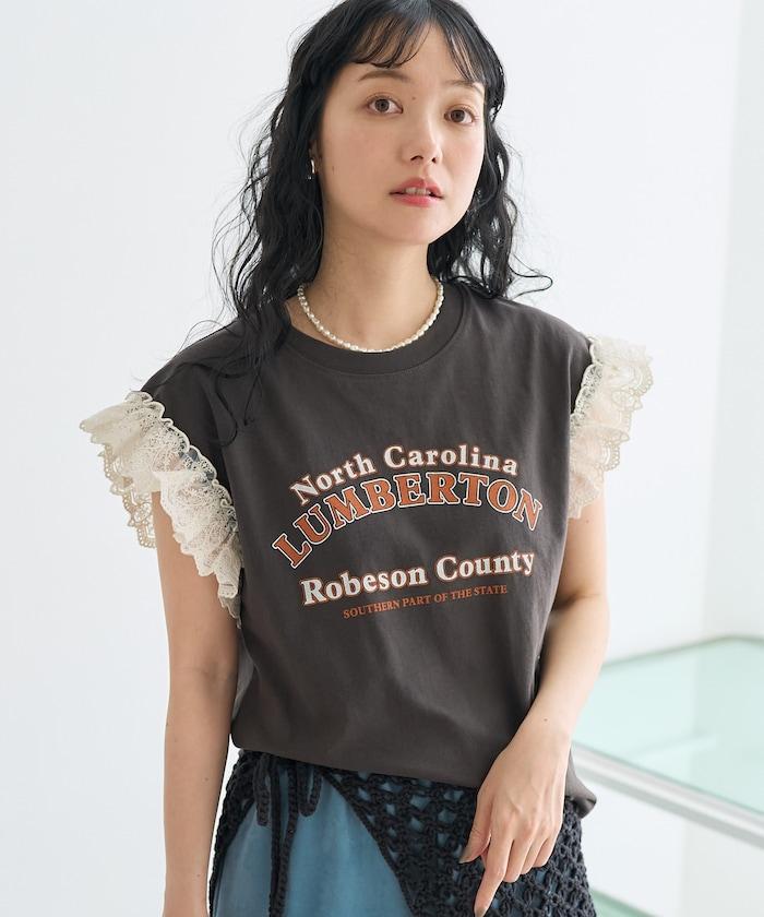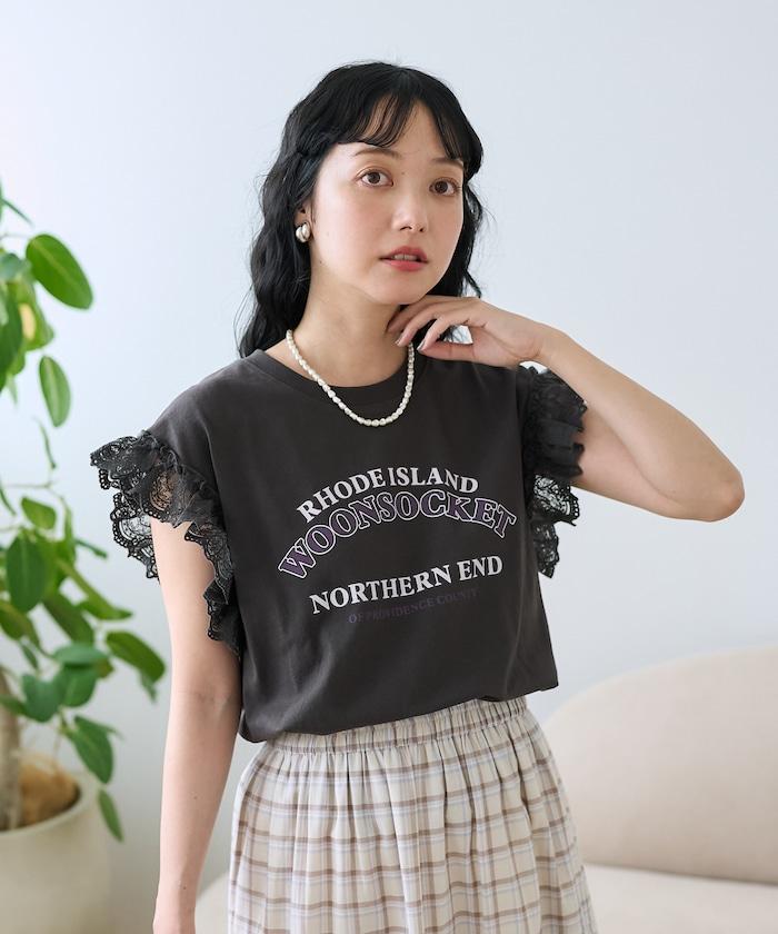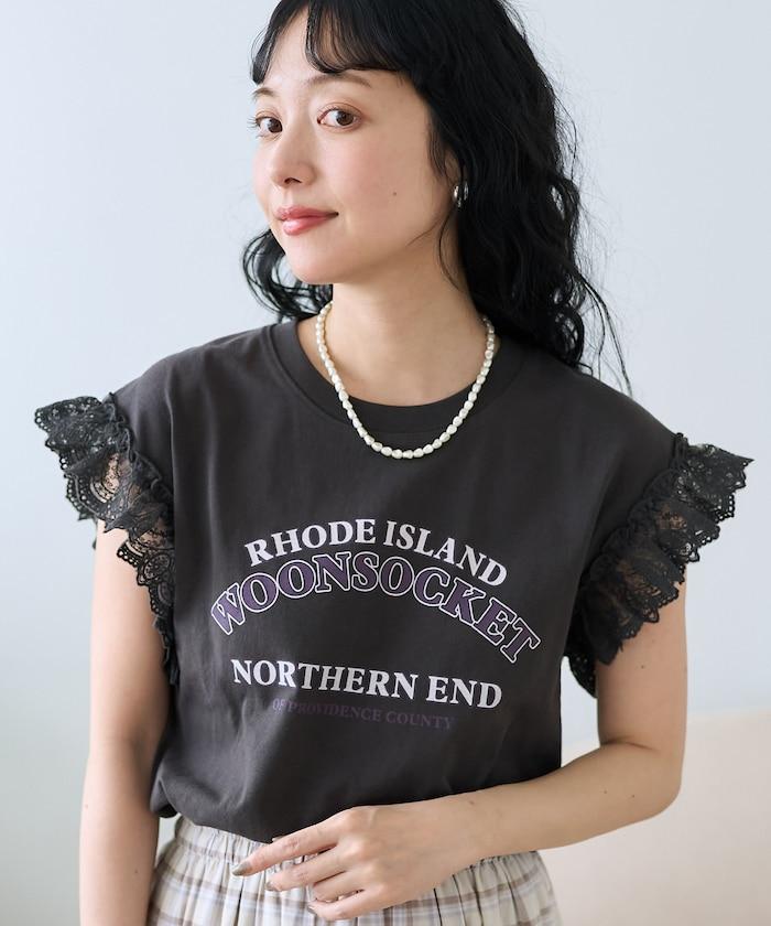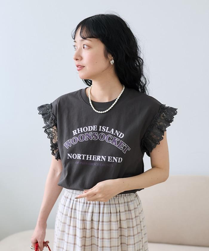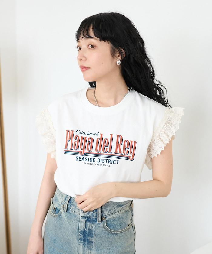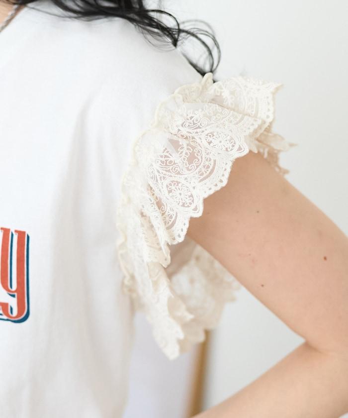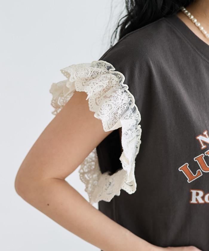 袖蕾絲拼接logo印花T恤