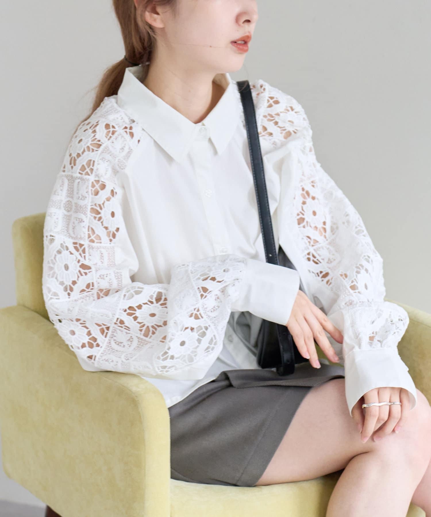 從肩部到袖子的蕾絲花邊令人印象深刻,恰到好處地展現了女性的柔美一面。
