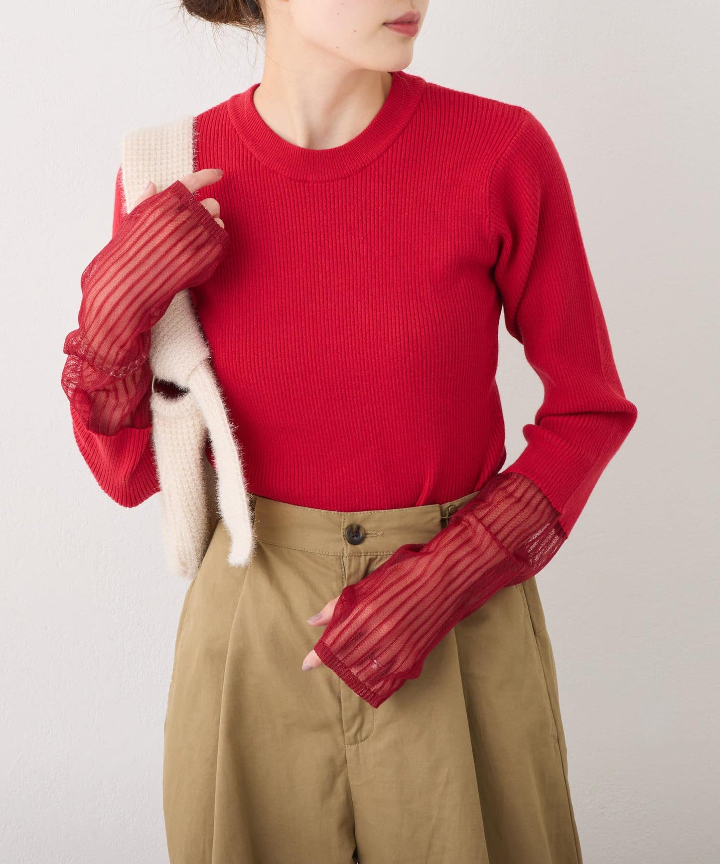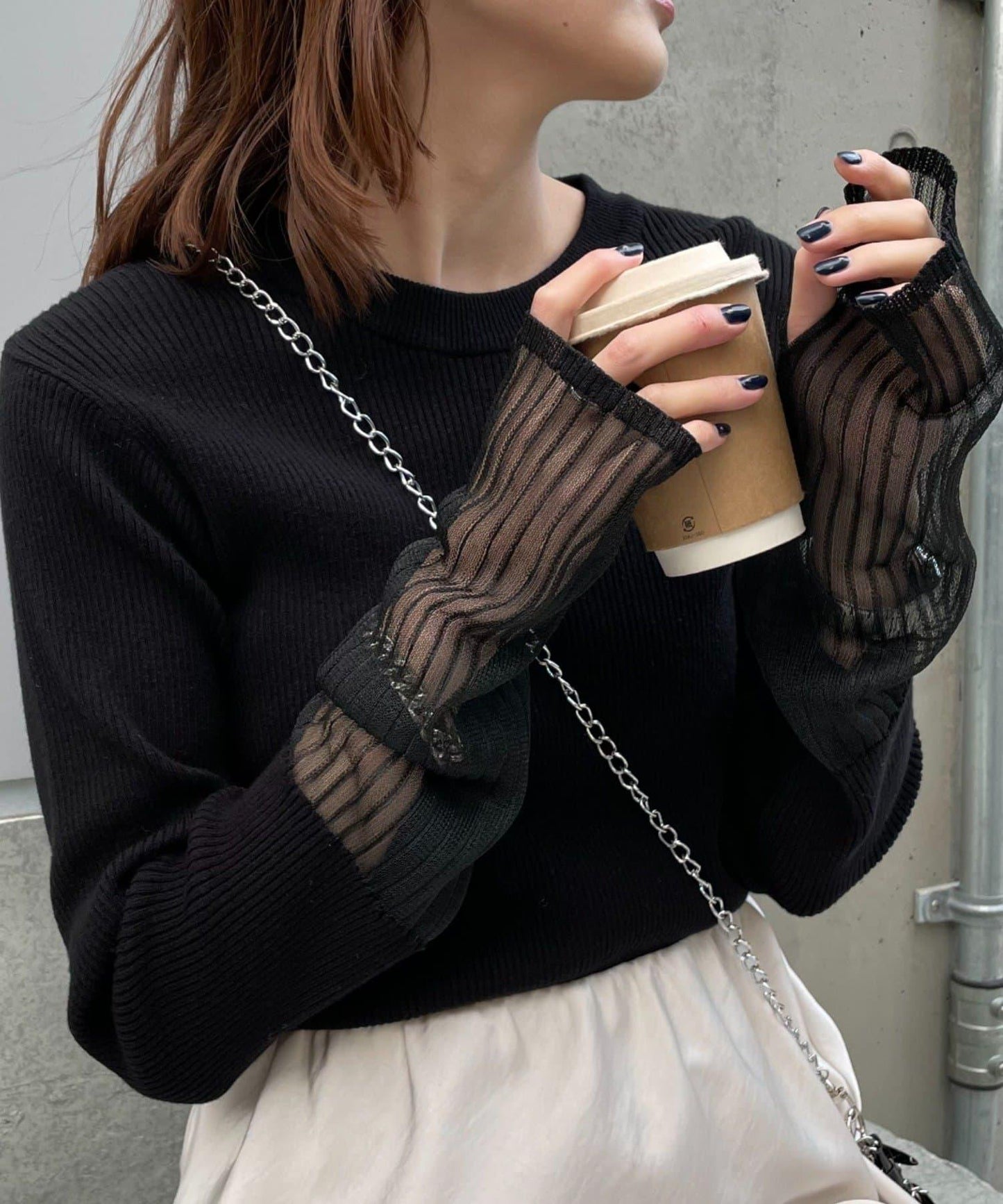 袖子是蕾絲的,所以是一款可愛的多功能針織衫,您可以盡情展示。