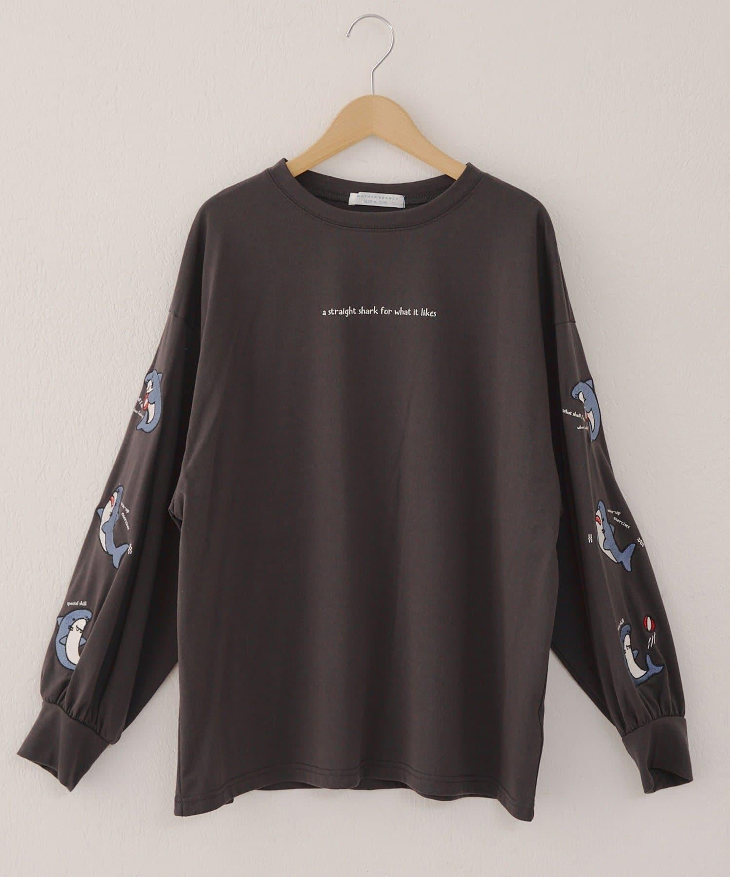 袖部刺繡寬鬆卡通長袖T恤