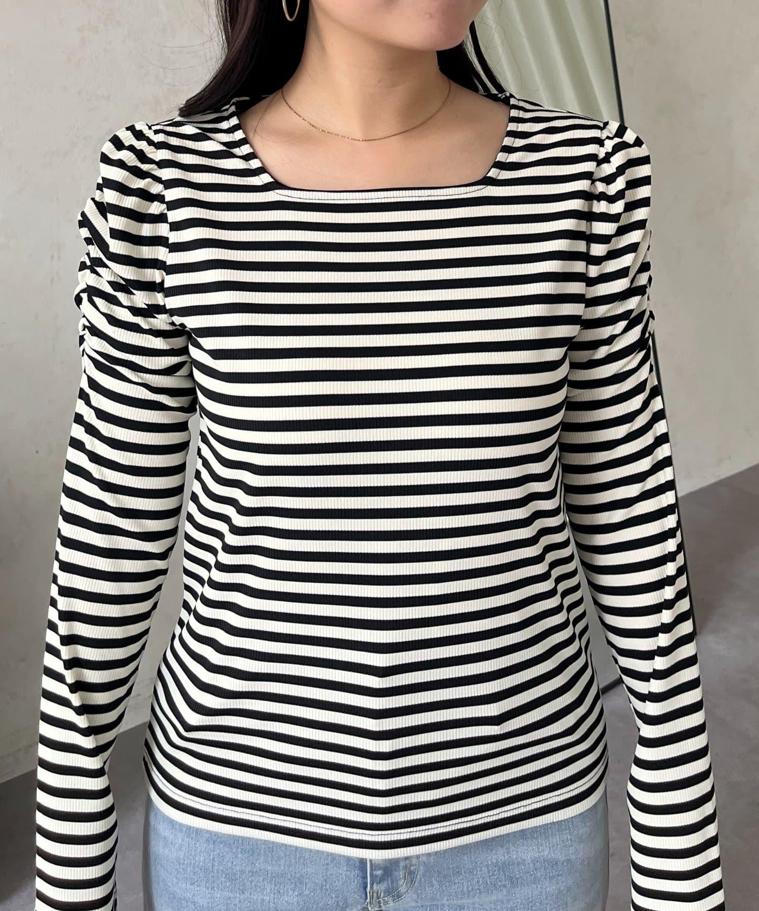 袖部抽褶 條紋褶皺 上衣