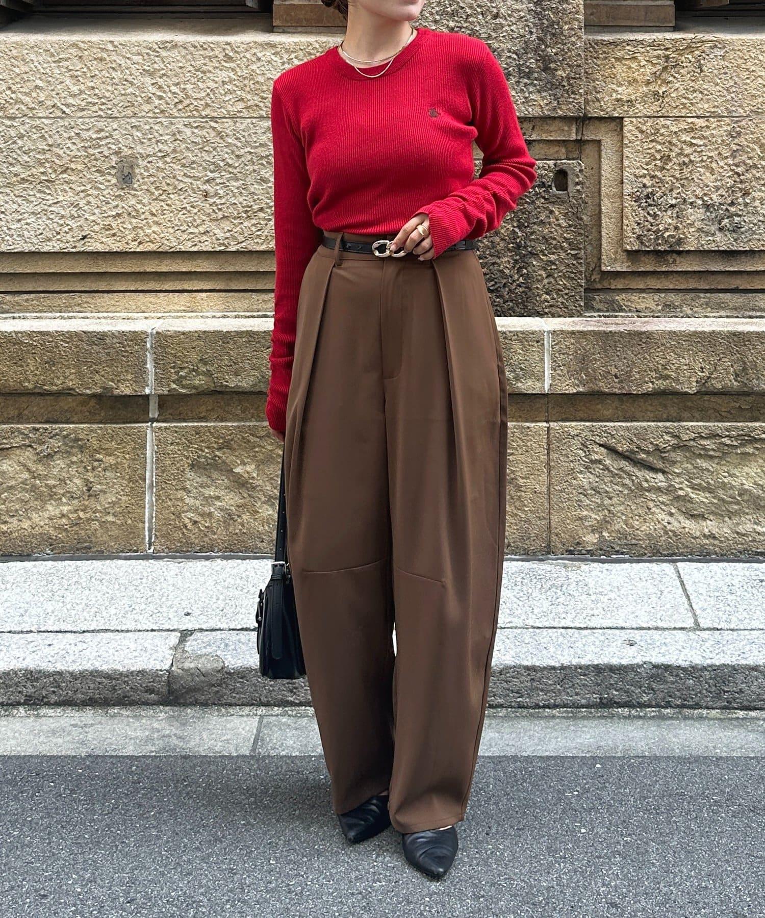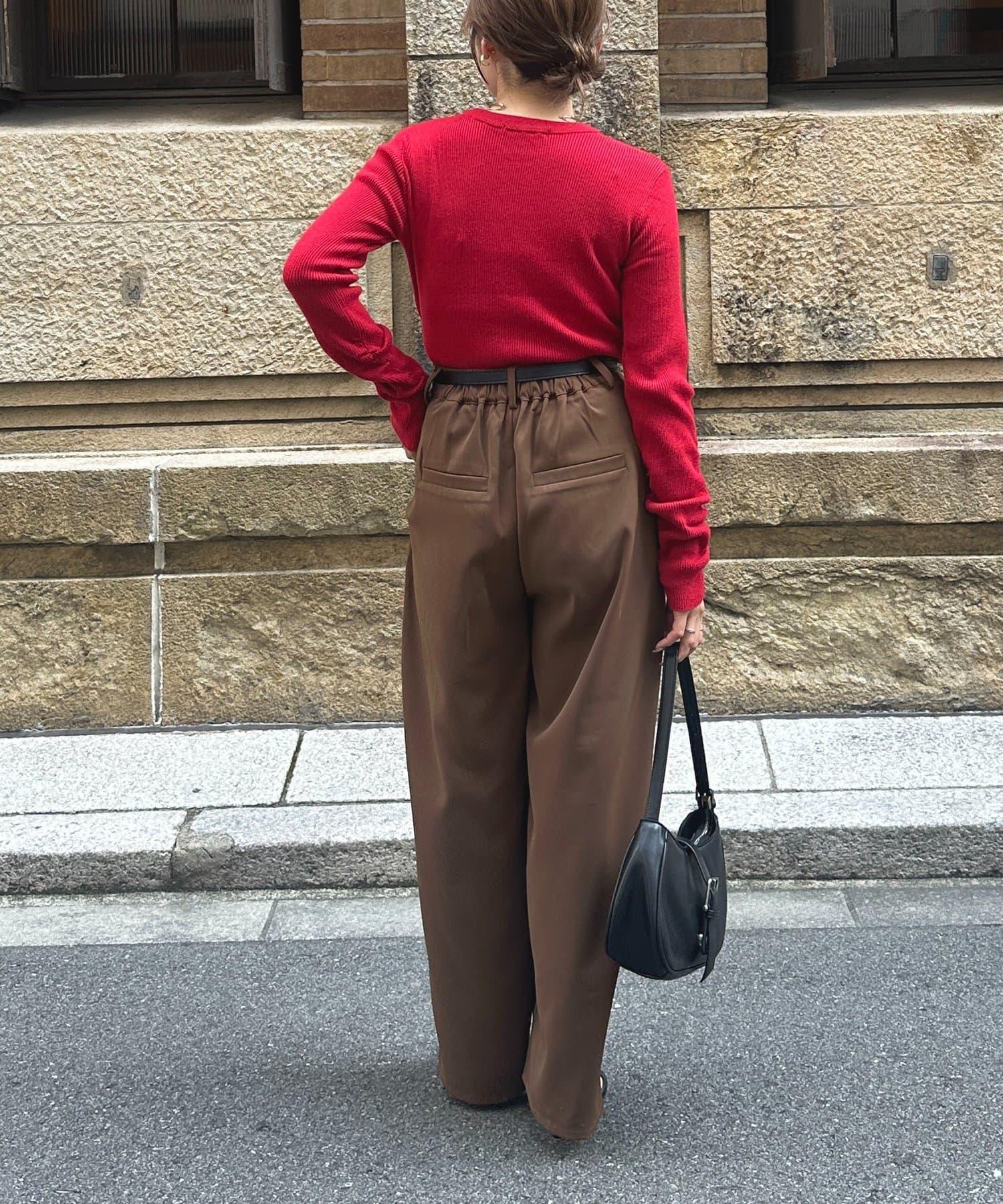 由於這是一件有設計感的上衣,下裝可以搭配簡單的休閒褲或裙子,從休閒到美觀都可以。