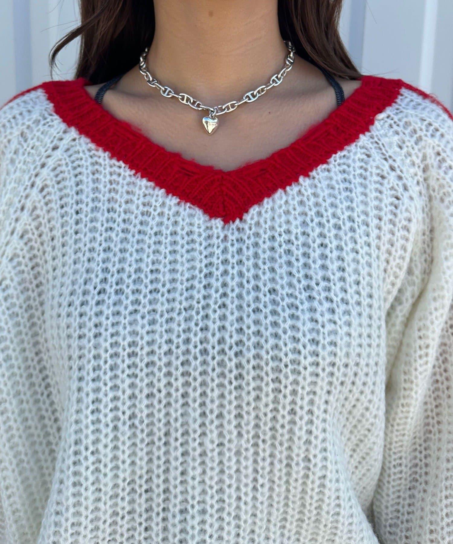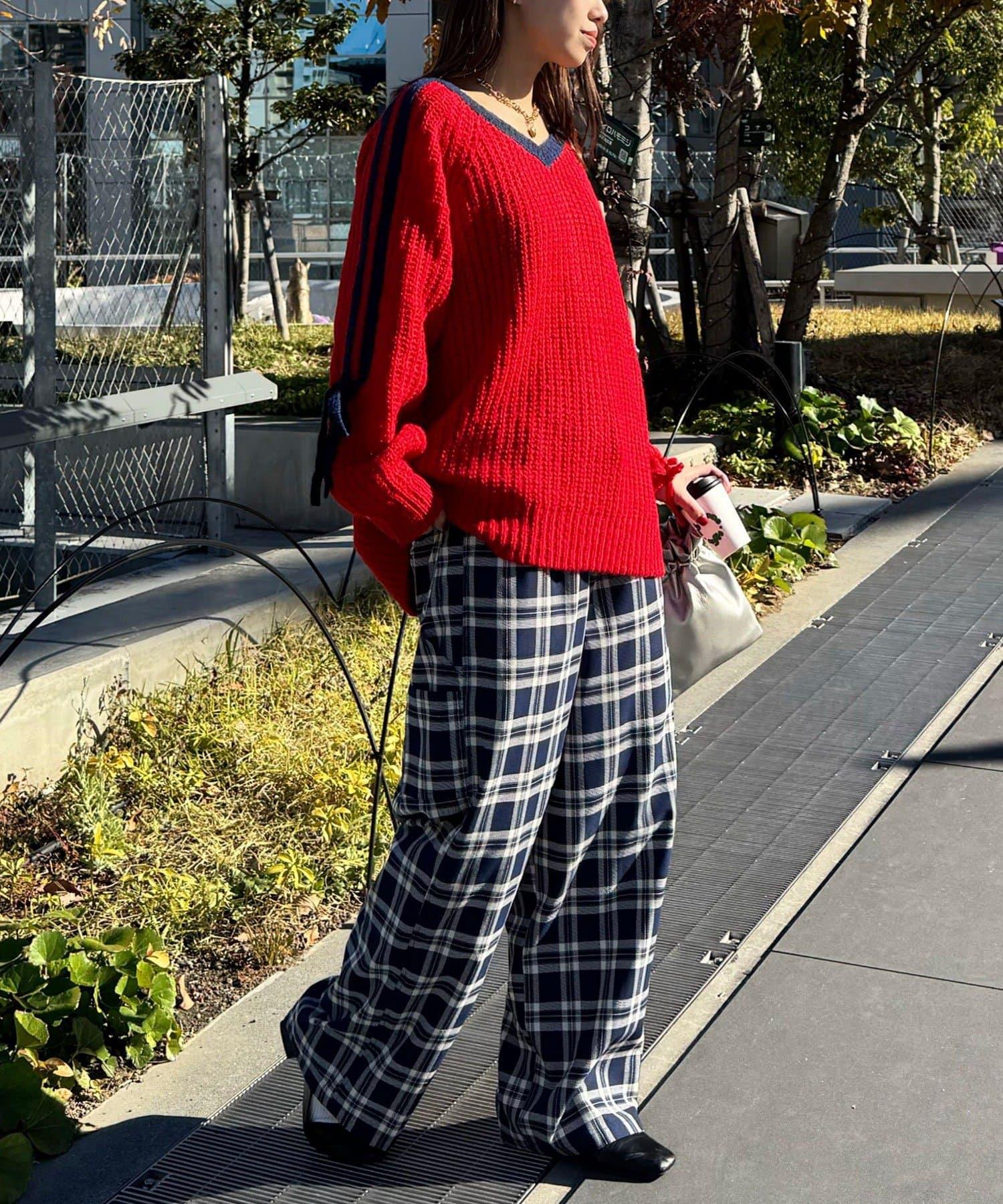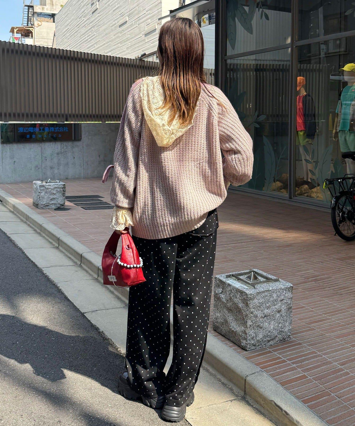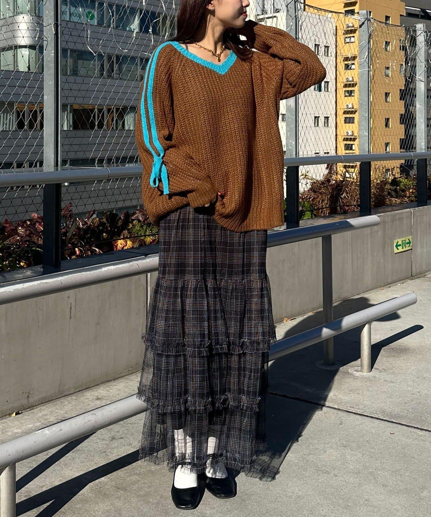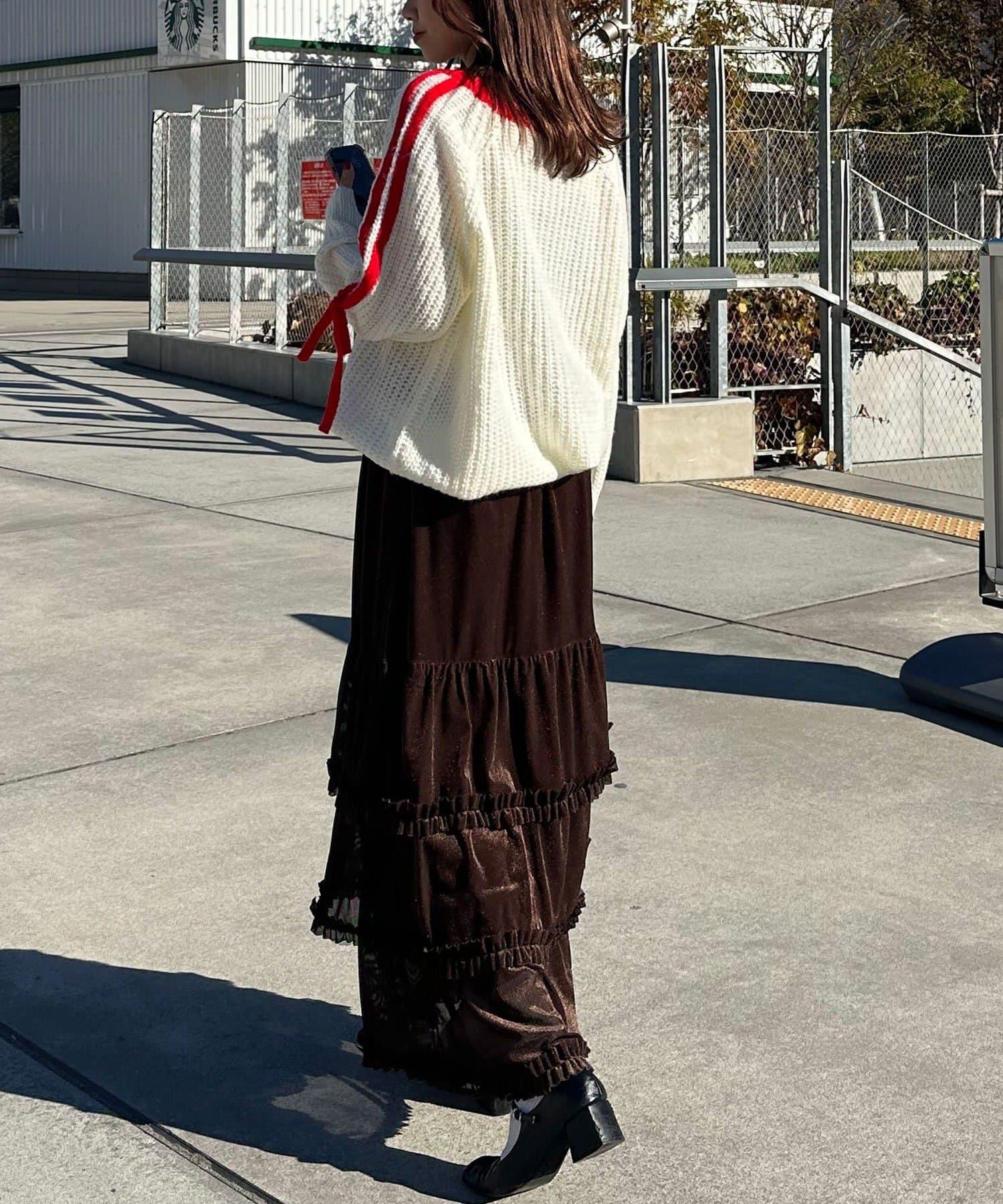 插肩式針織衫,袖子上有線條和絲帶細節。