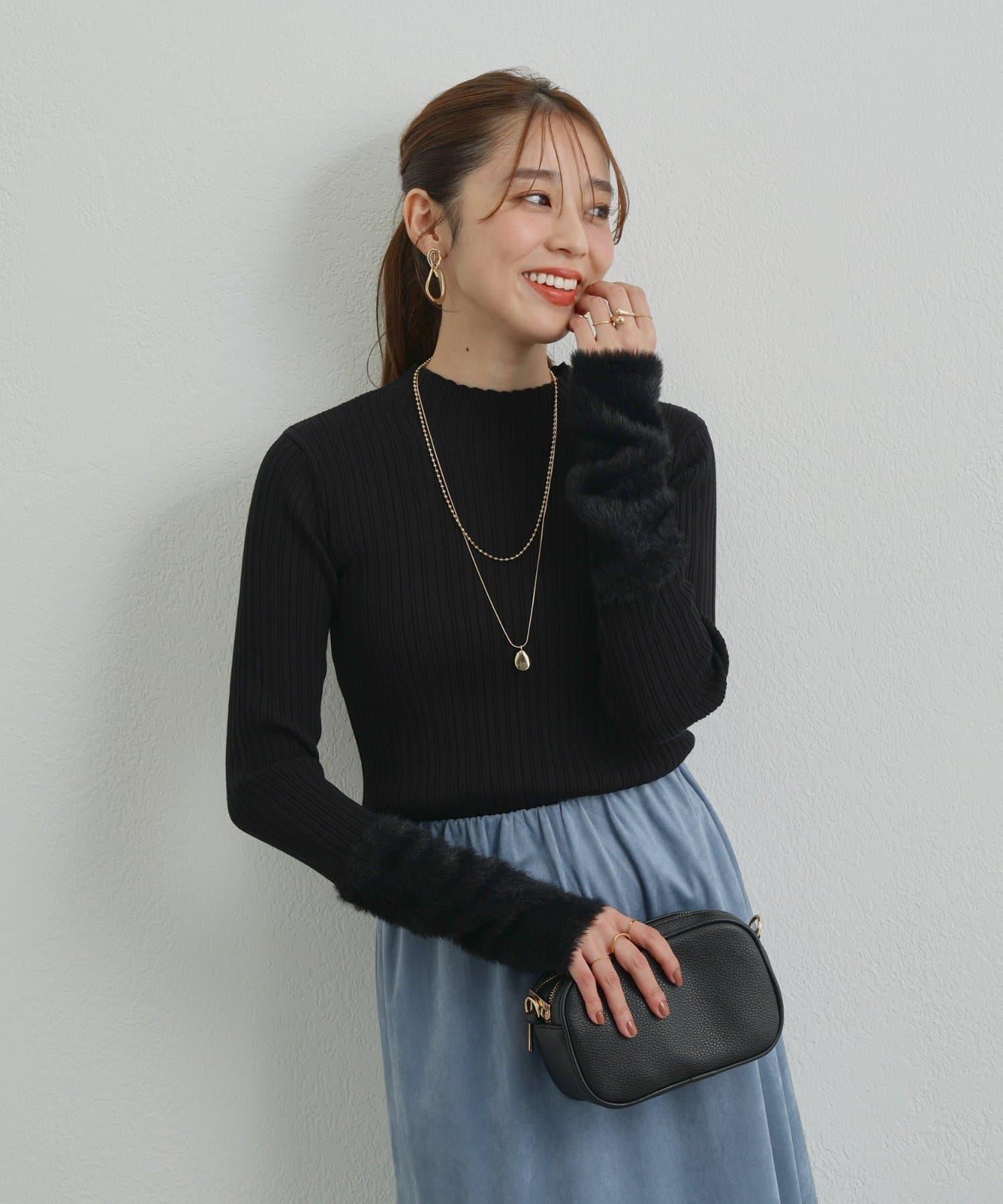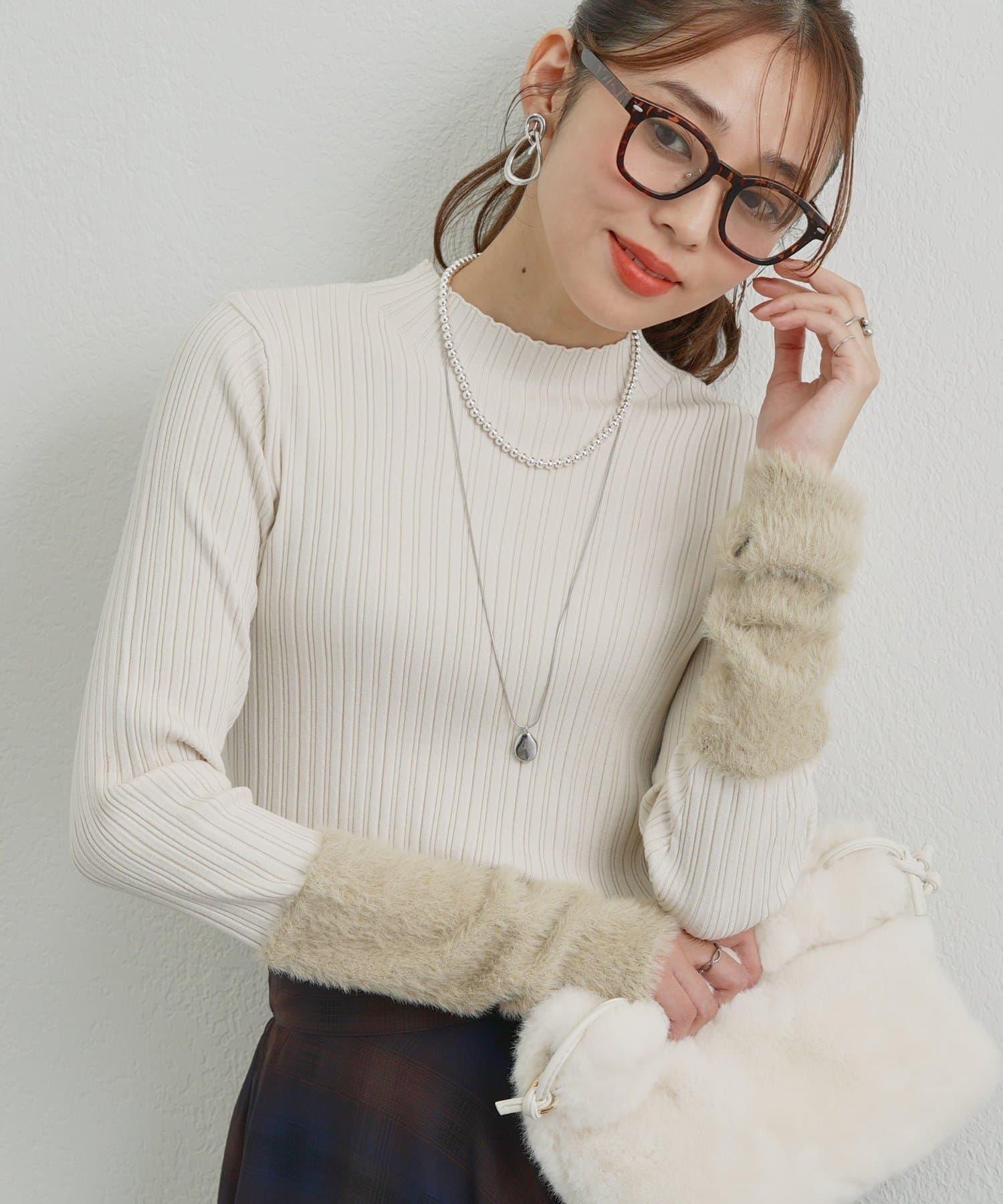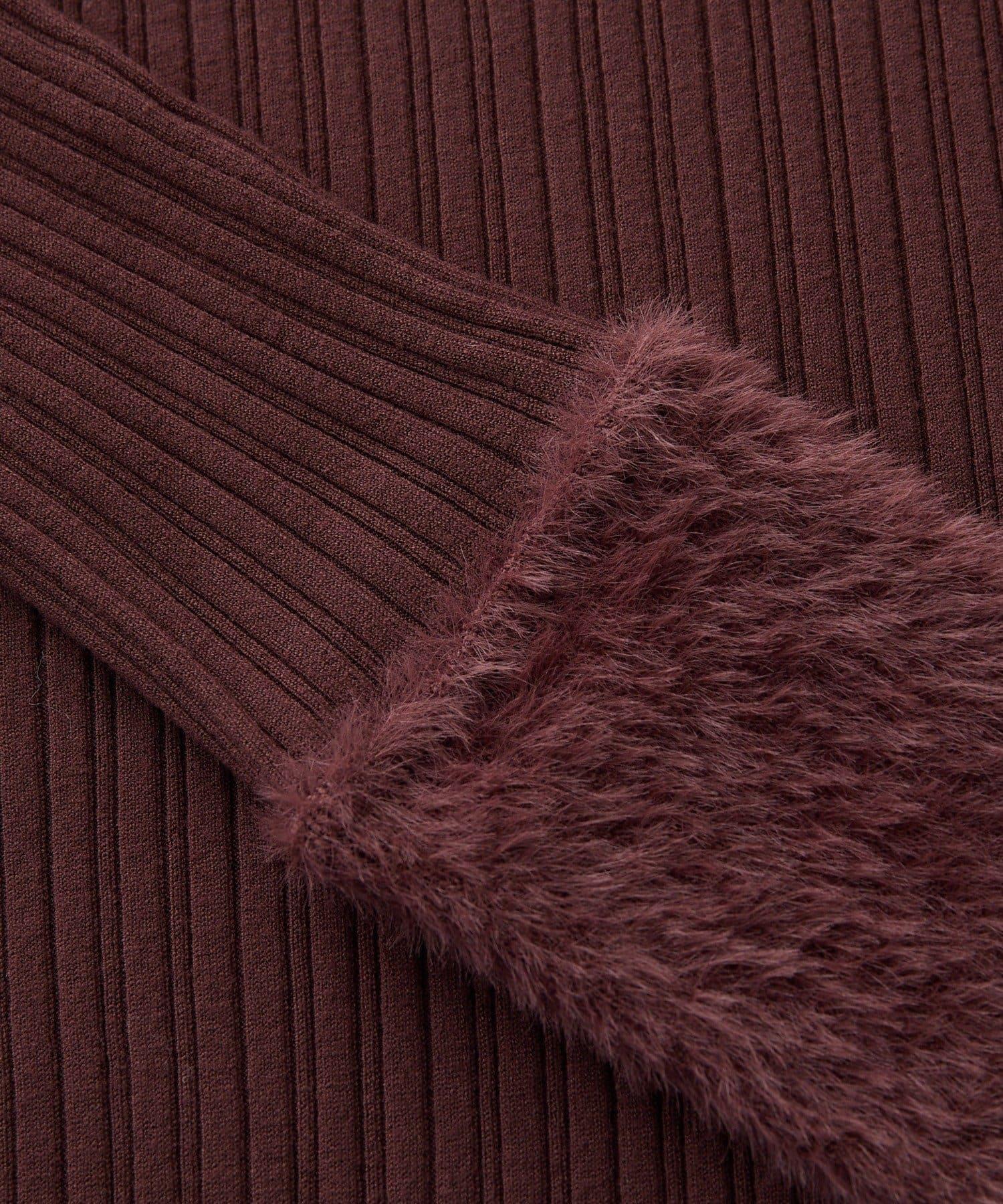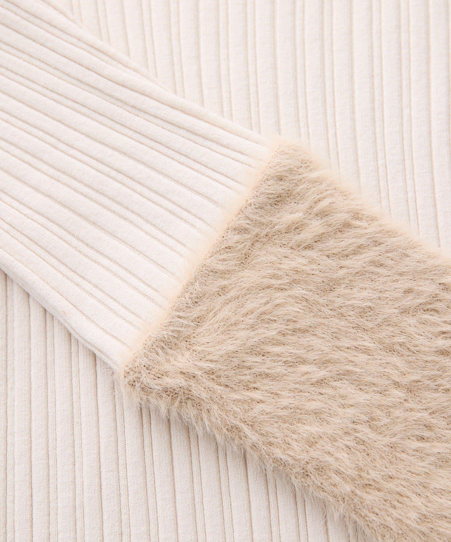 這款針織衫有時尚的毛袖和隨意的羅紋針織。