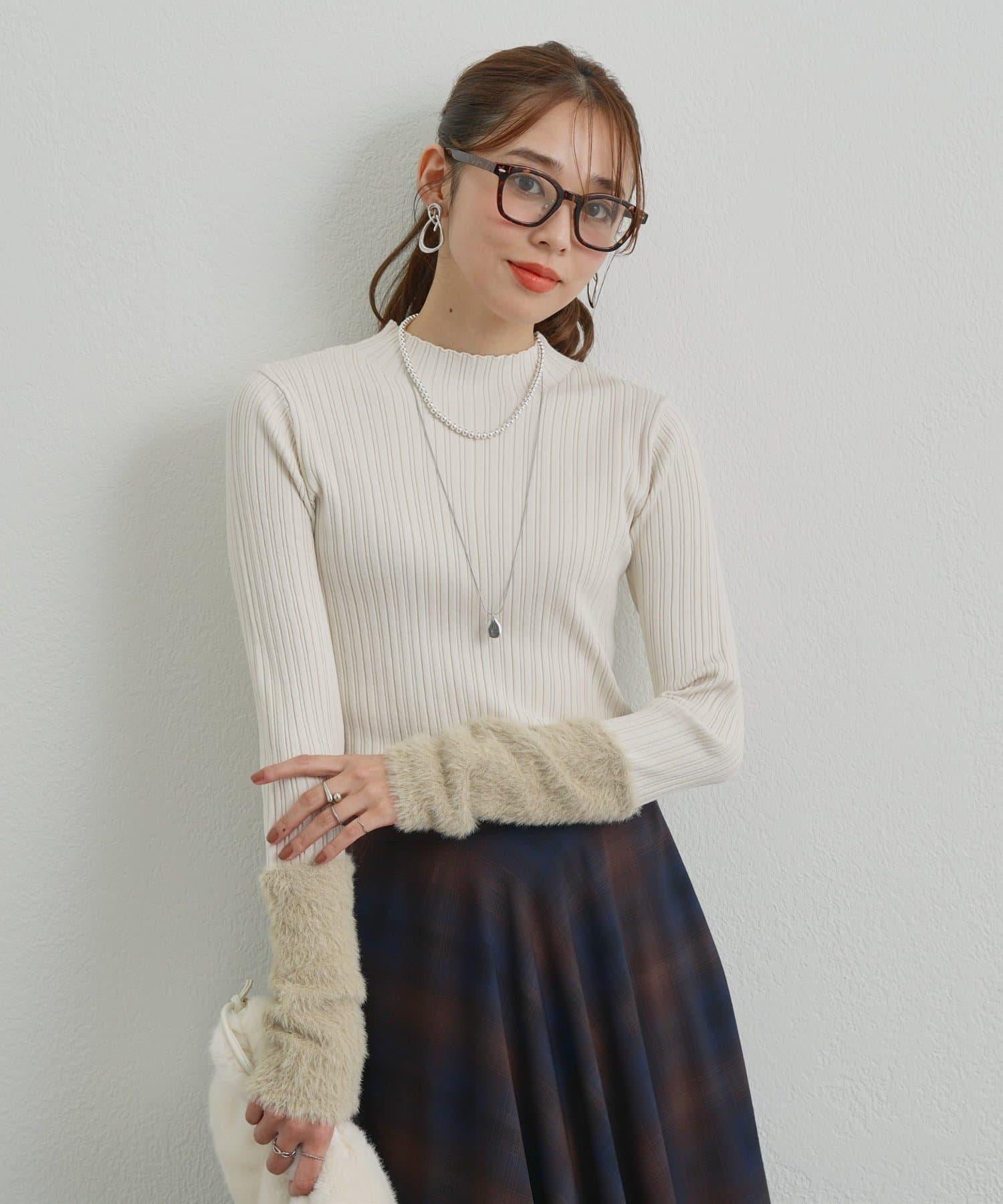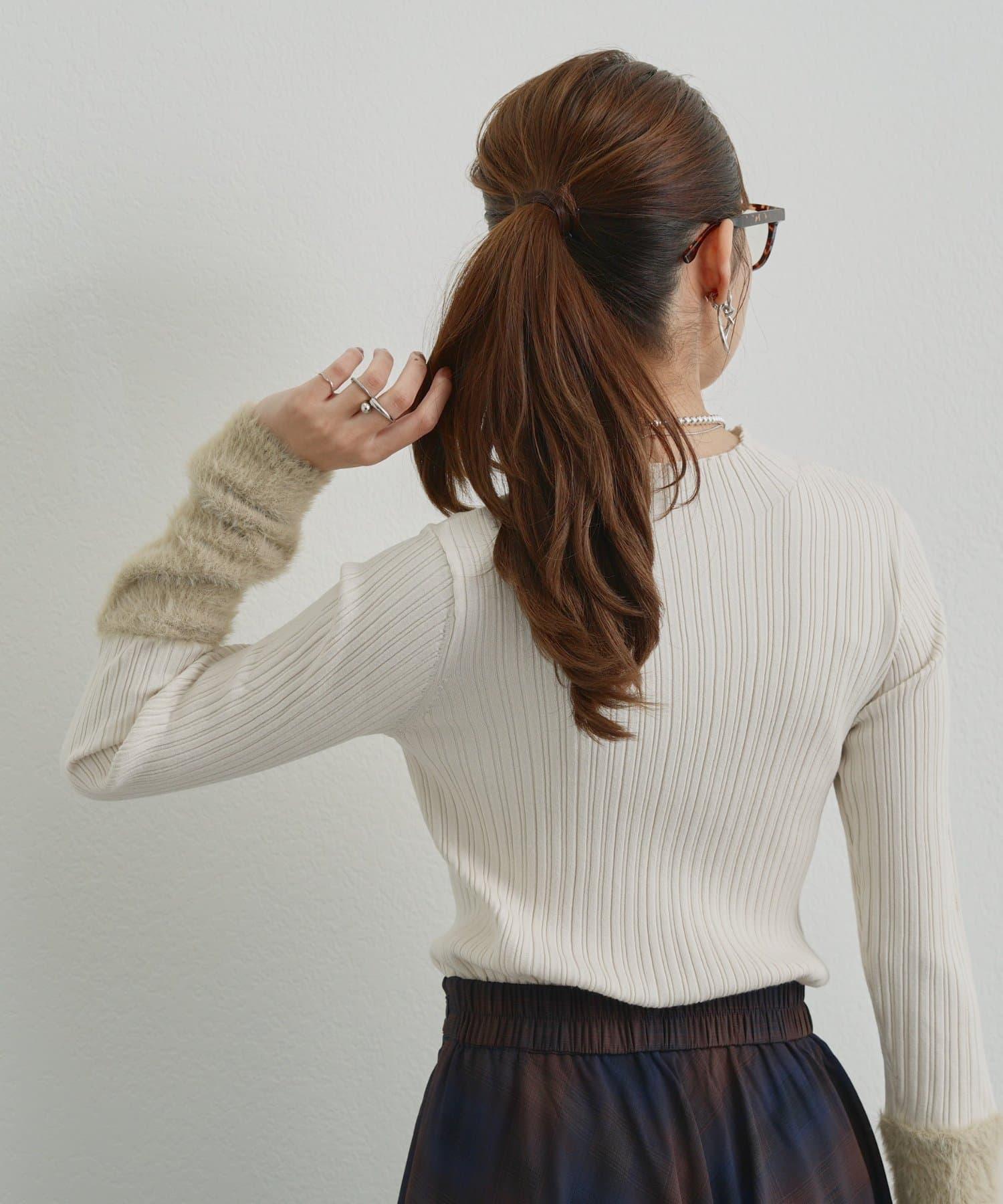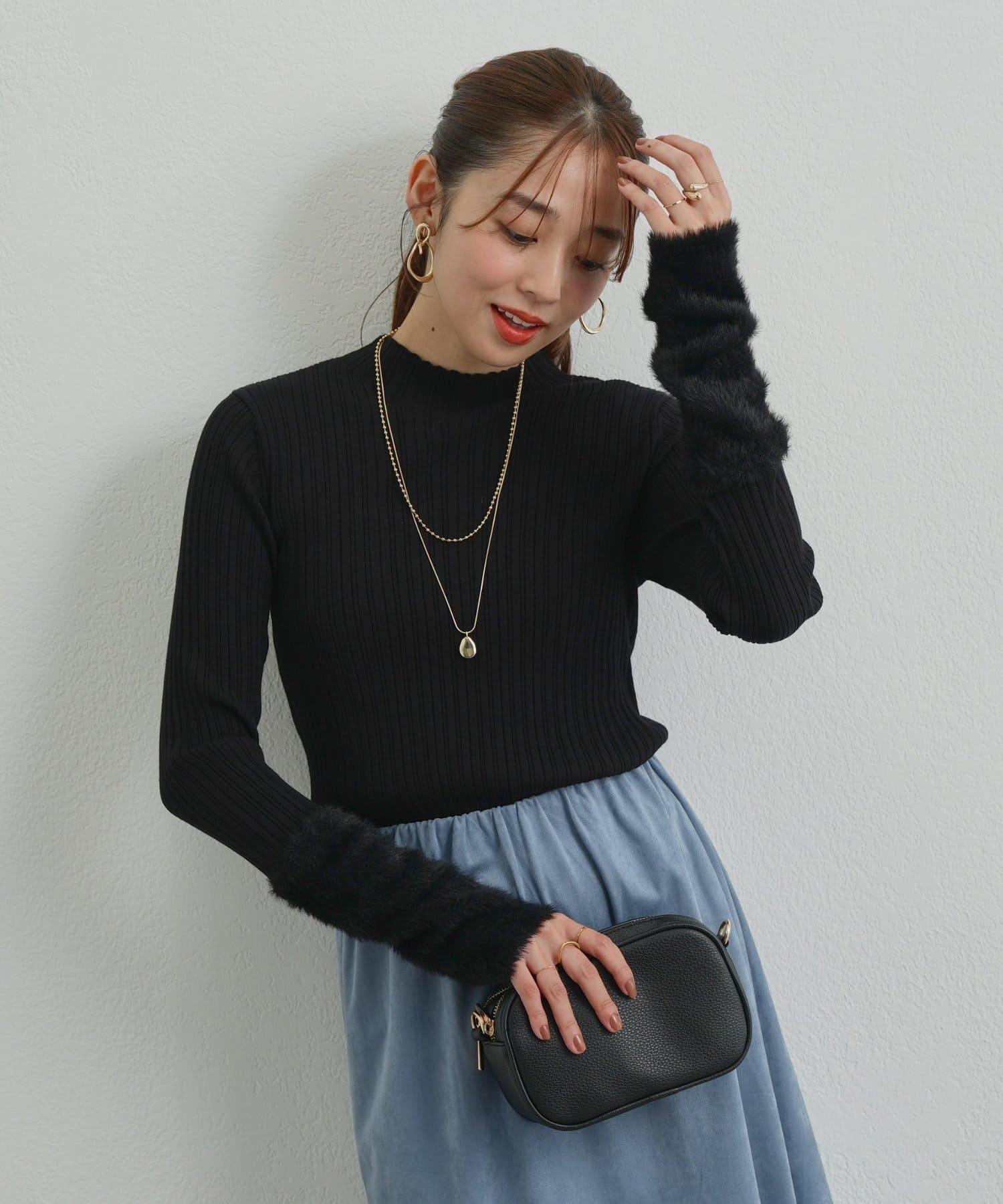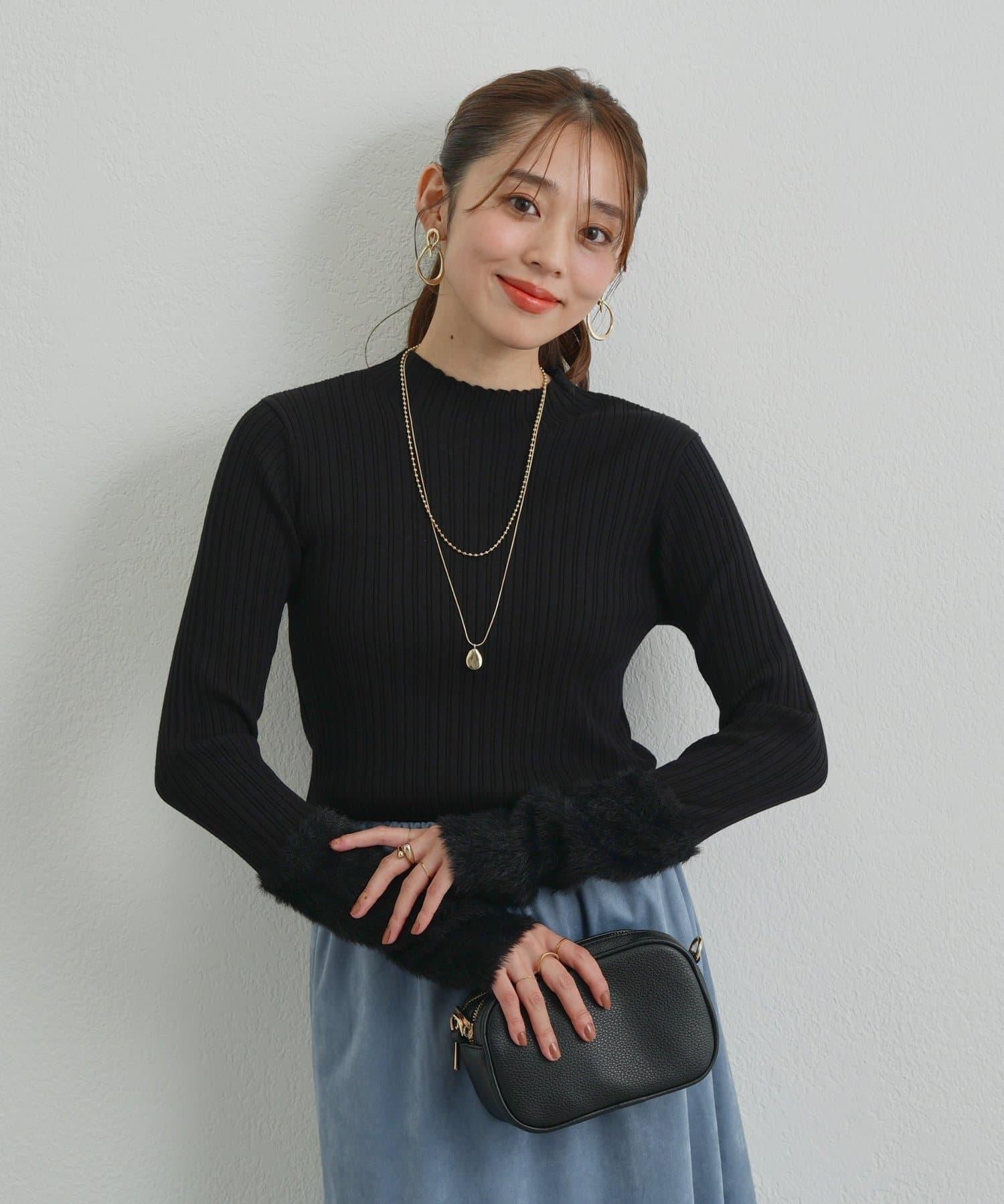 這款針織衫有時尚的毛袖和隨意的羅紋針織。