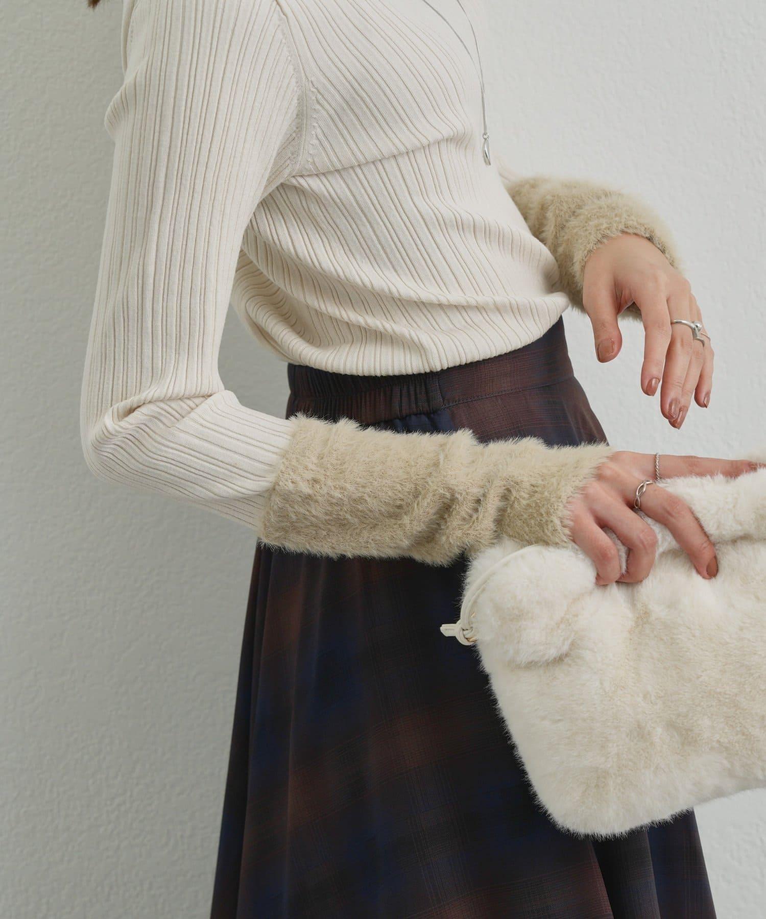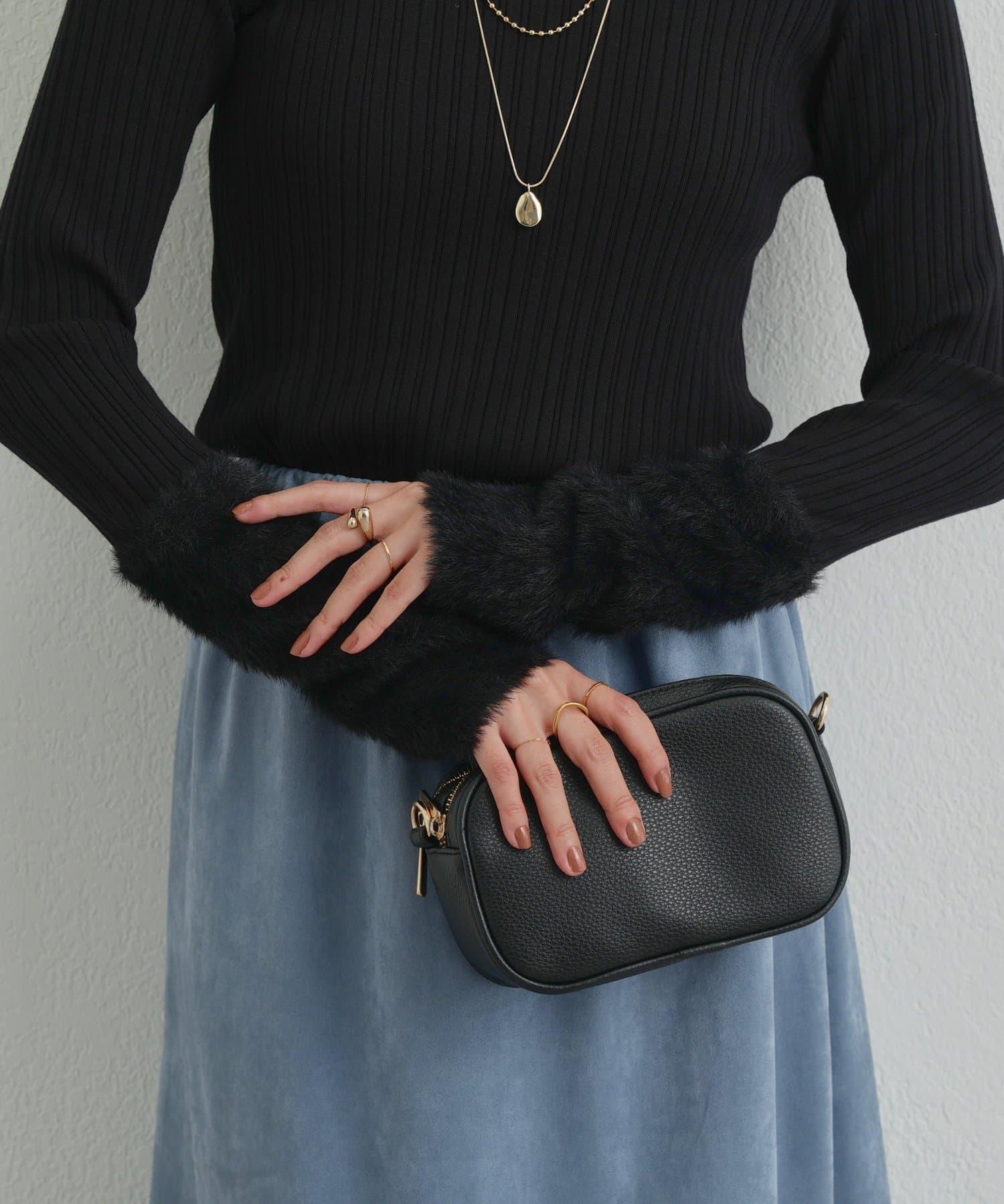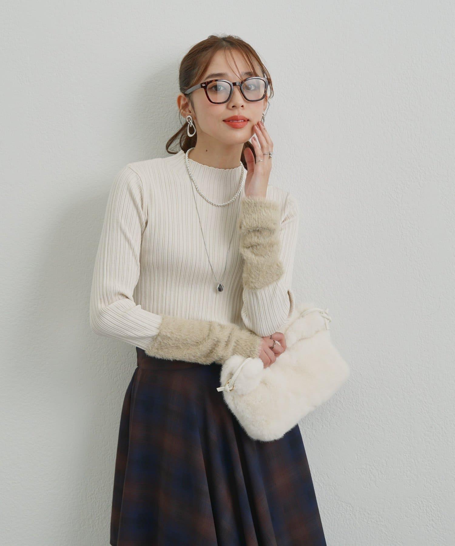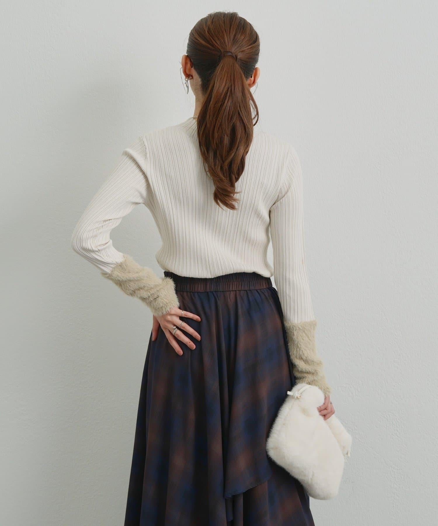 這款針織衫有時尚的毛袖和隨意的羅紋針織。