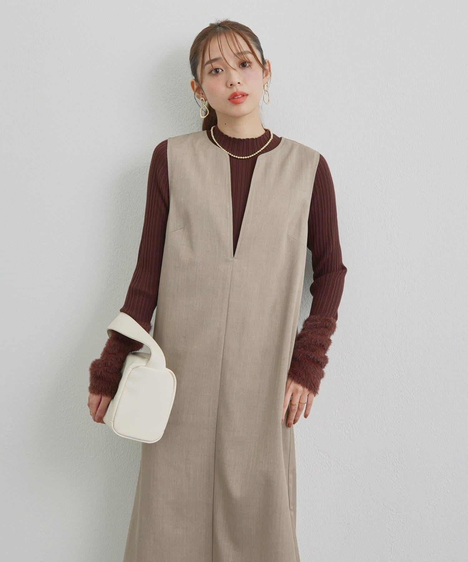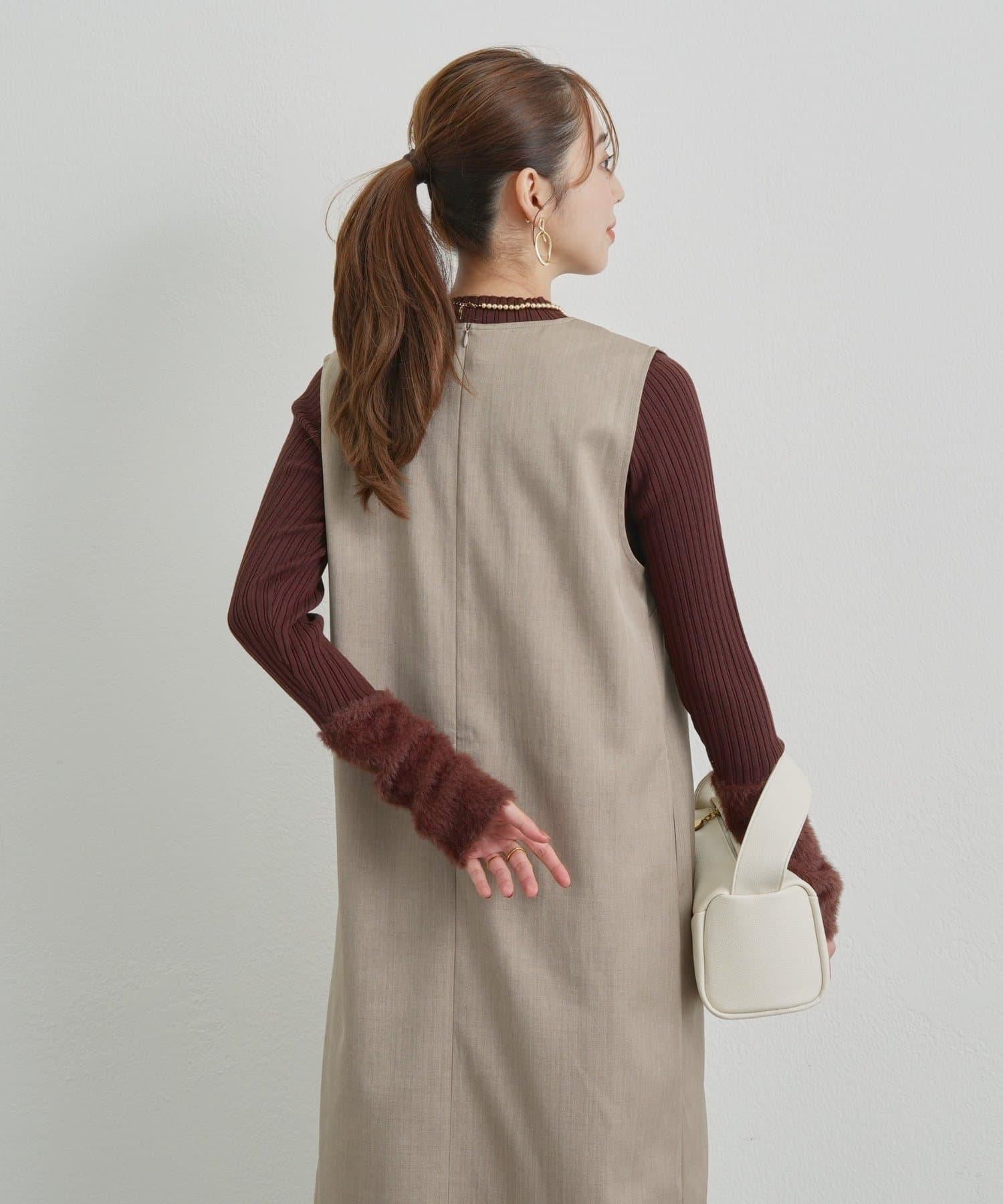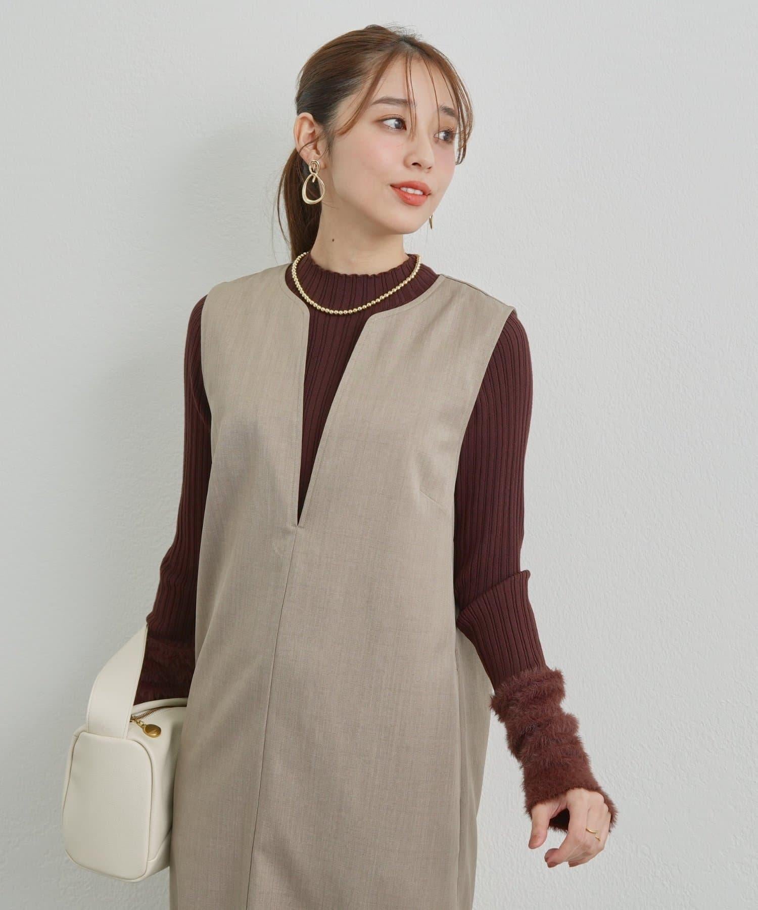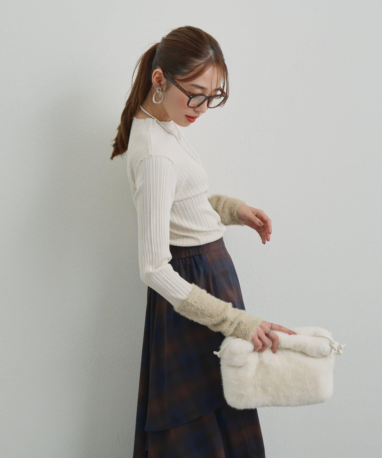 這款針織衫有時尚的毛袖和隨意的羅紋針織。
