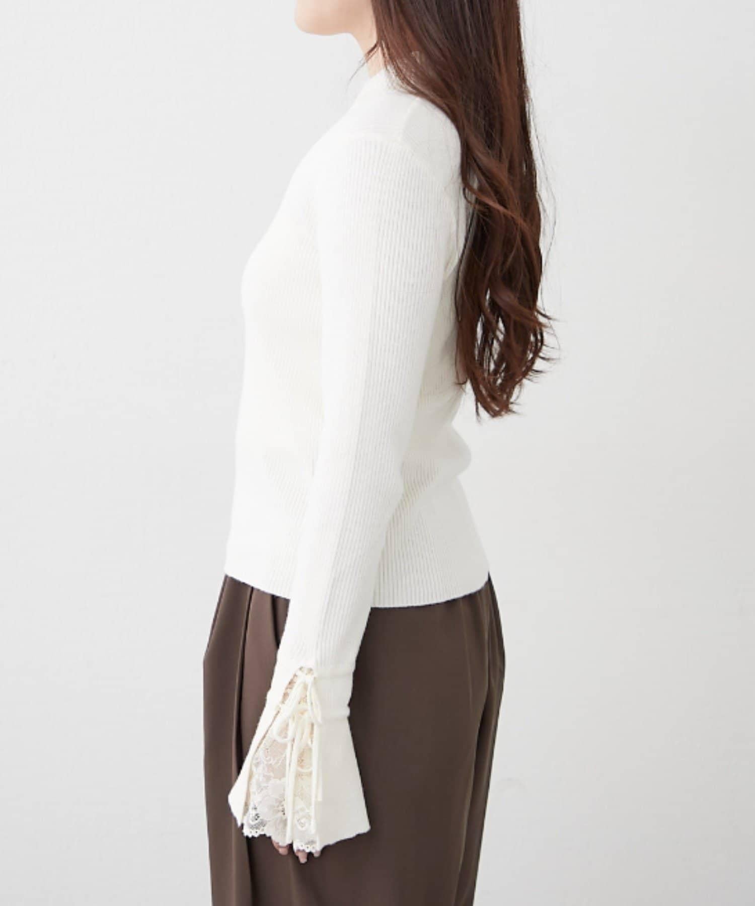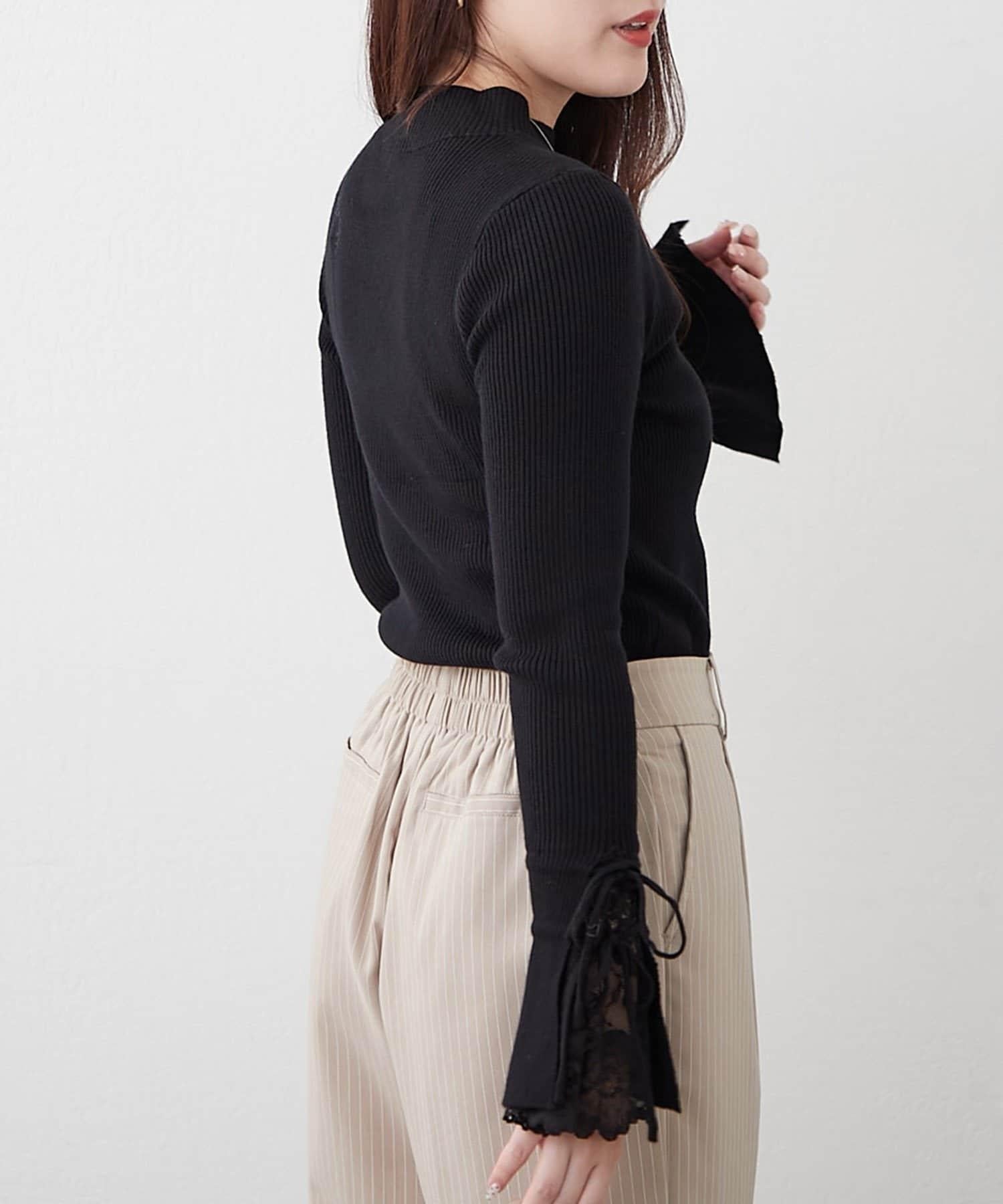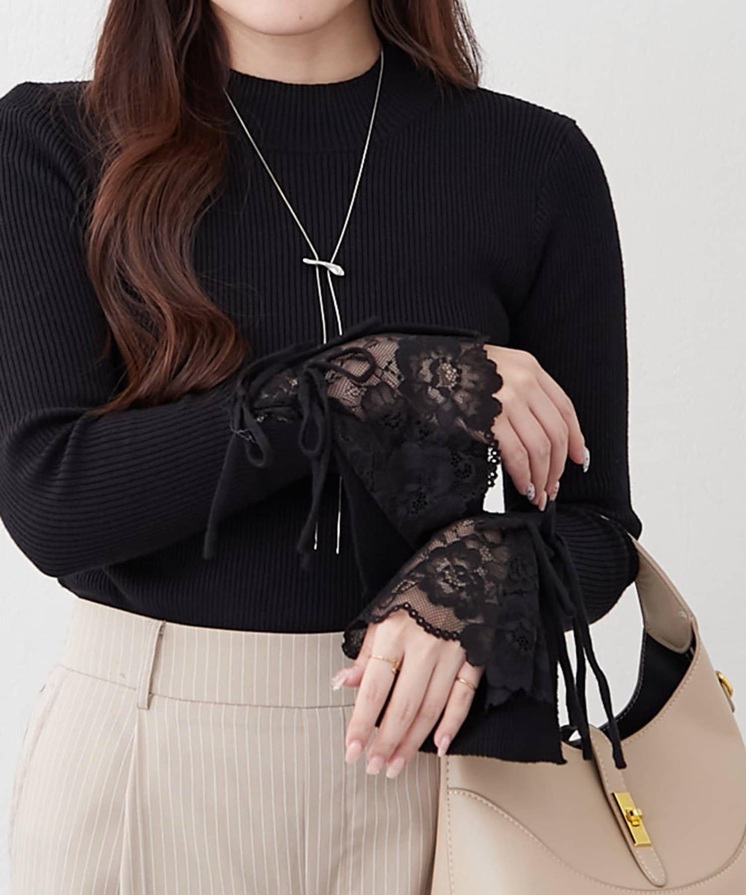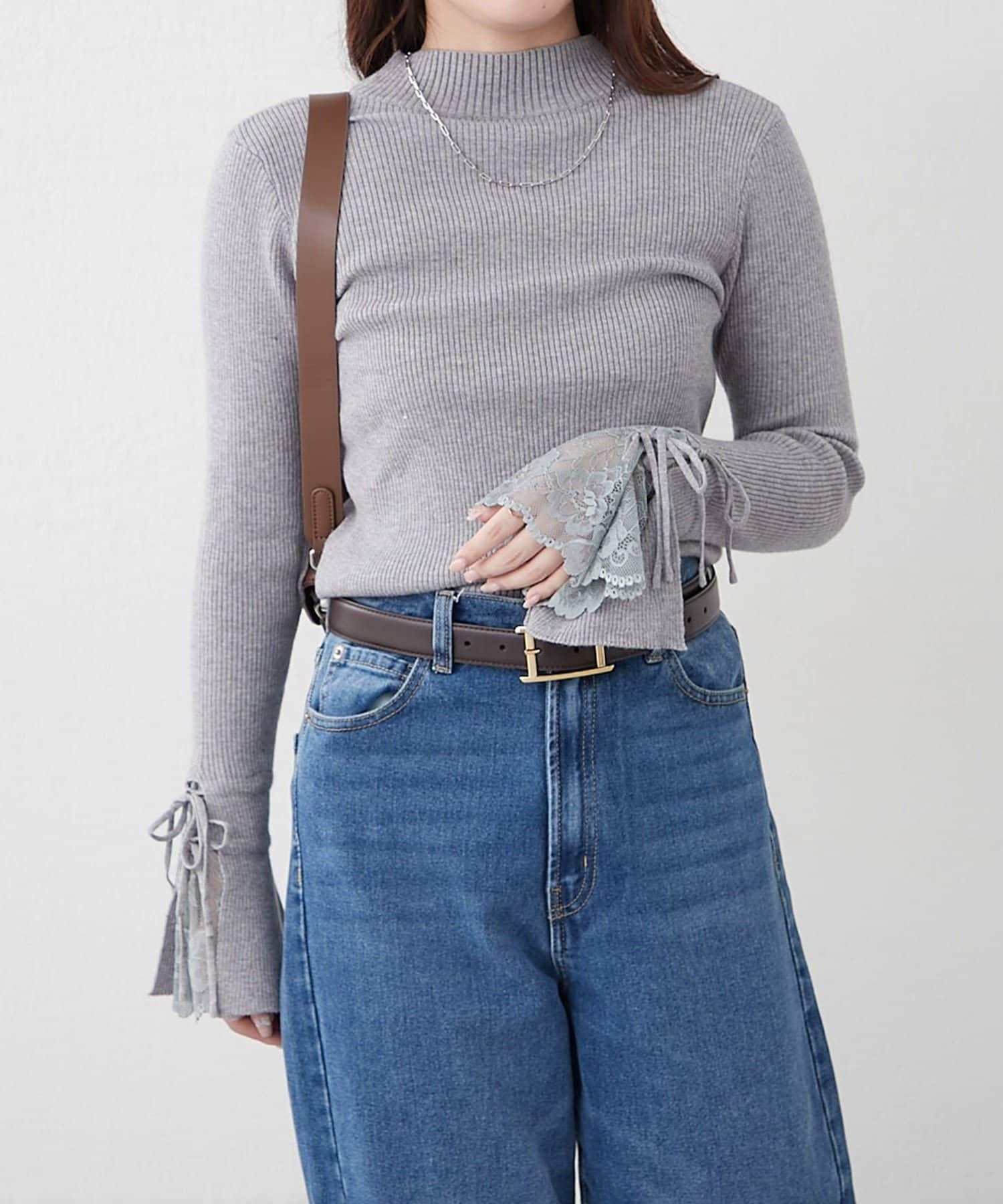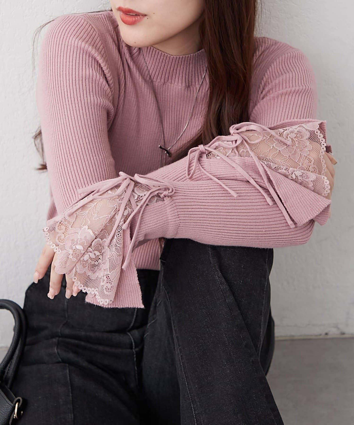 這款針織上衣的袖子上有可愛的蕾絲和絲帶。
