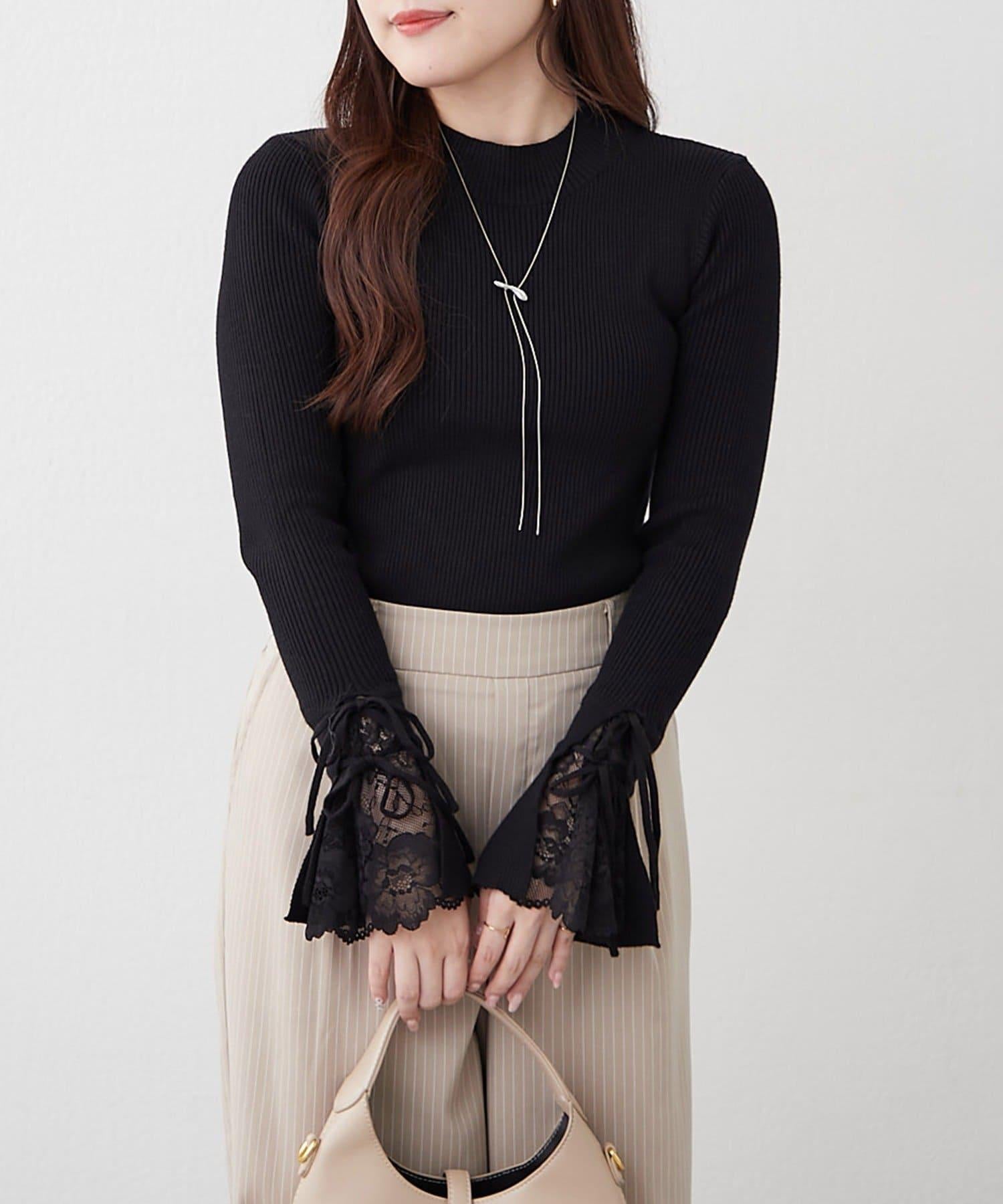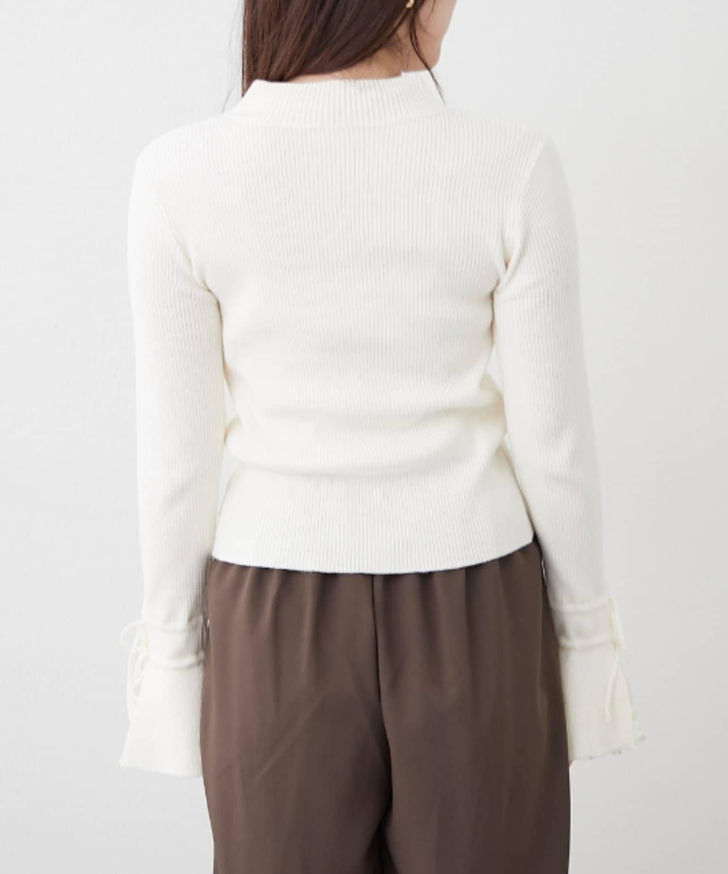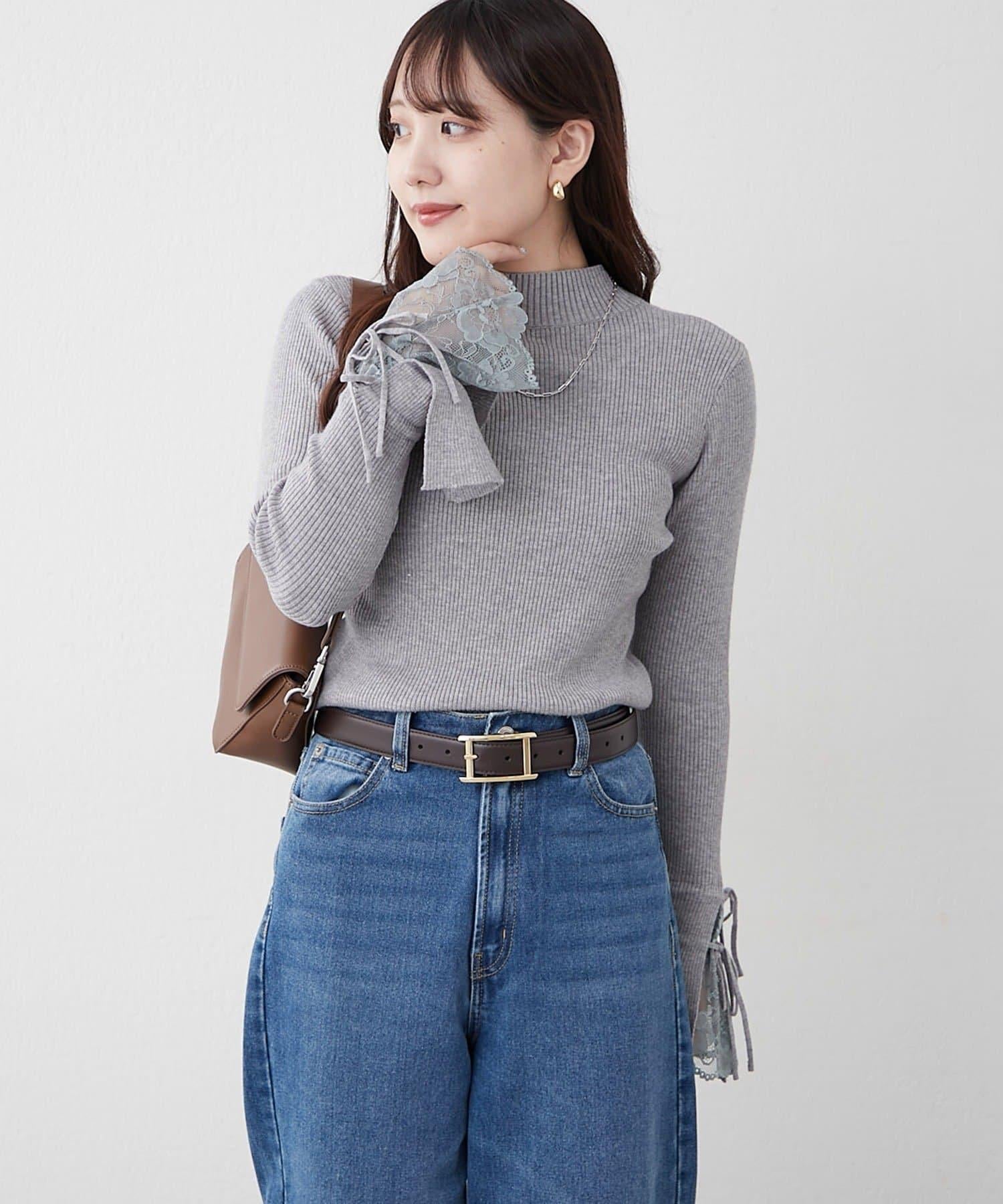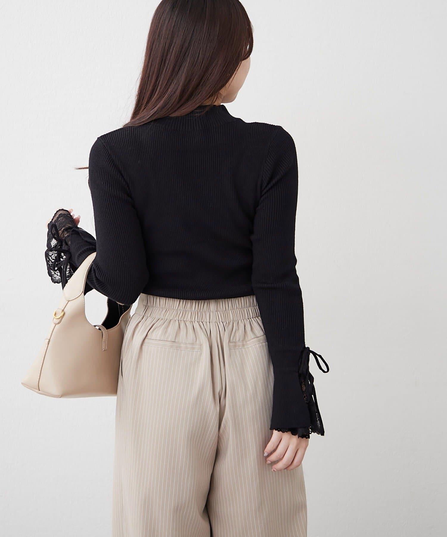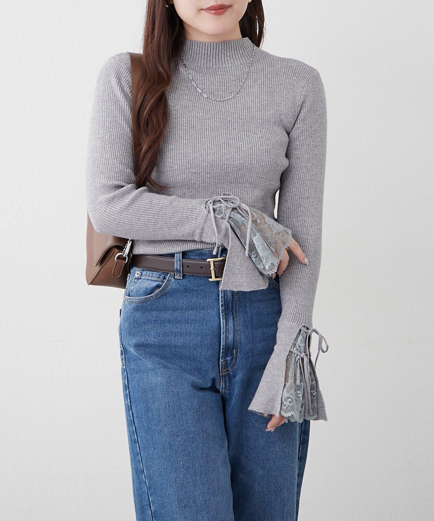 這款針織上衣的袖子上有可愛的蕾絲和絲帶。