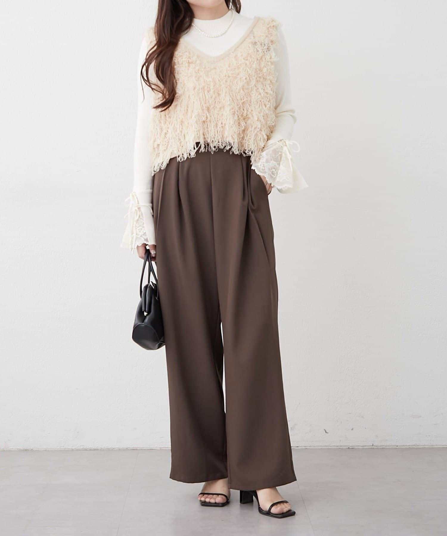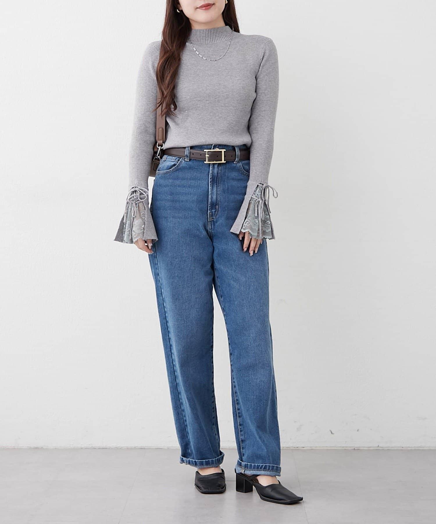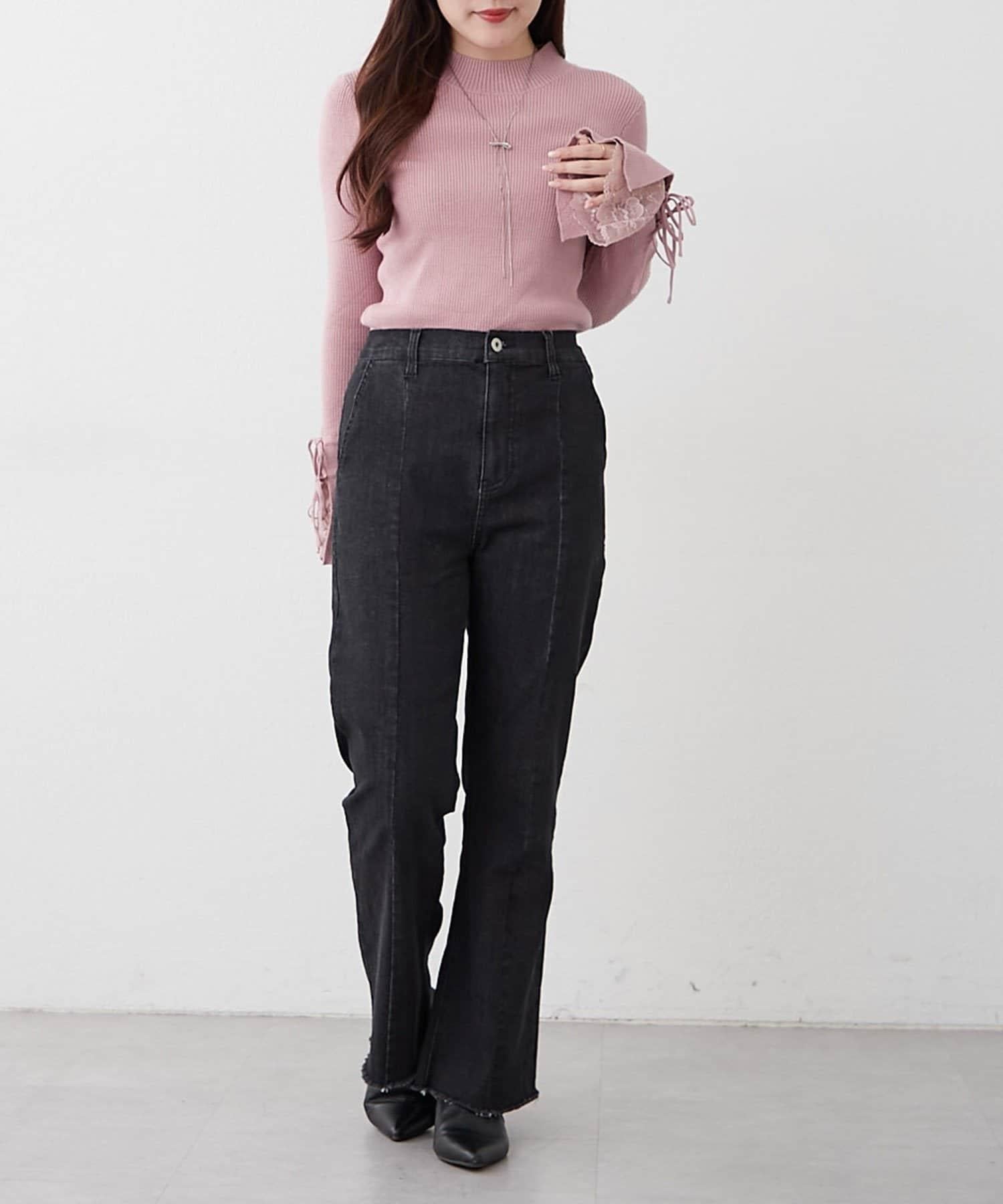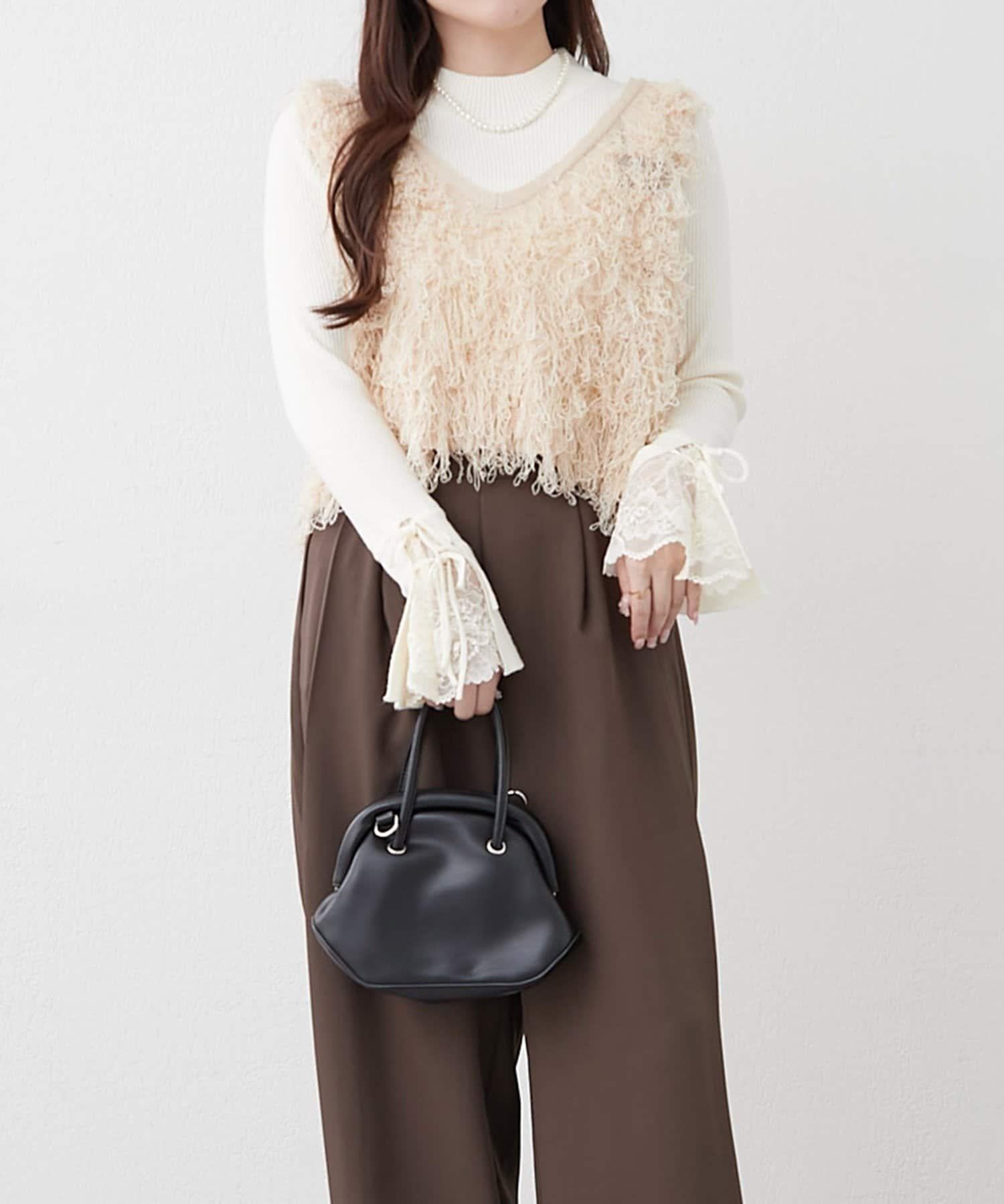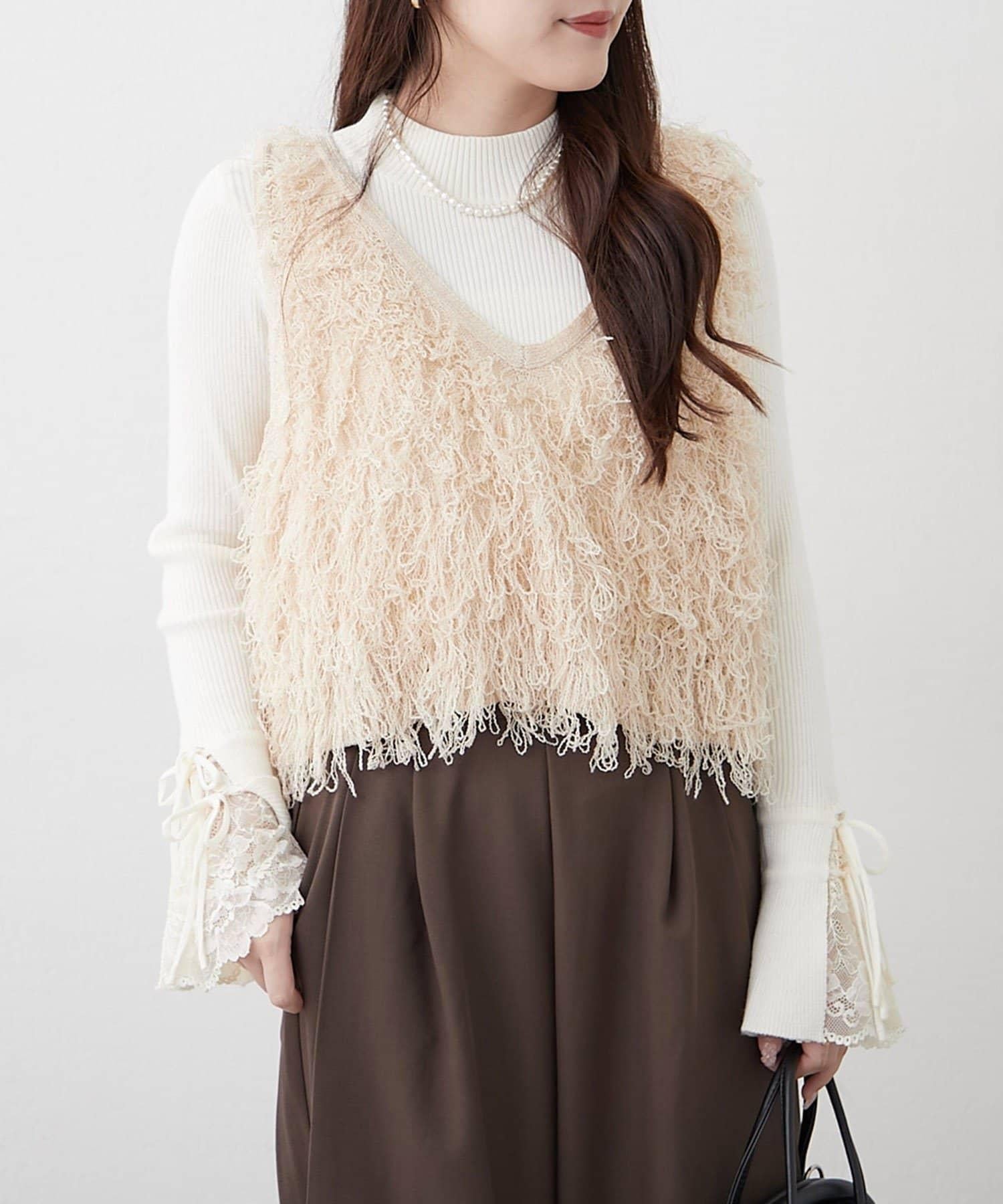 這款針織上衣的袖子上有可愛的蕾絲和絲帶。