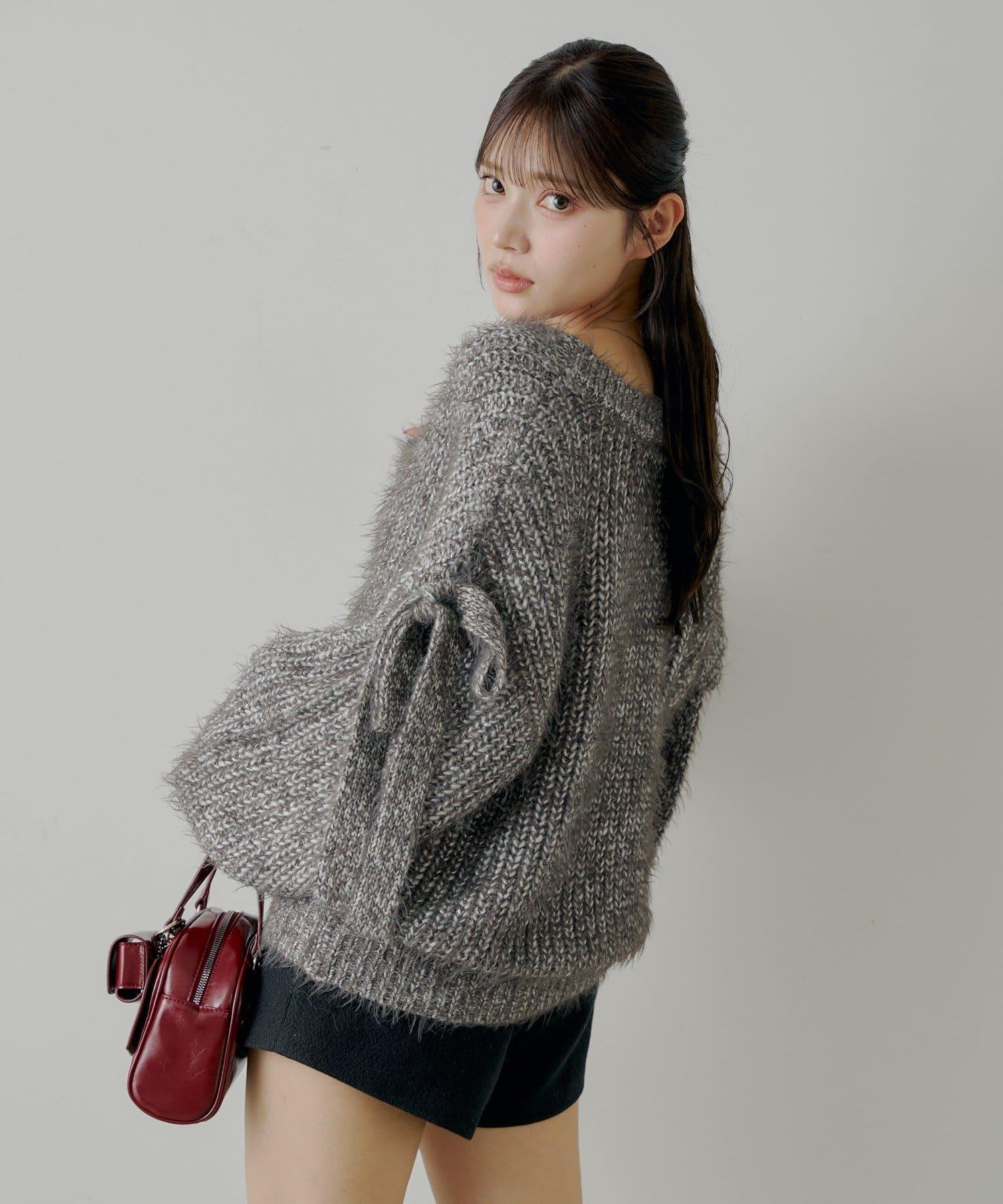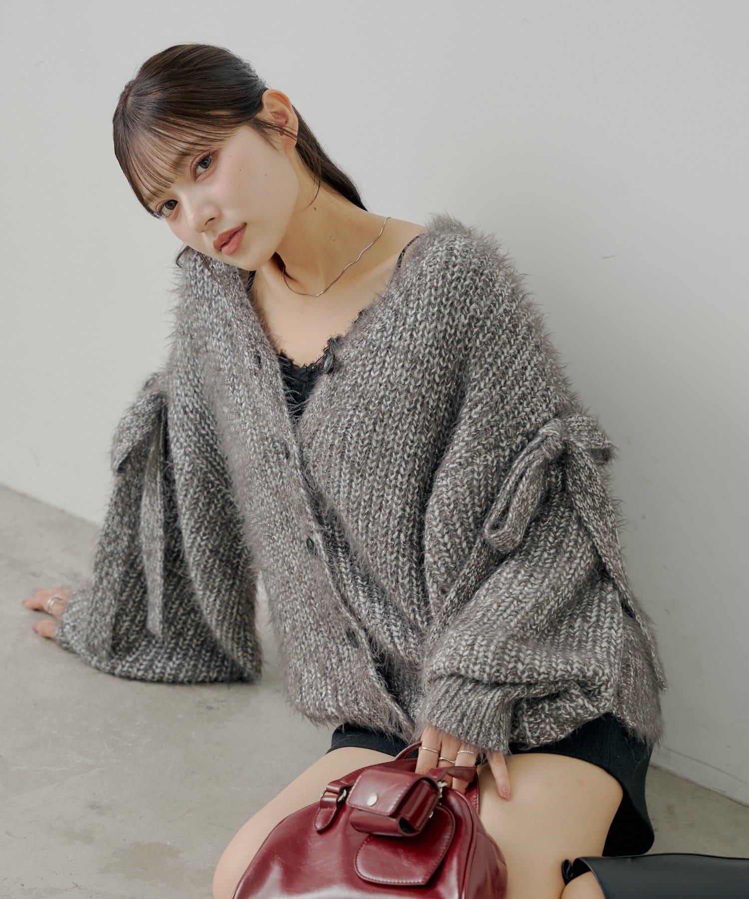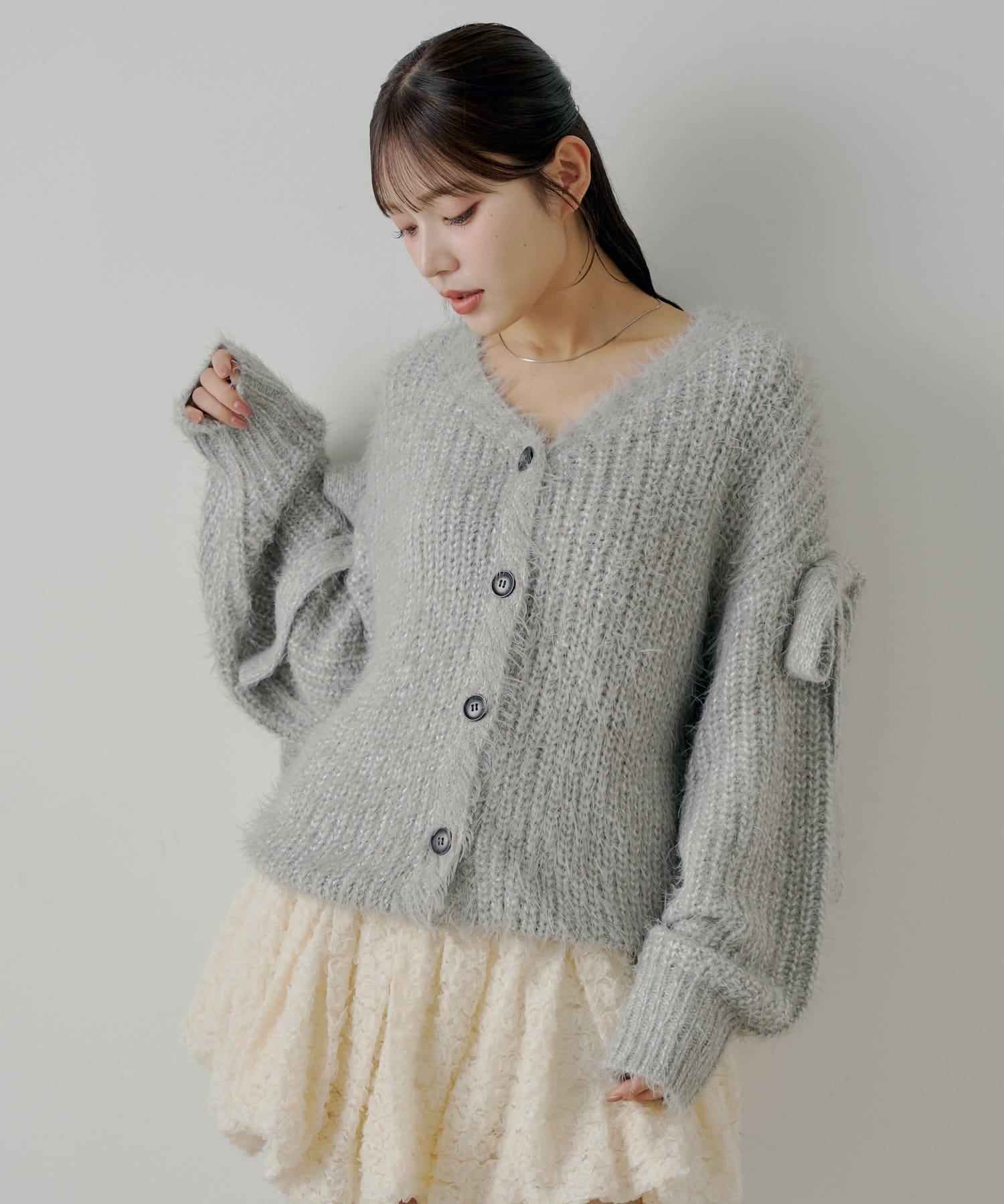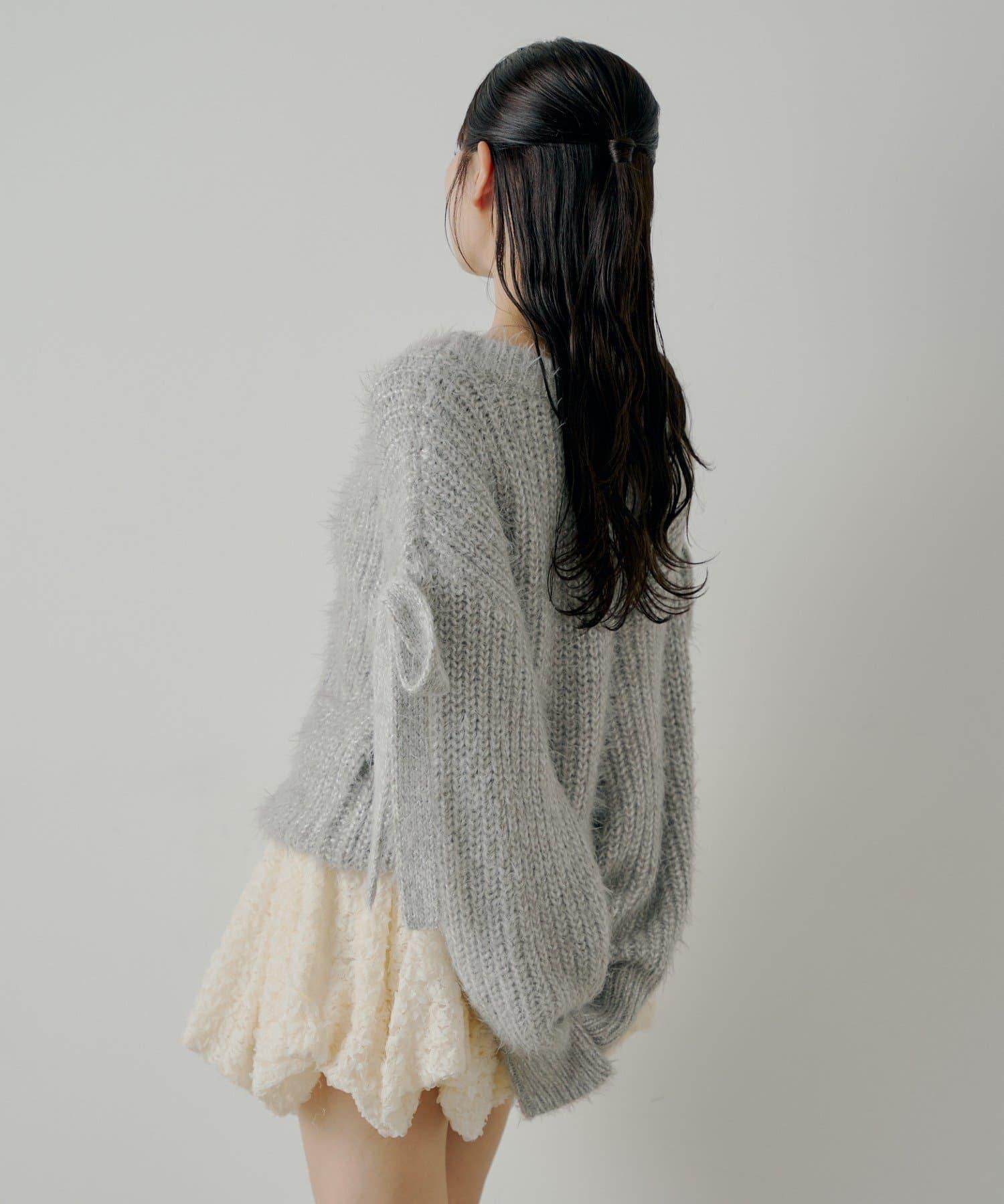 袖部蝴蝶結寬鬆羅紋開衫