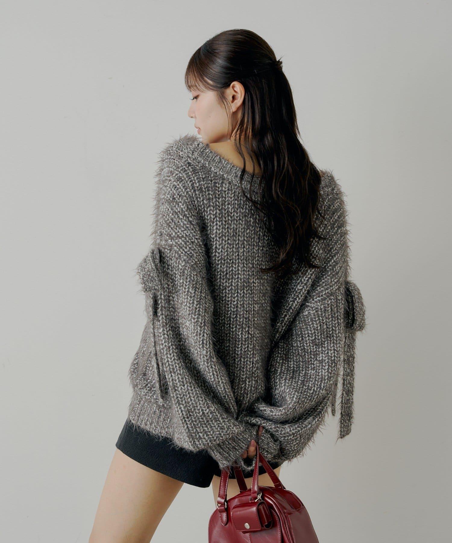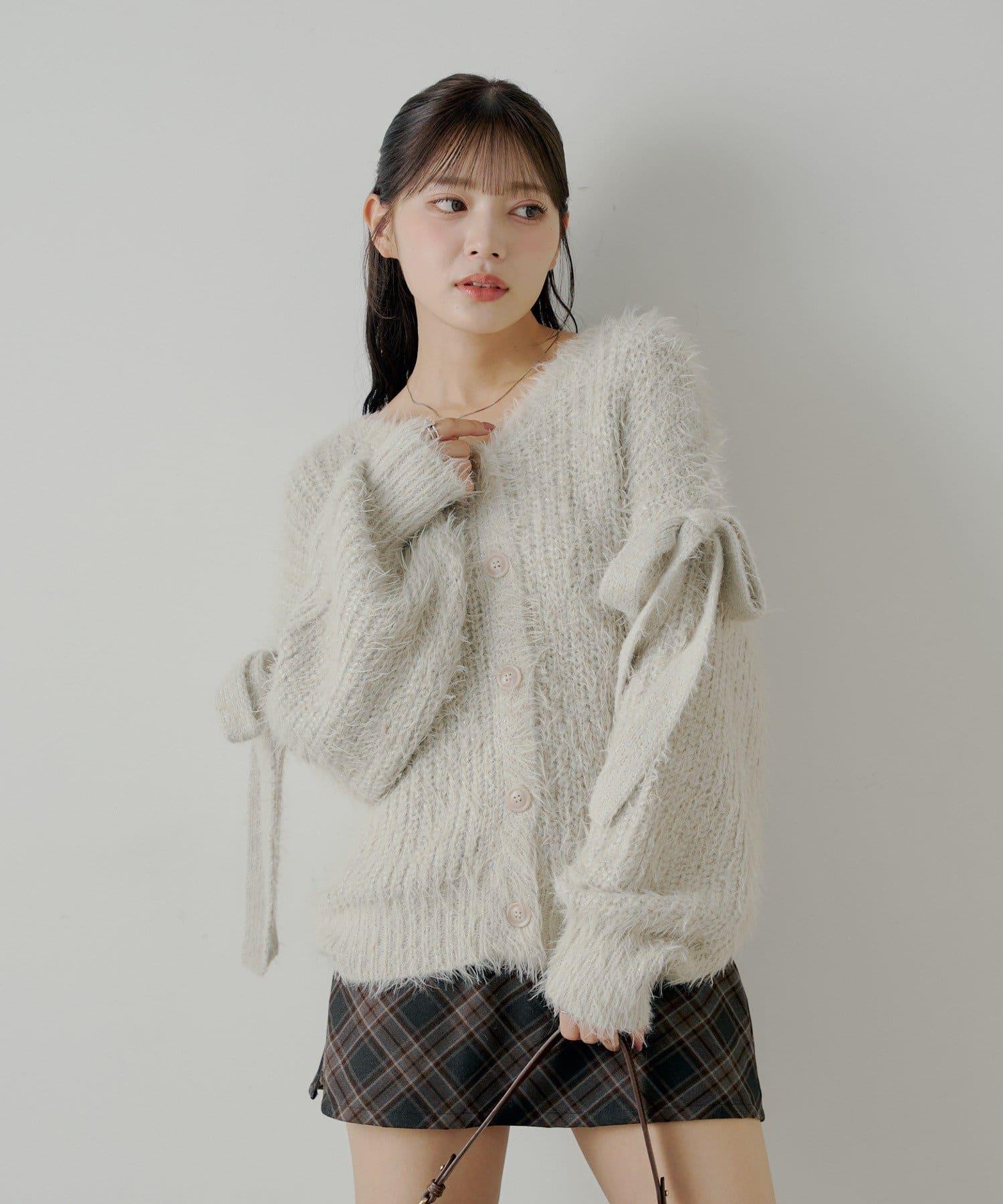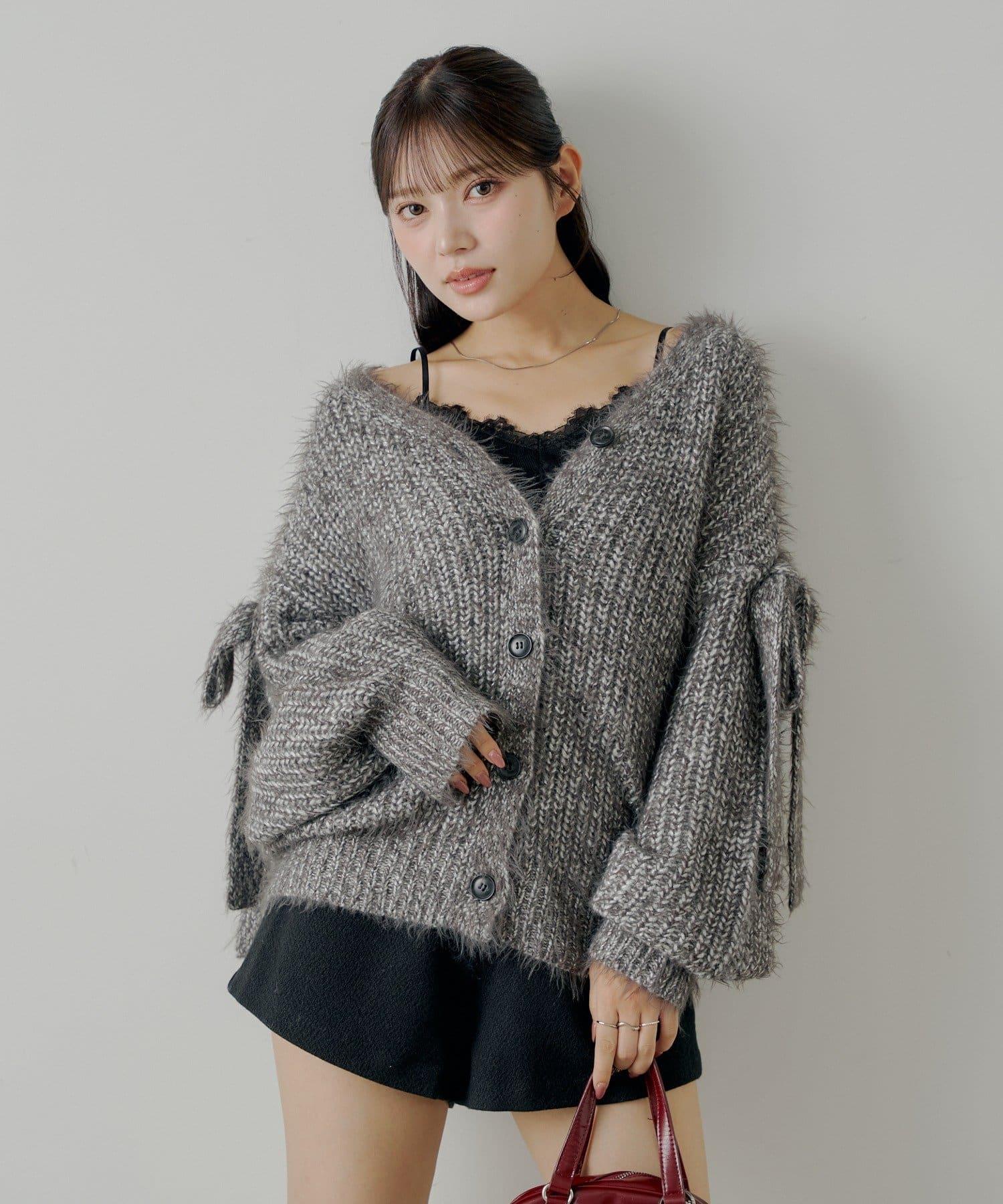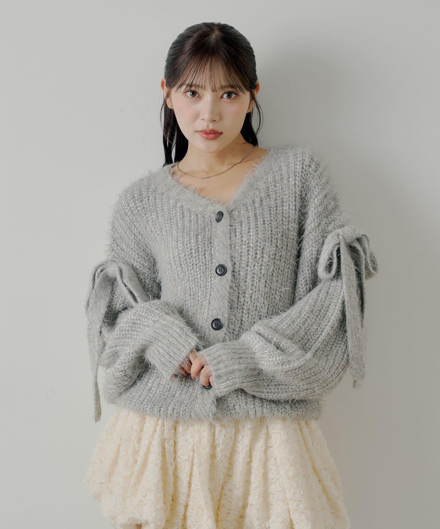 袖部蝴蝶結寬鬆羅紋開衫