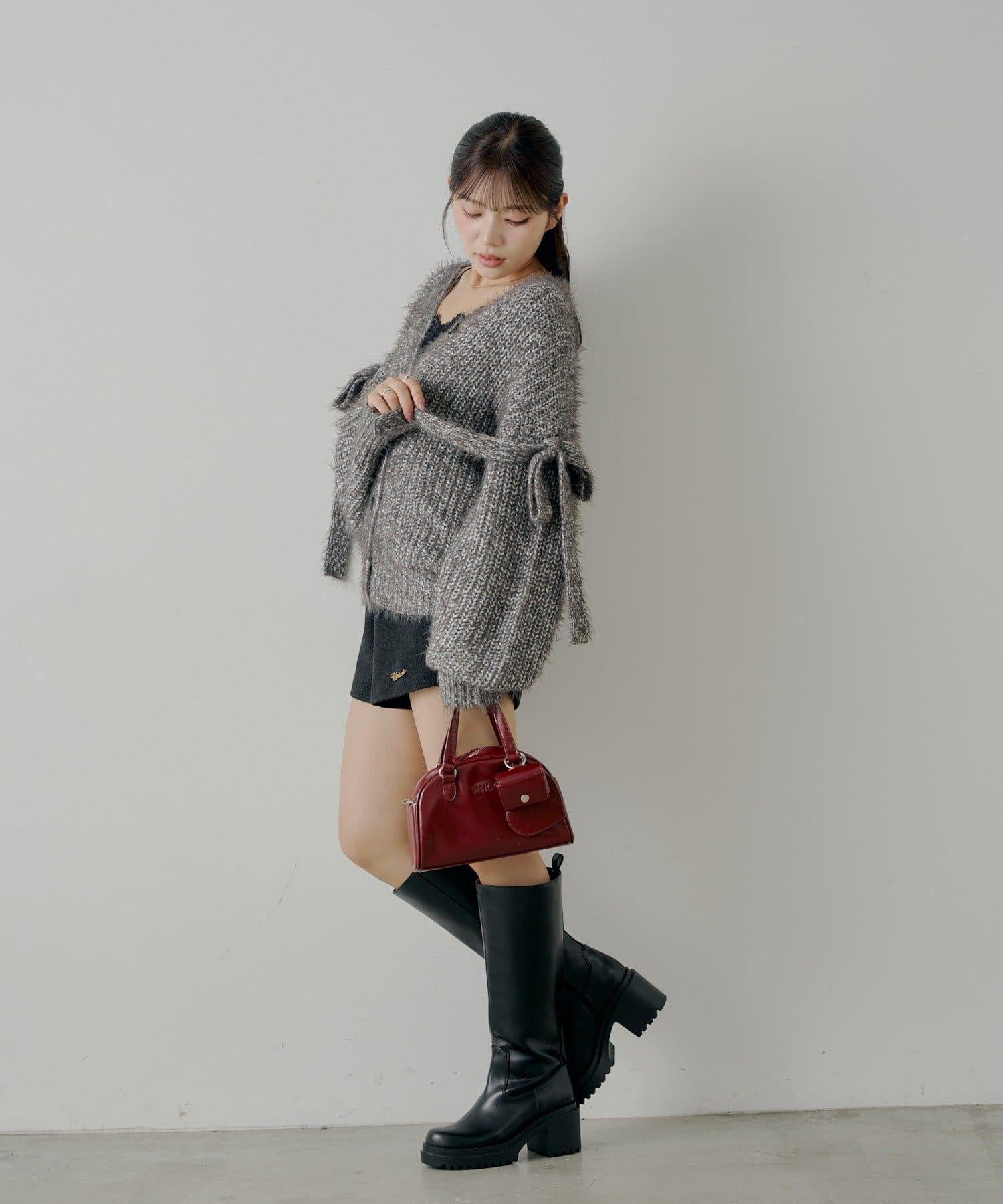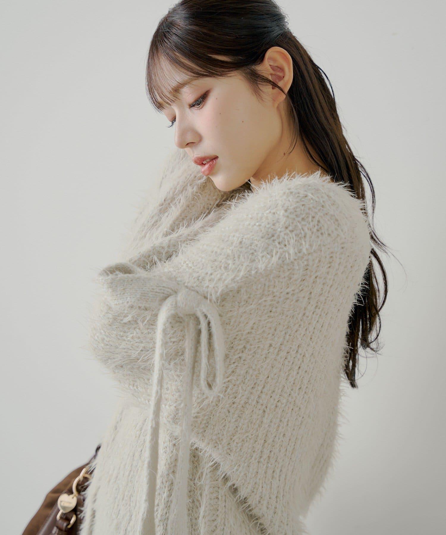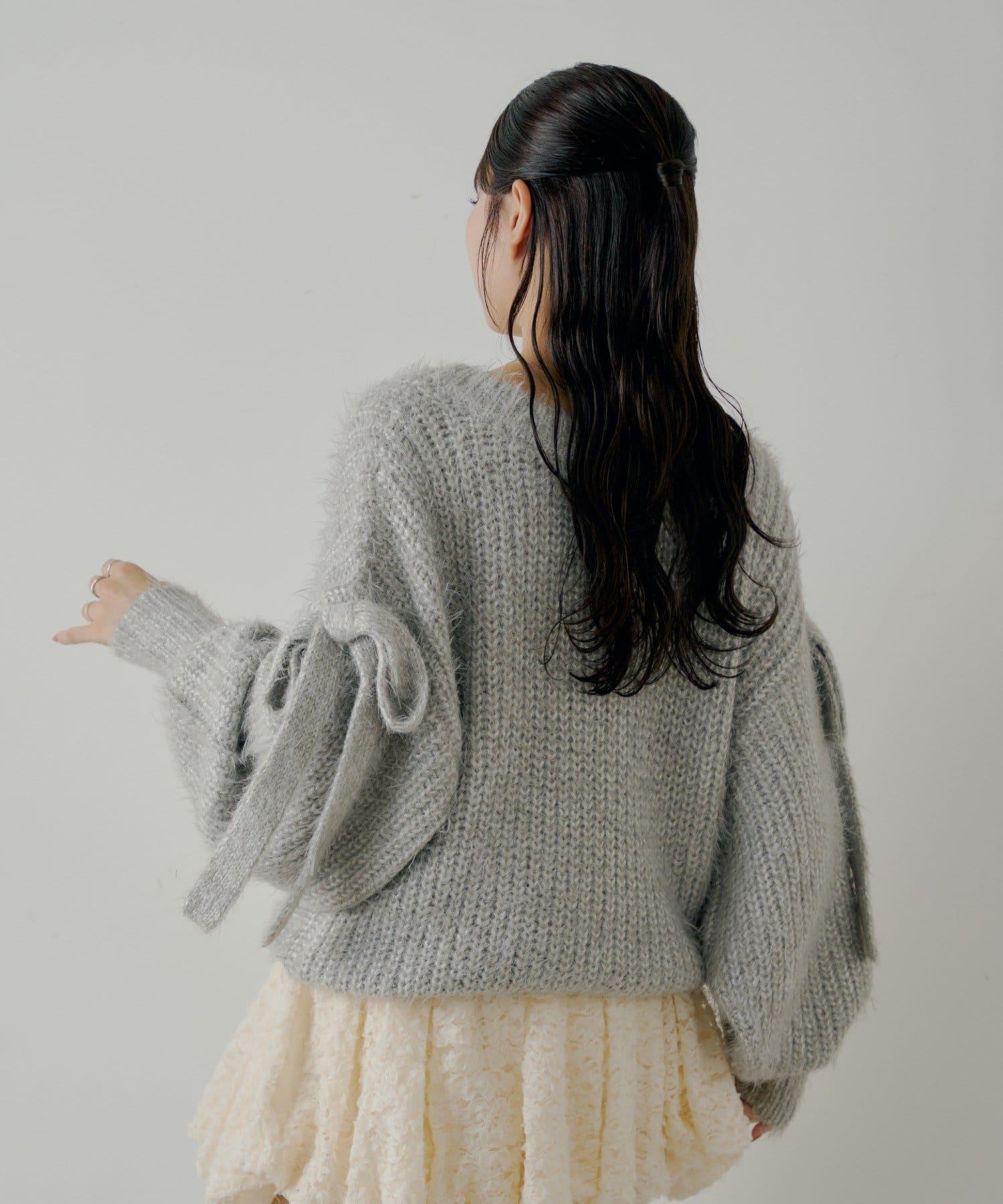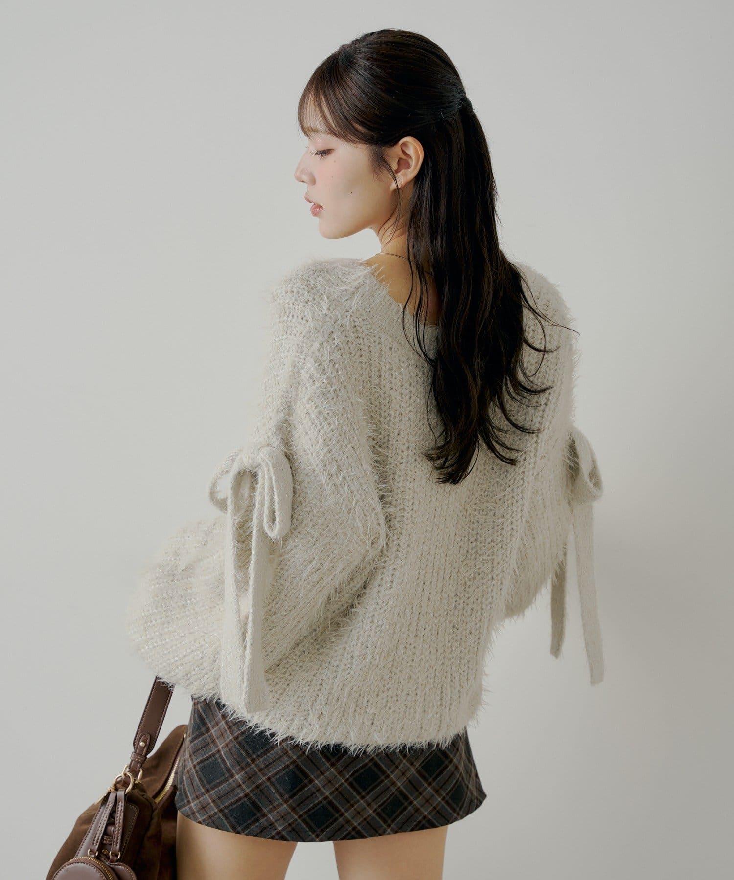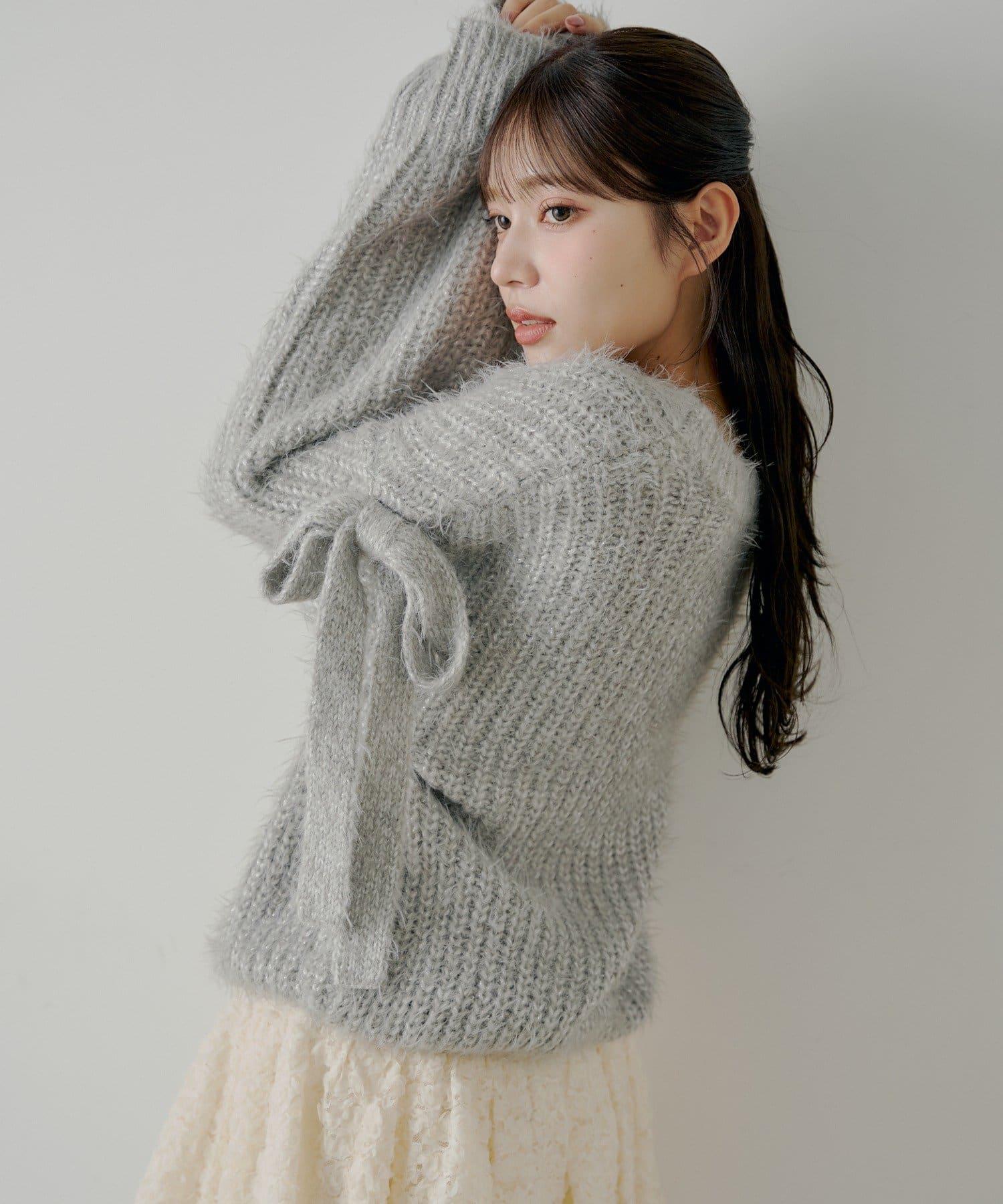 袖部蝴蝶結寬鬆羅紋開衫