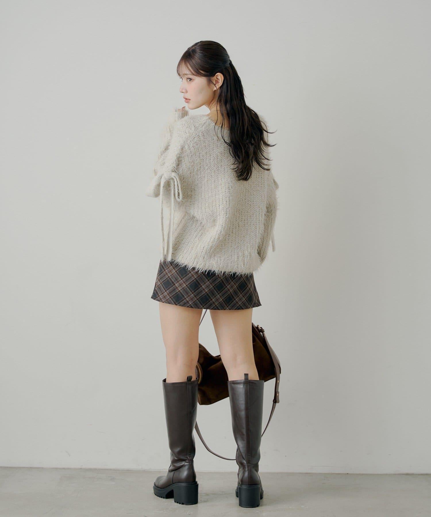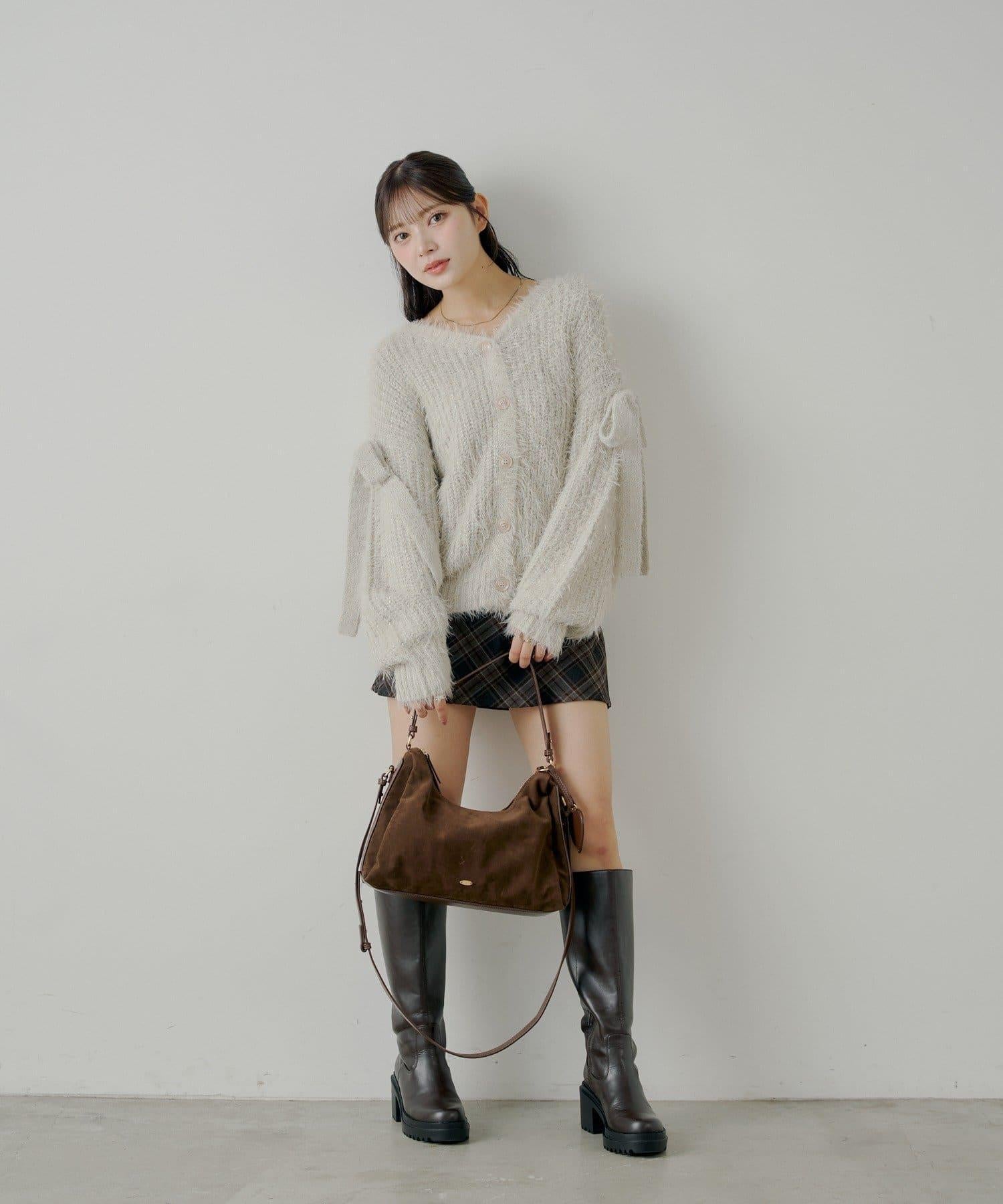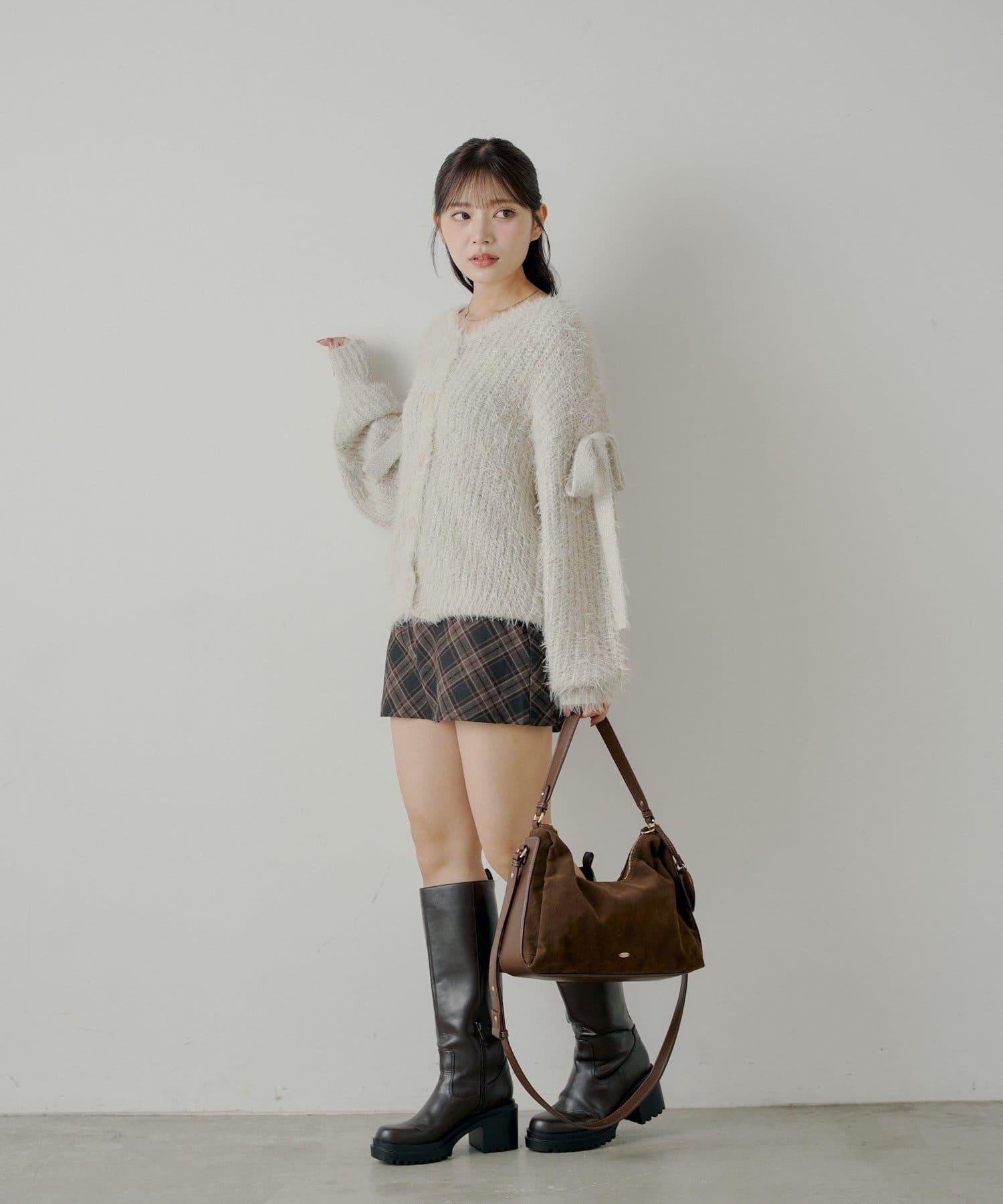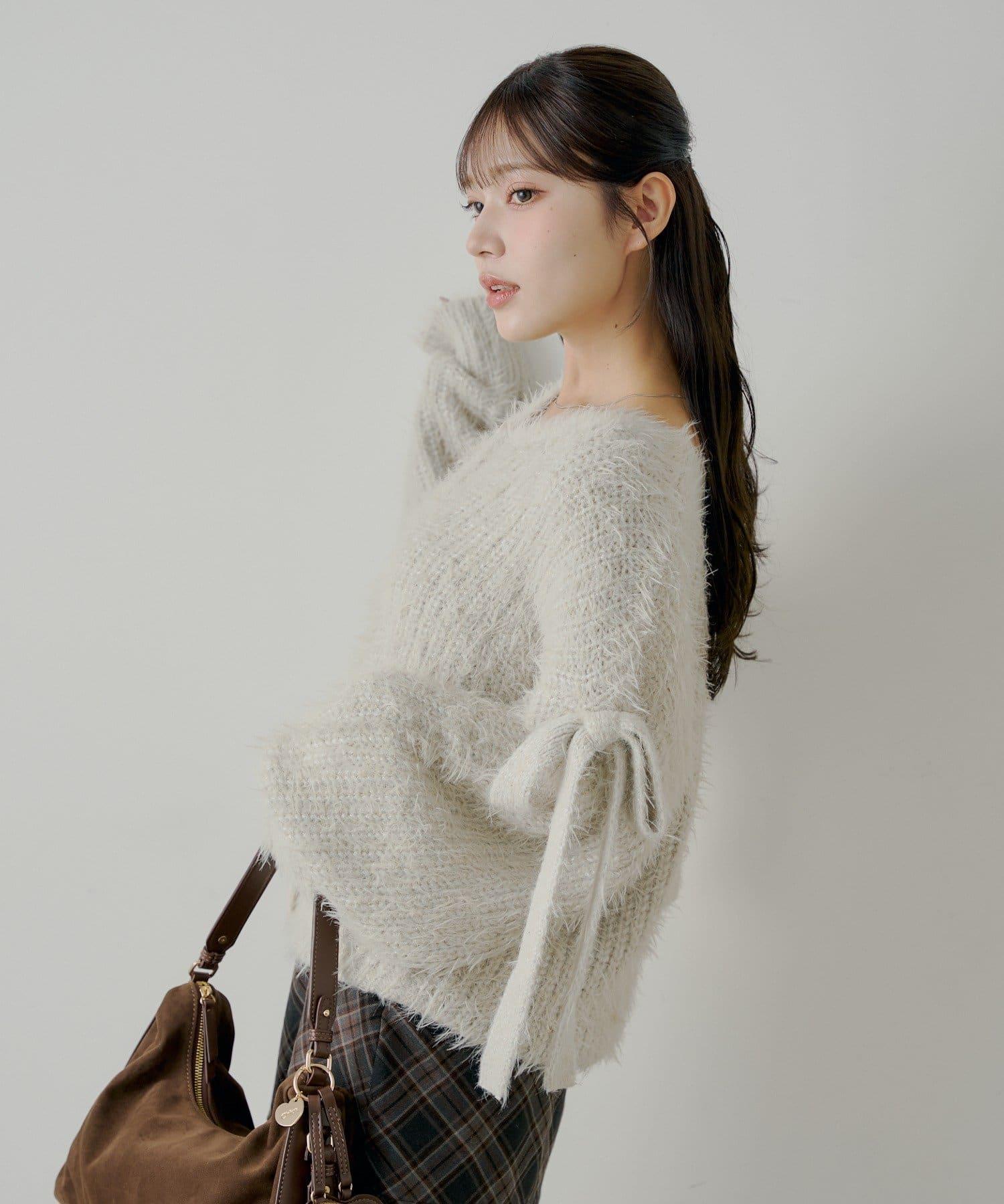 袖部蝴蝶結寬鬆羅紋開衫