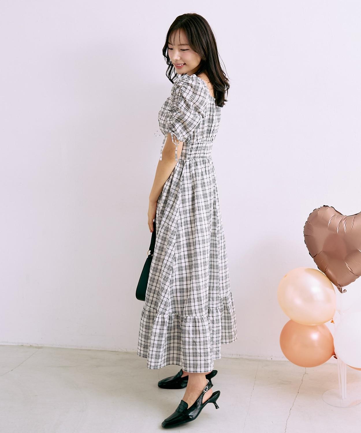 放下袖子的束邊和肩部的絲帶,可以露肩穿著,是備受矚目的主流連身裙。 建議搭配漂亮的高跟鞋和涼鞋!搭配厚底運動鞋也是一種韓式休閒風◎。