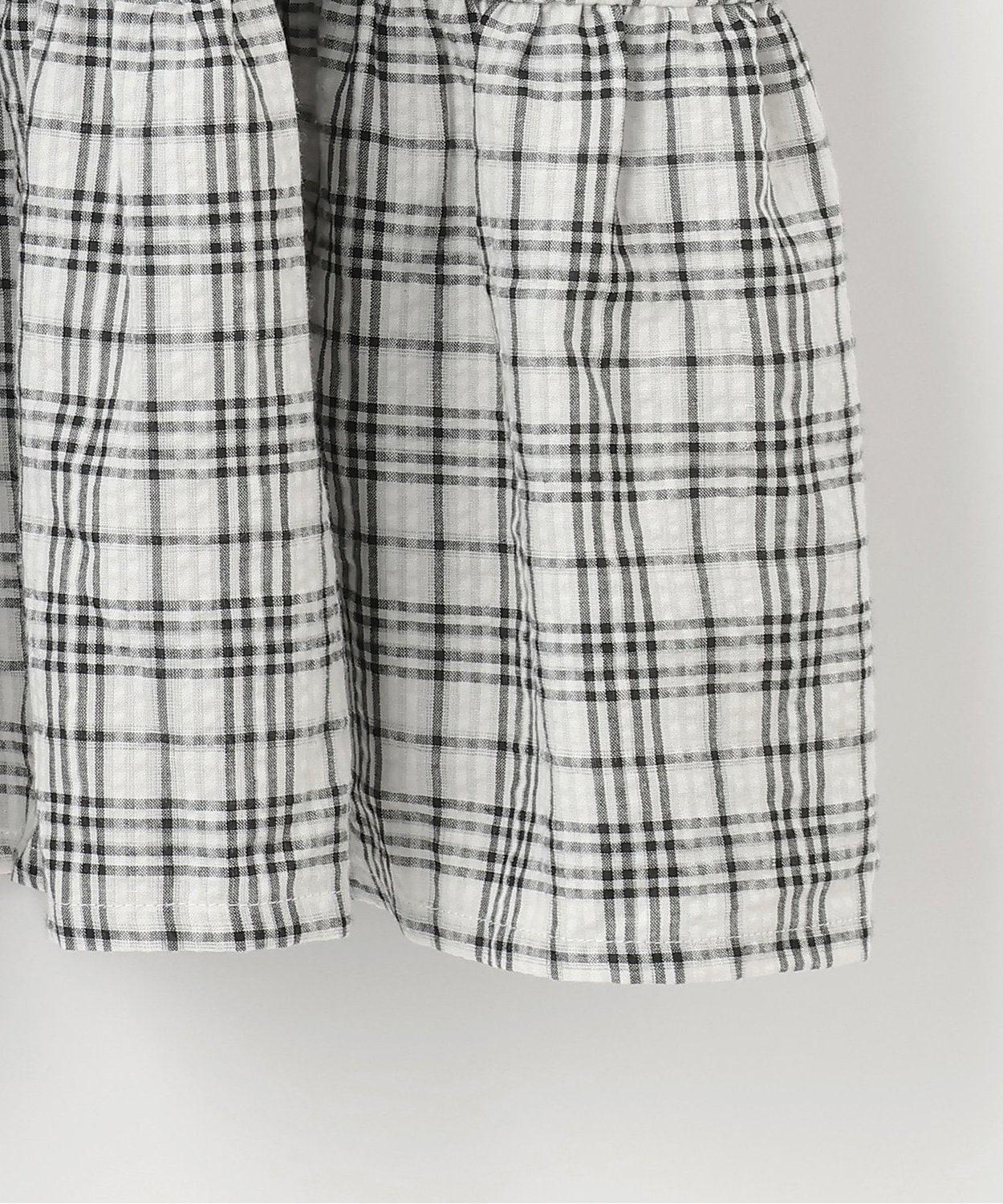 的 束腰細節 設計利落,腰部位置設置較高,也是有望提升氣質的單品! 採用了表面變化的平紋和格紋面料,成為可以輕鬆穿著的柔軟面料感。