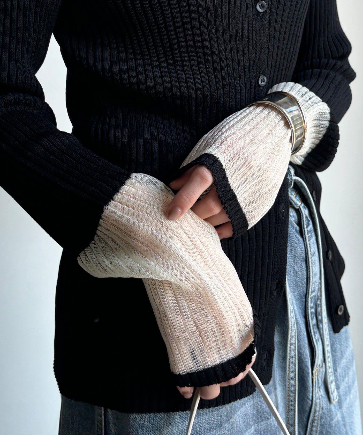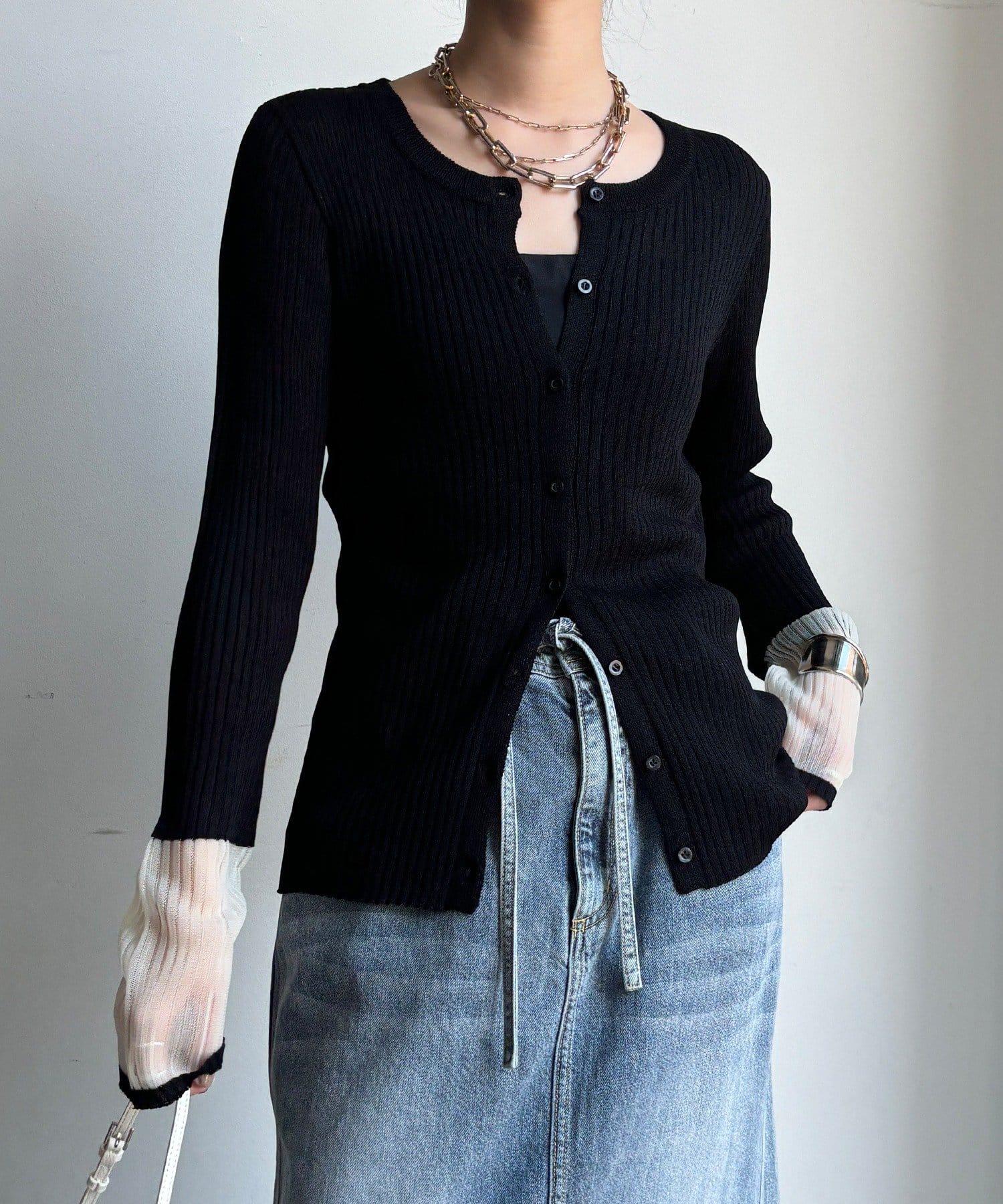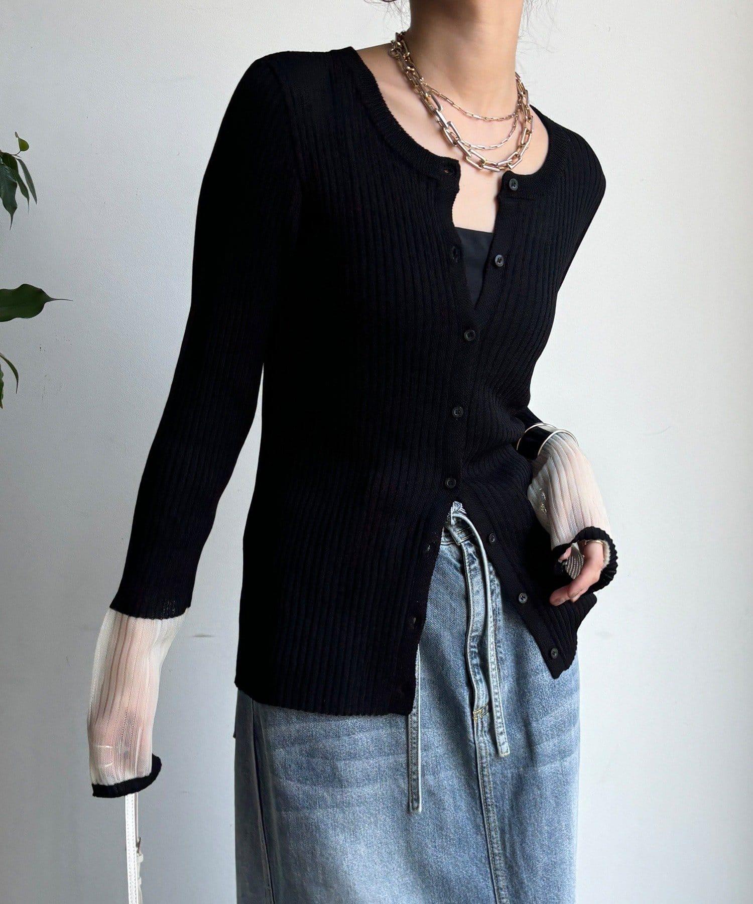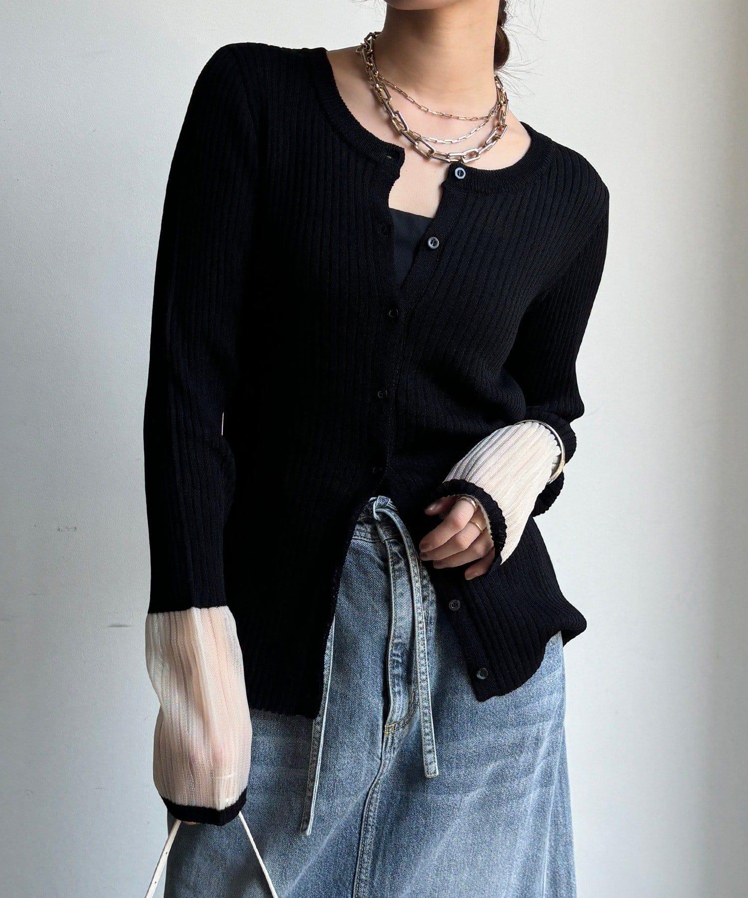袖部透紗拼接羅紋針織開衫