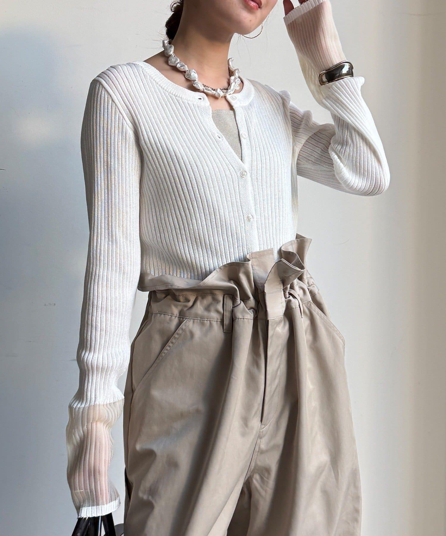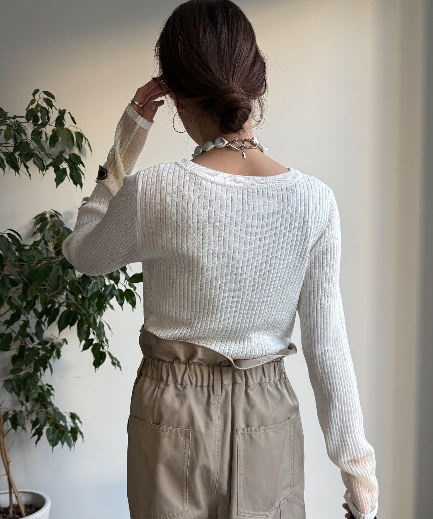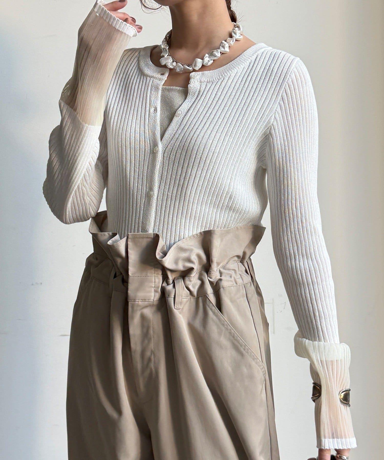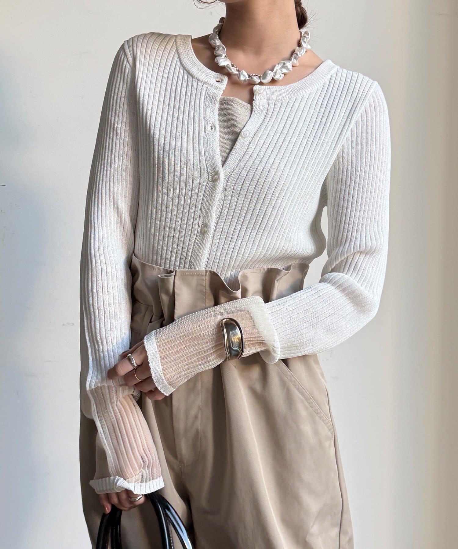 袖部透紗拼接羅紋針織開衫