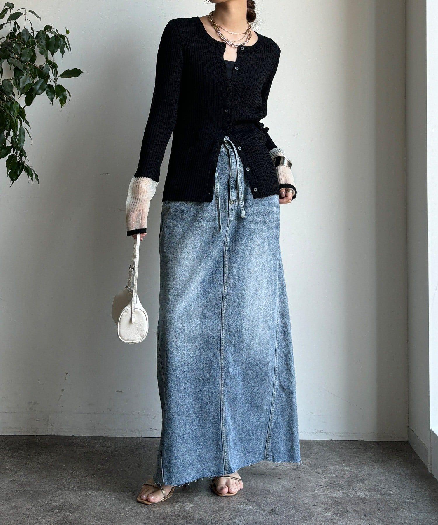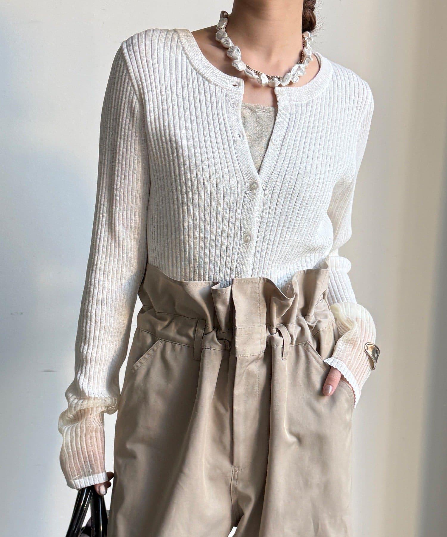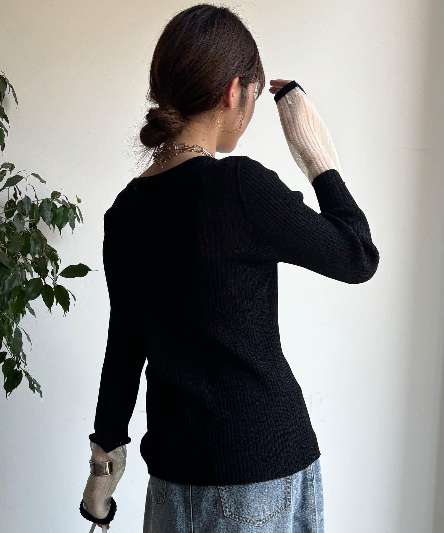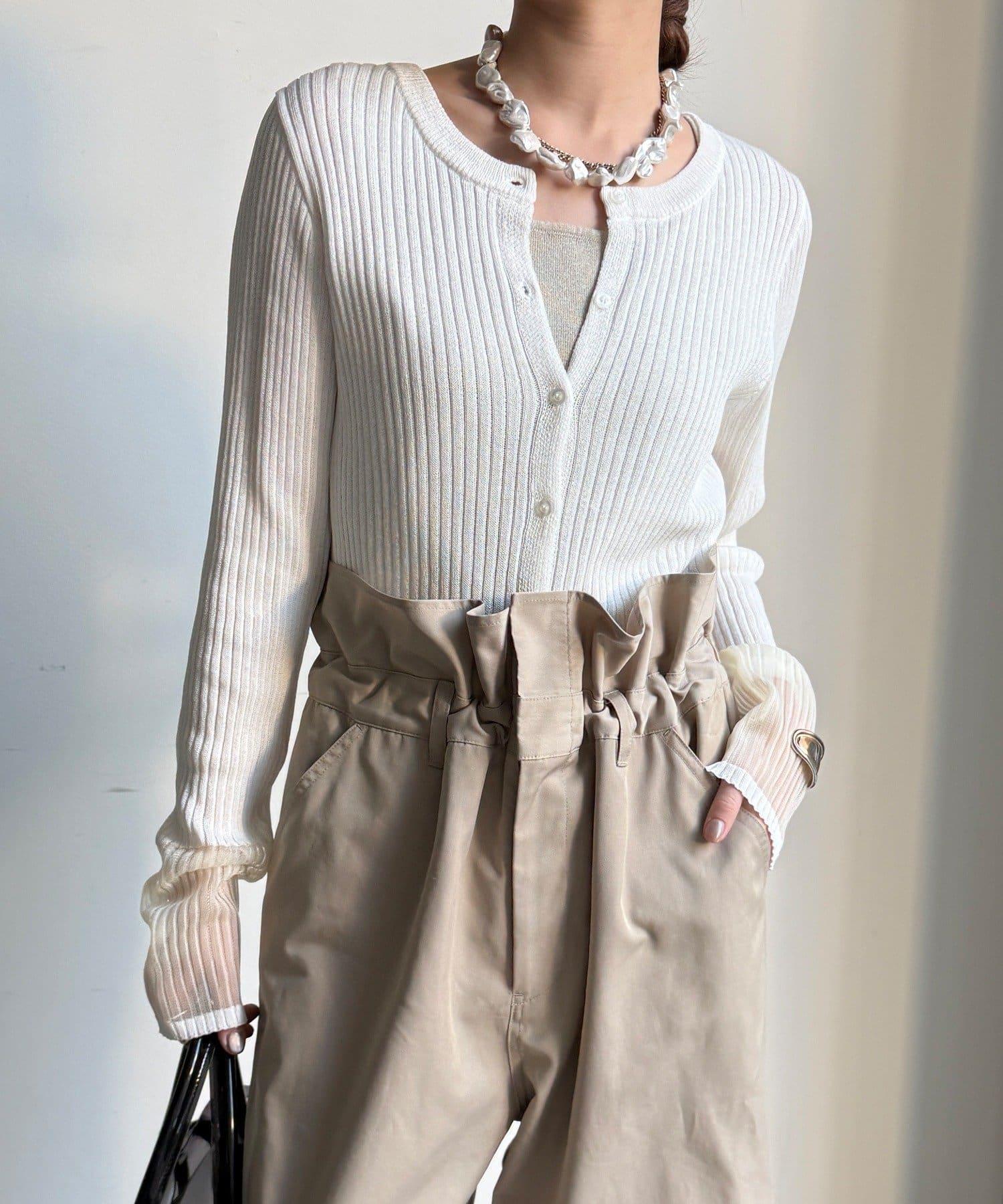 袖部透紗拼接羅紋針織開衫