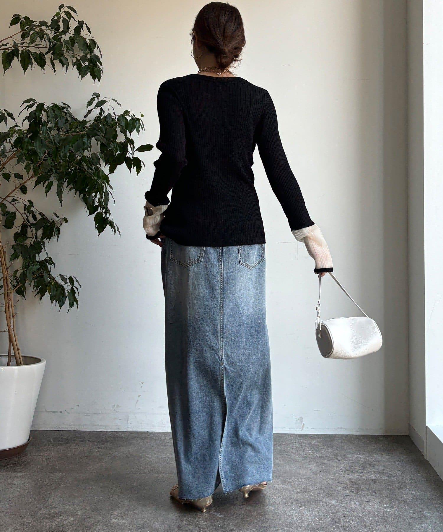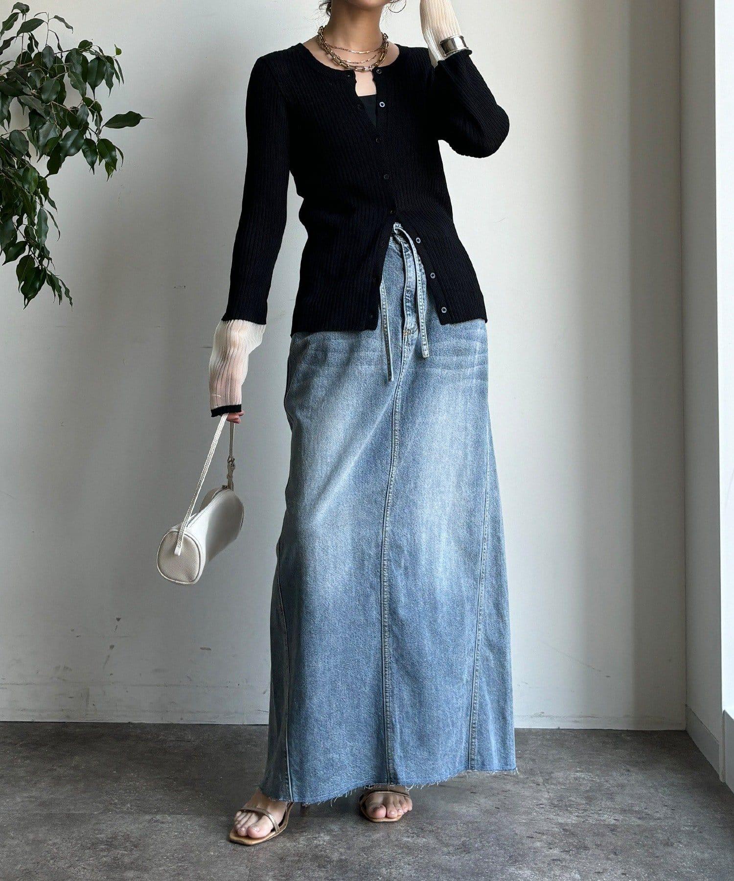 羅紋豎線使整個衣身顯得圓潤修身,大膽地將👍下面的幾顆紐扣打開穿著、