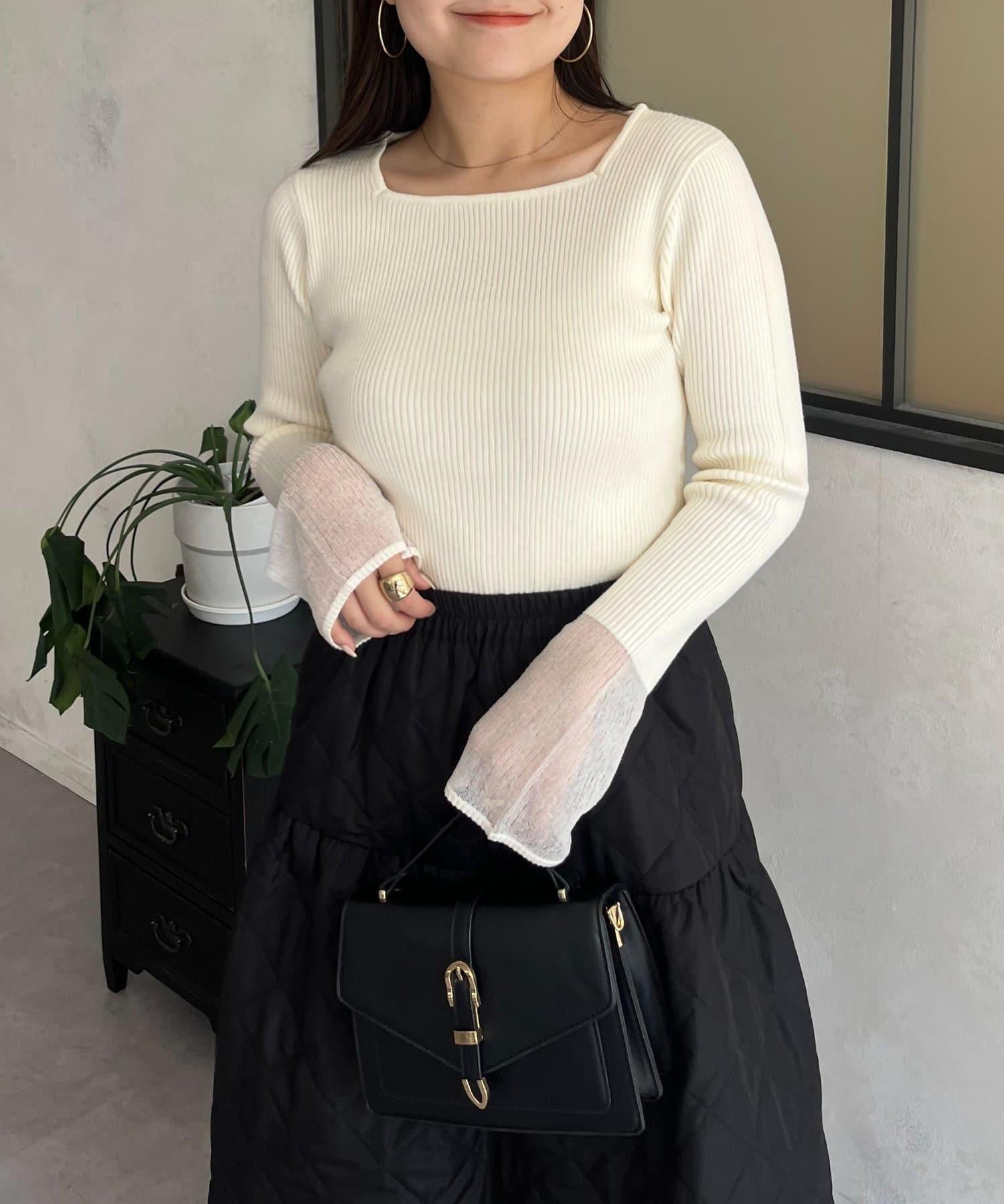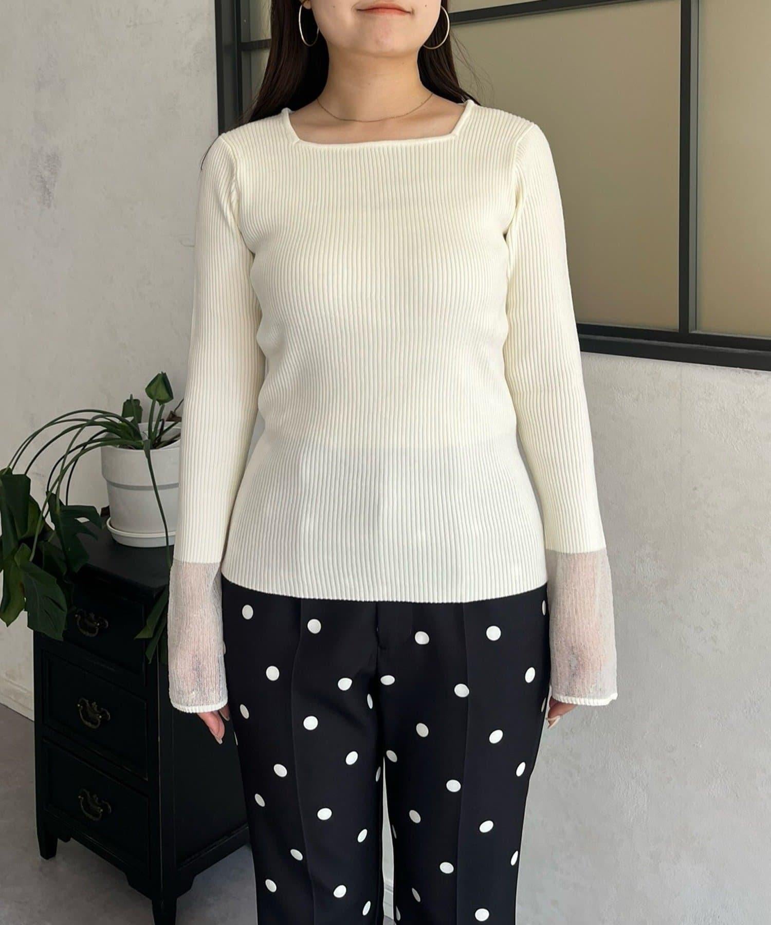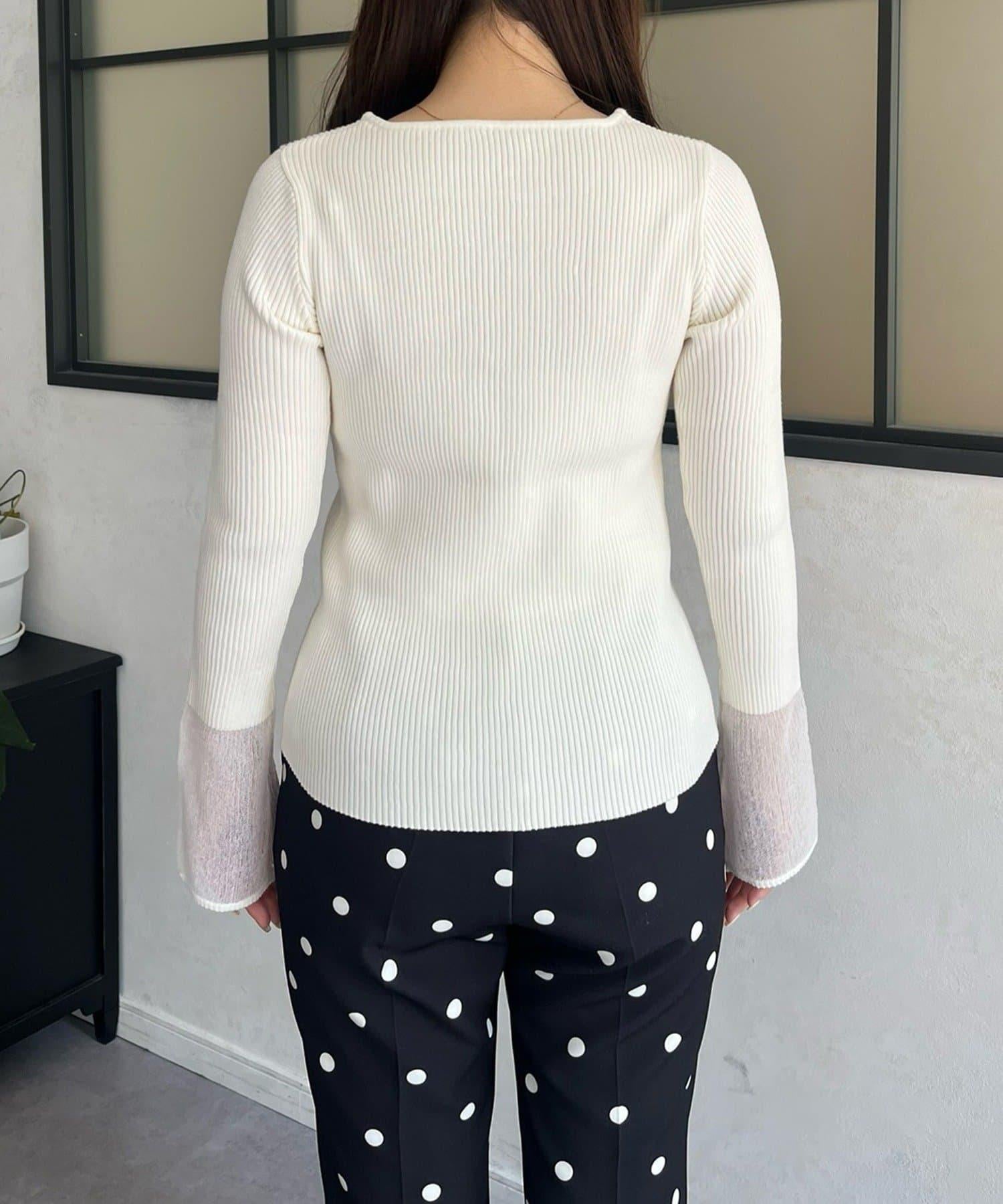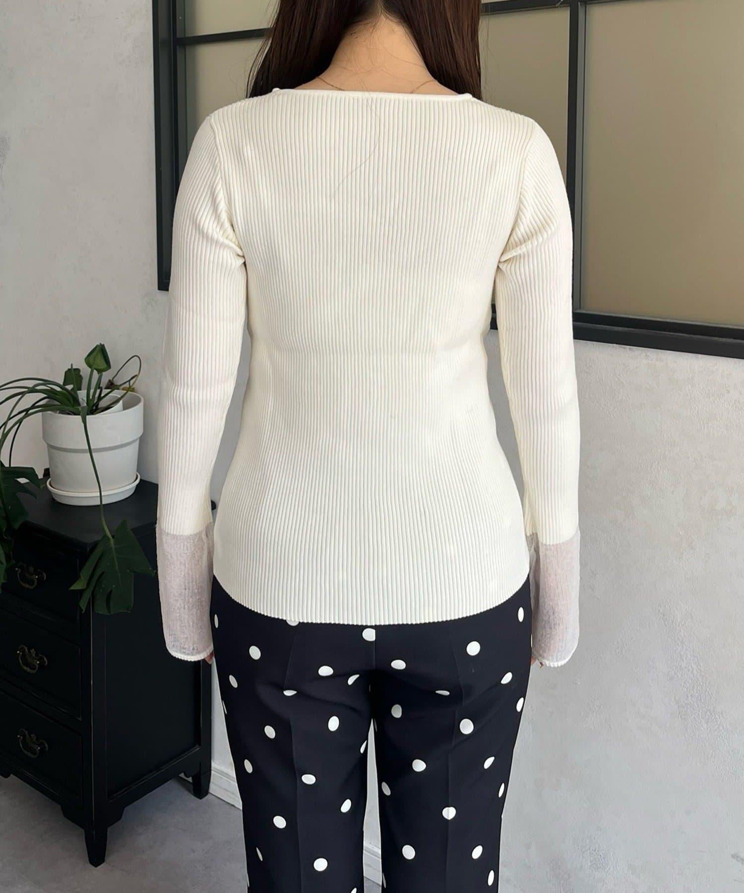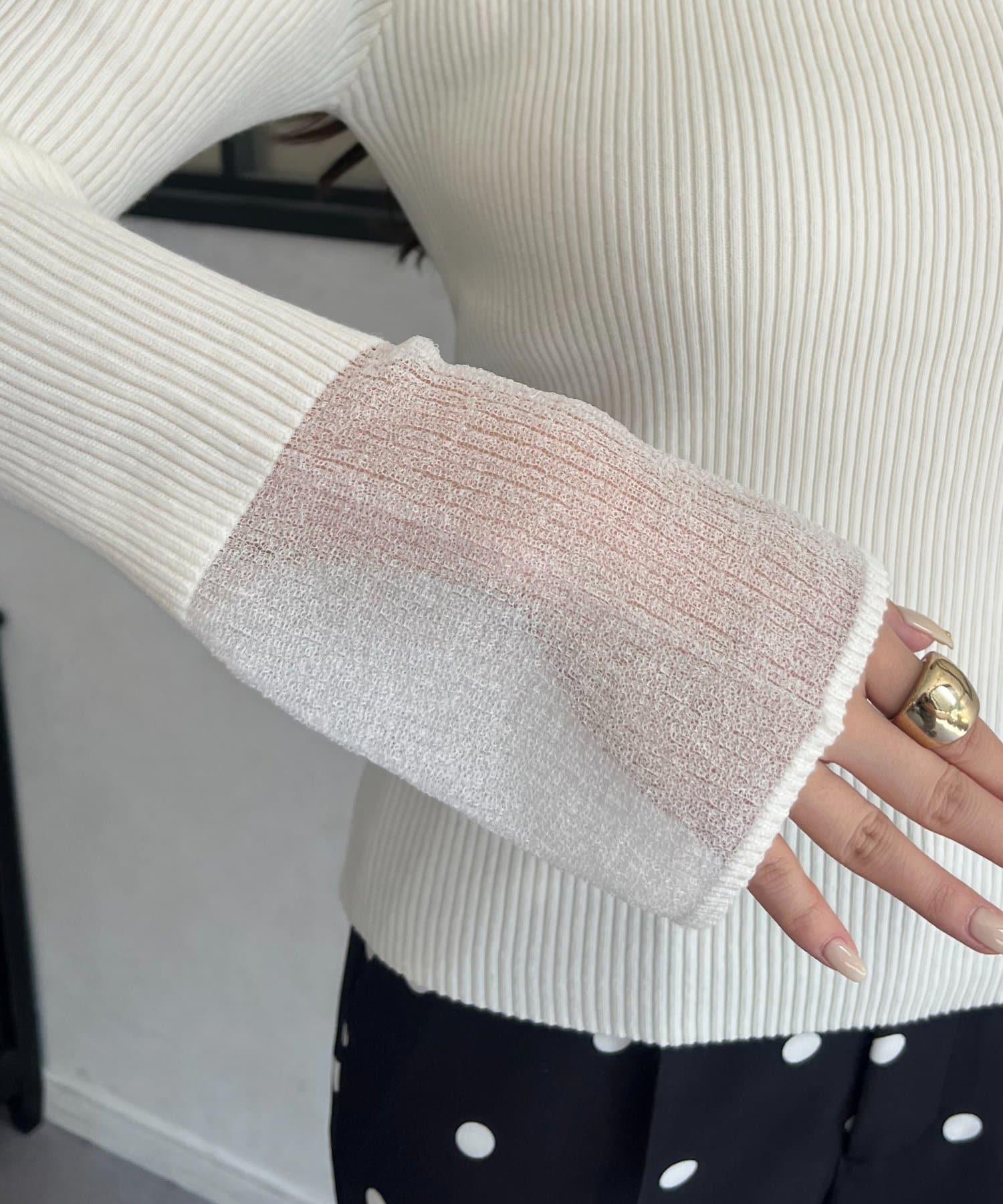 袖部透視方領羅紋針織衫