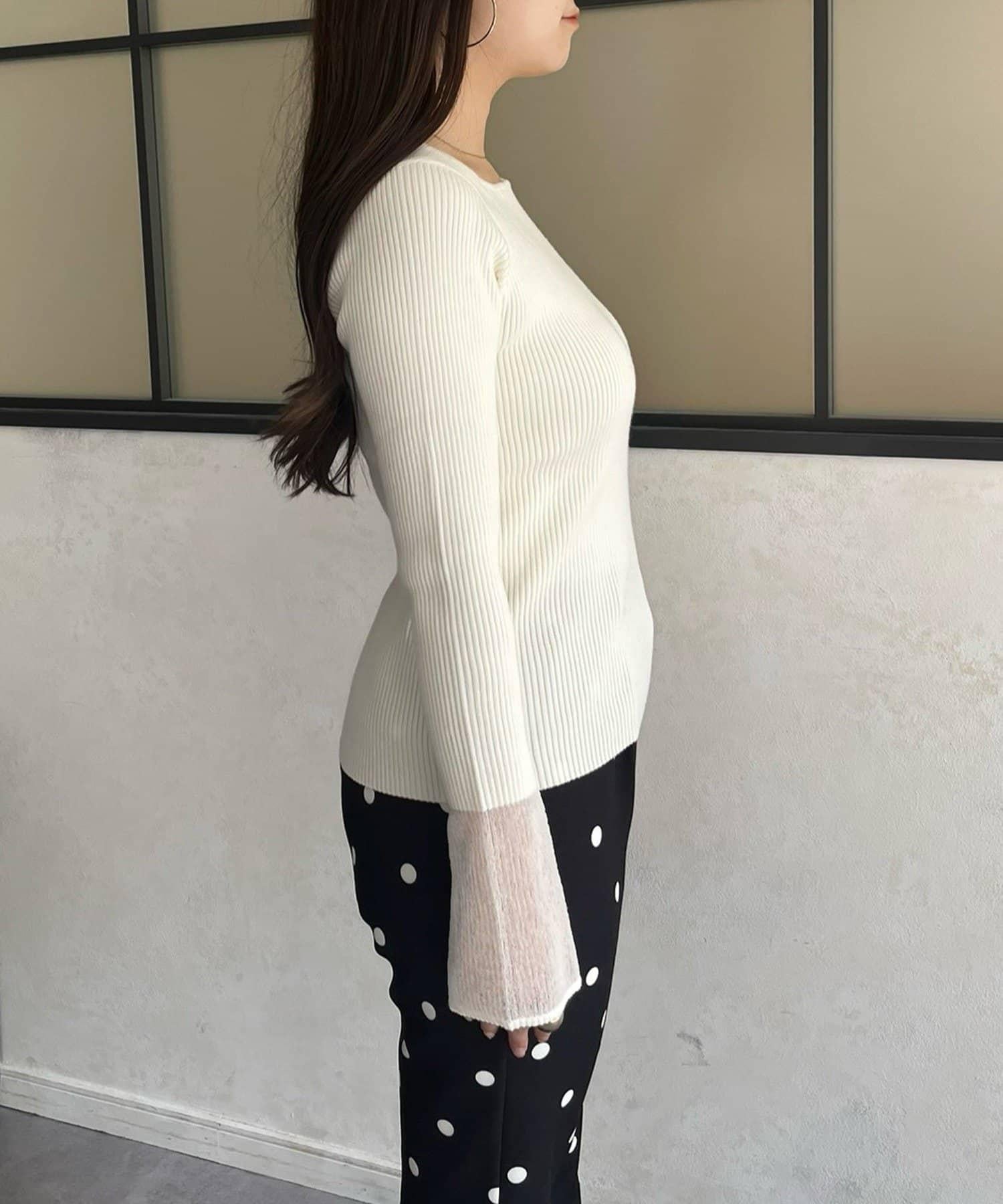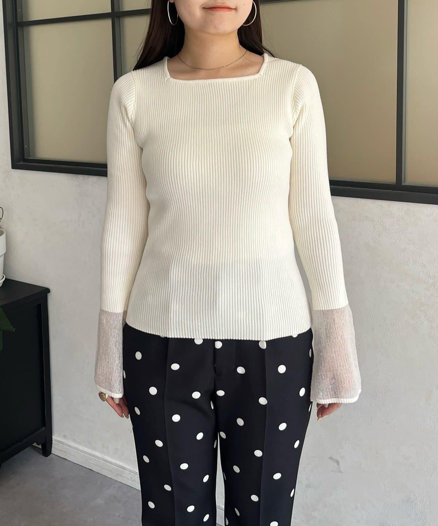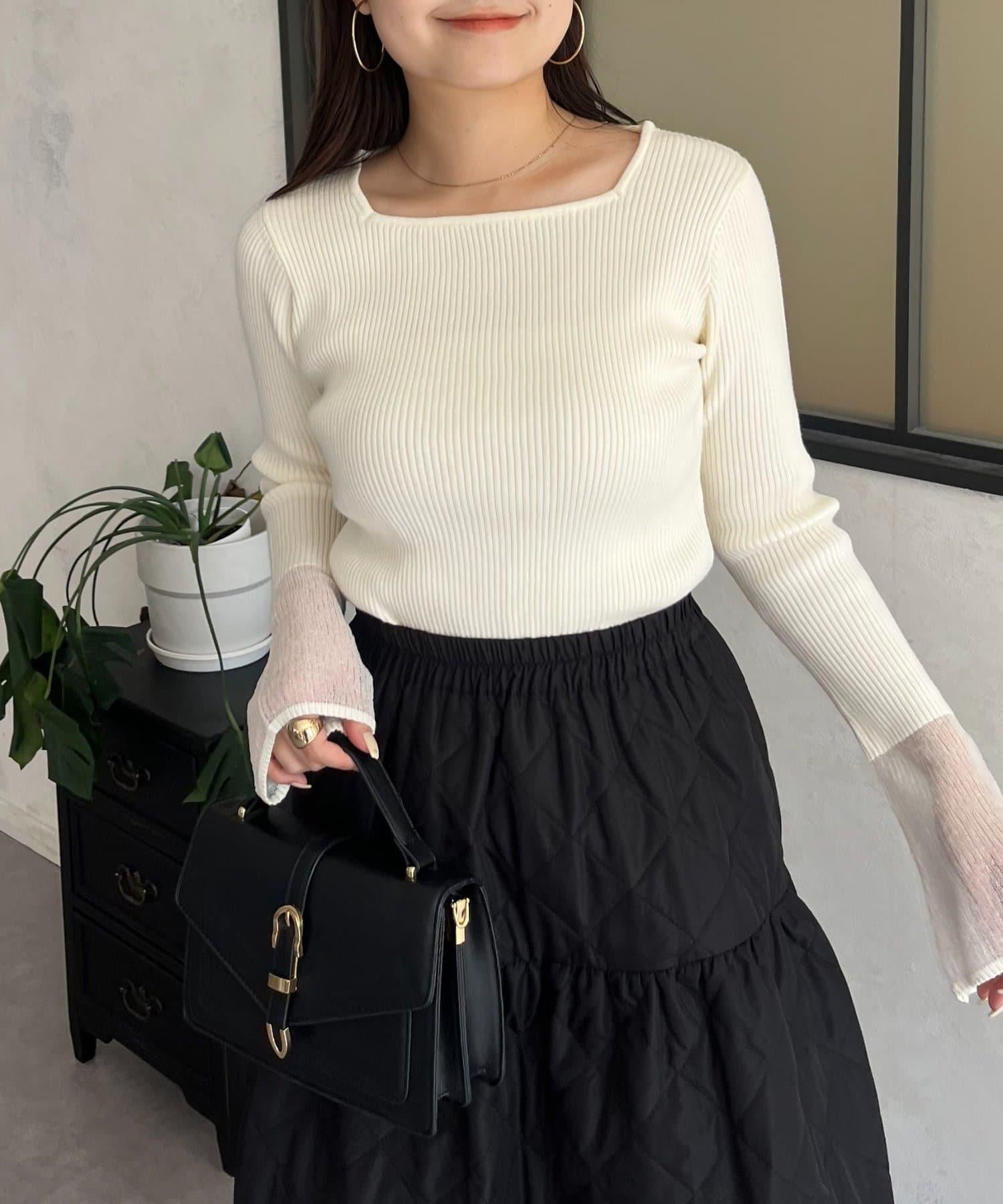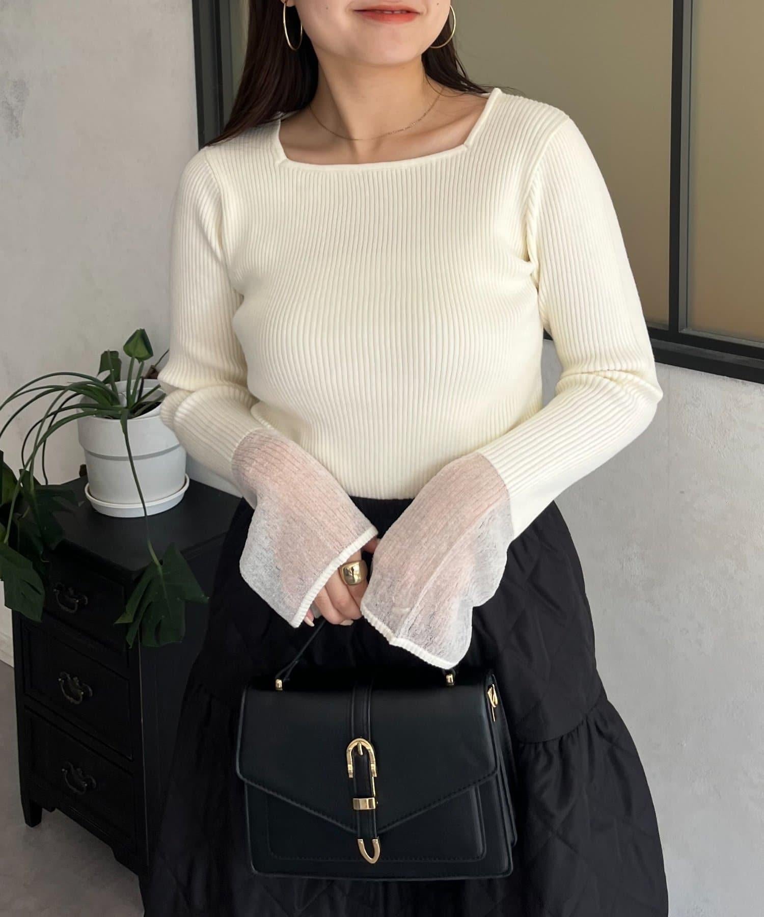 袖部透視方領羅紋針織衫