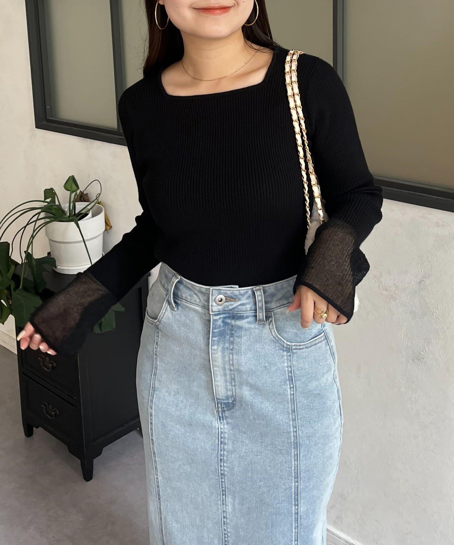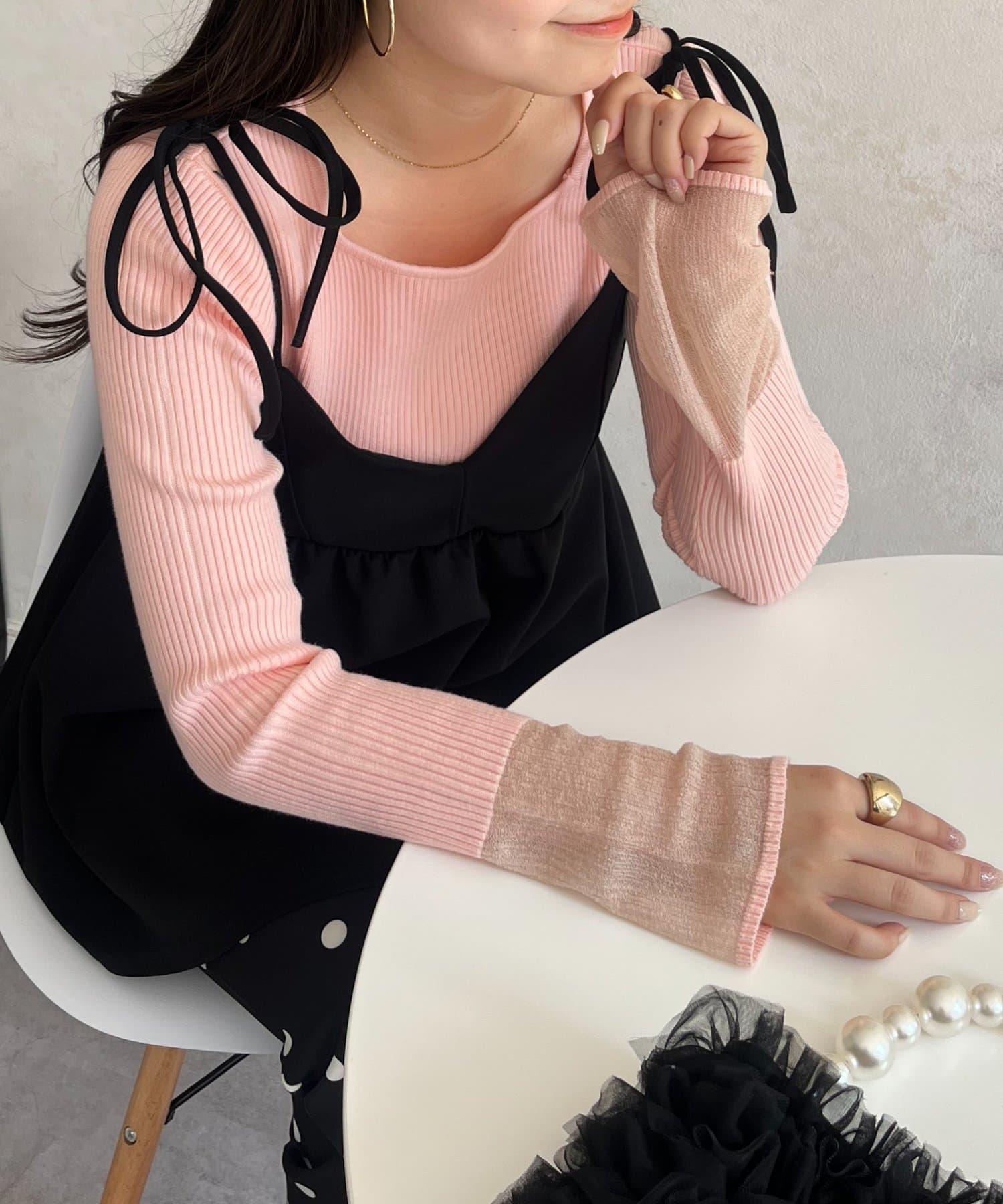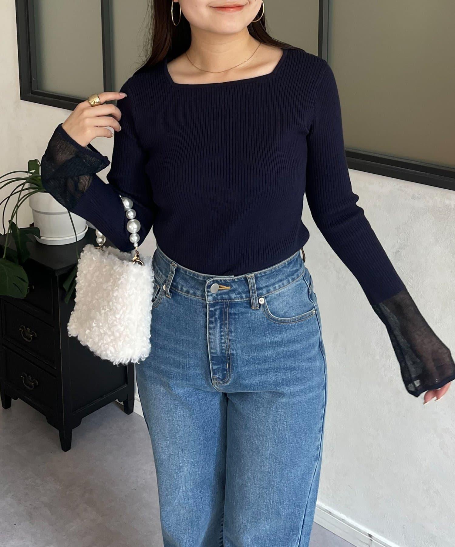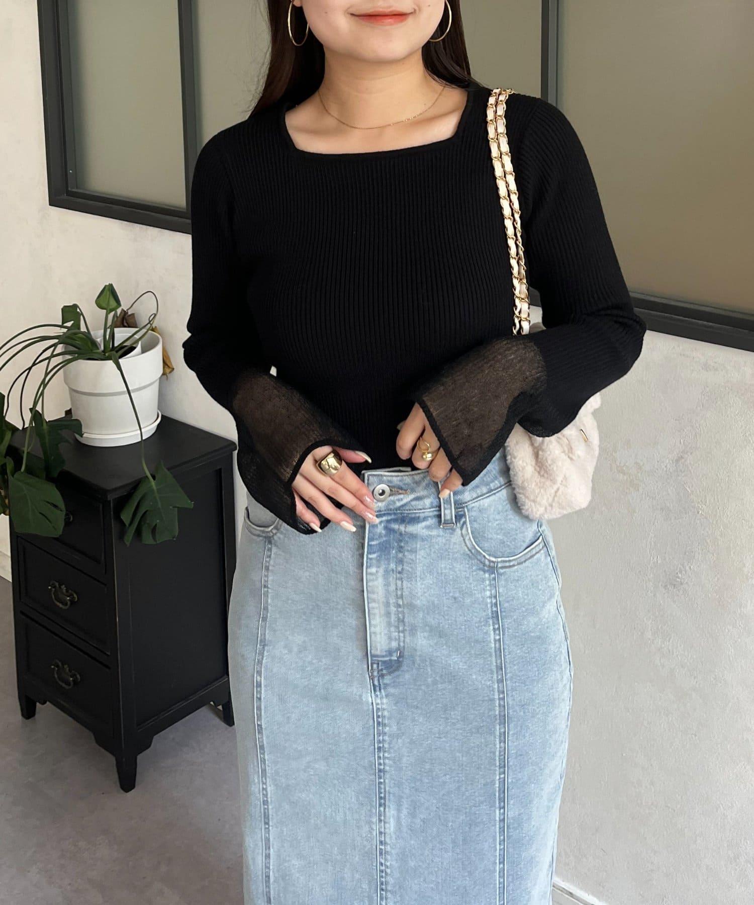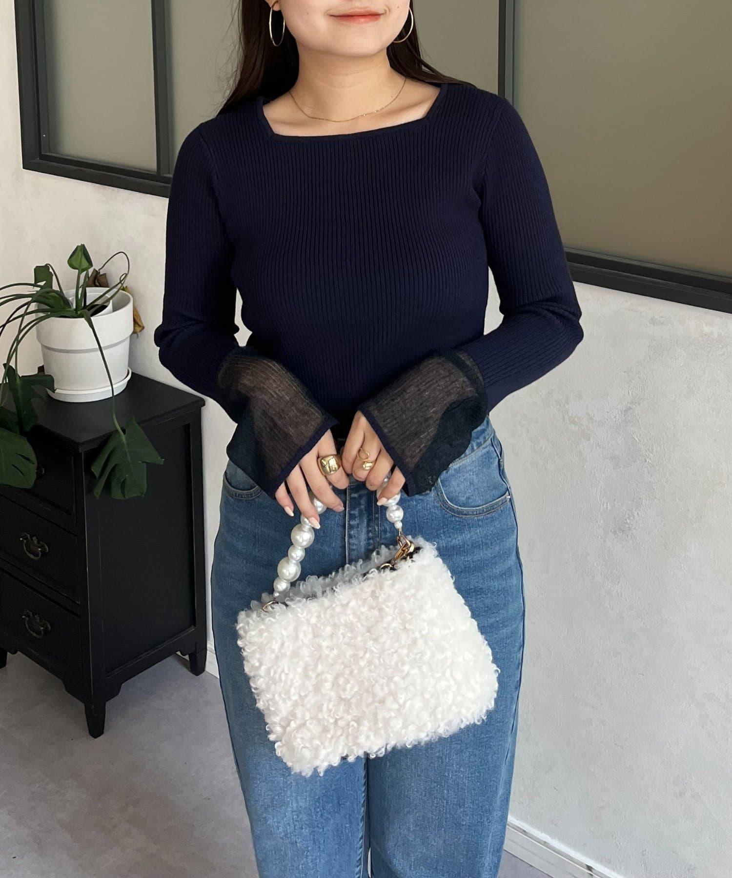 袖部透視方領羅紋針織衫