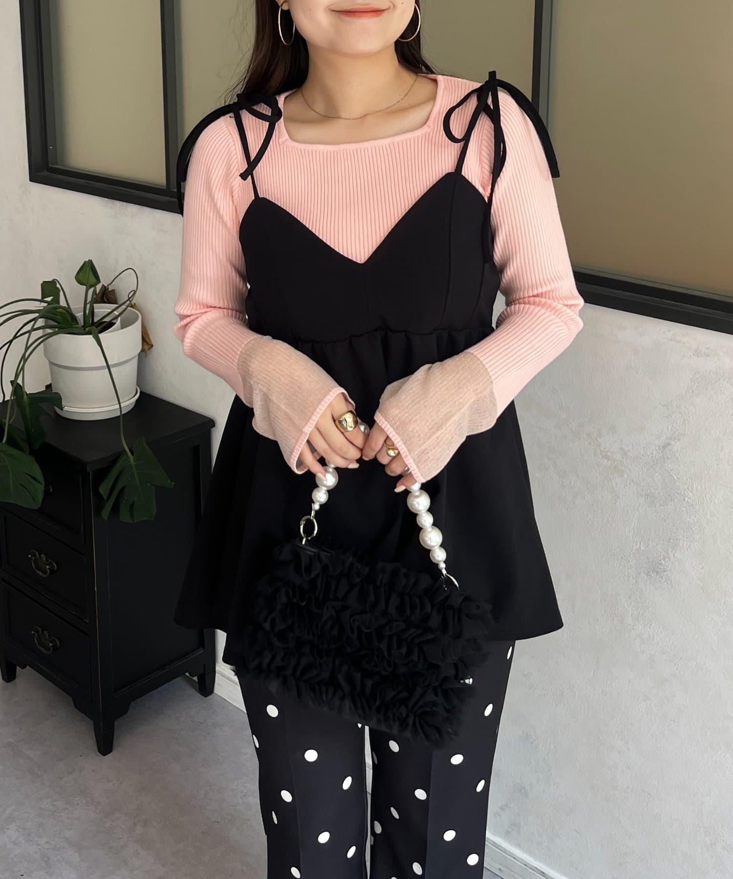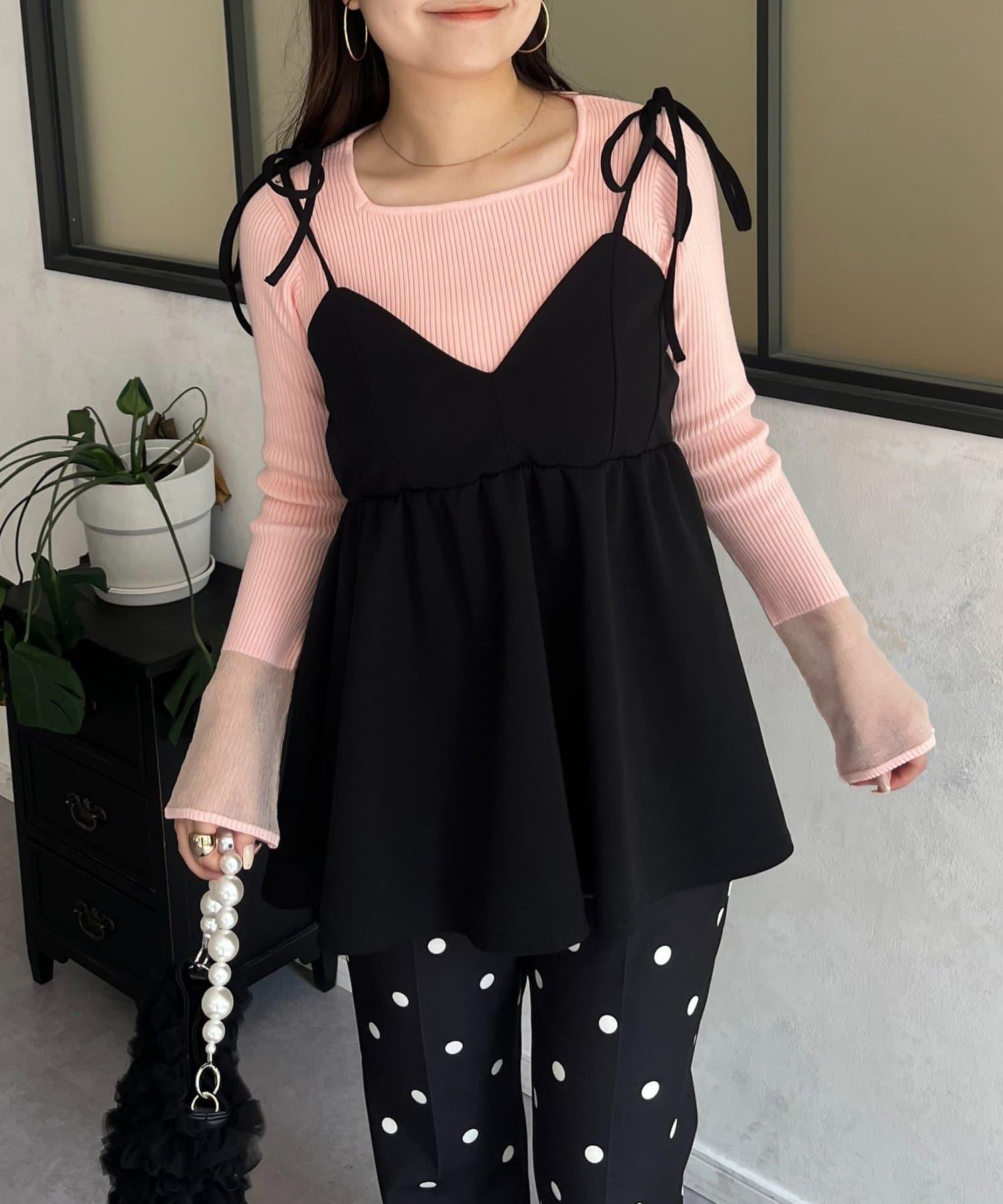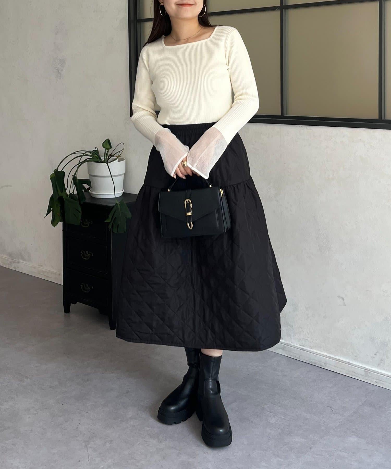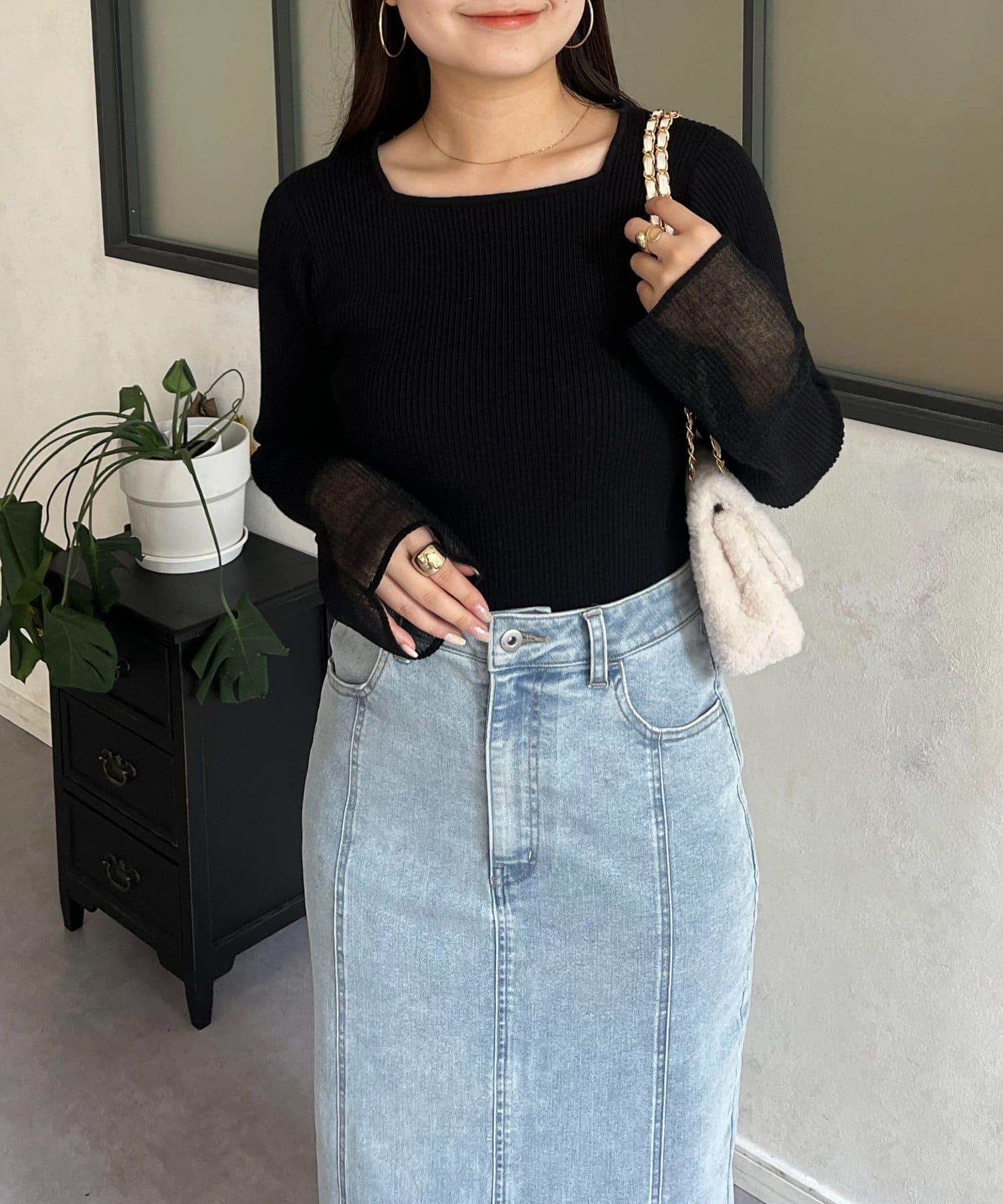 袖部透視方領羅紋針織衫
