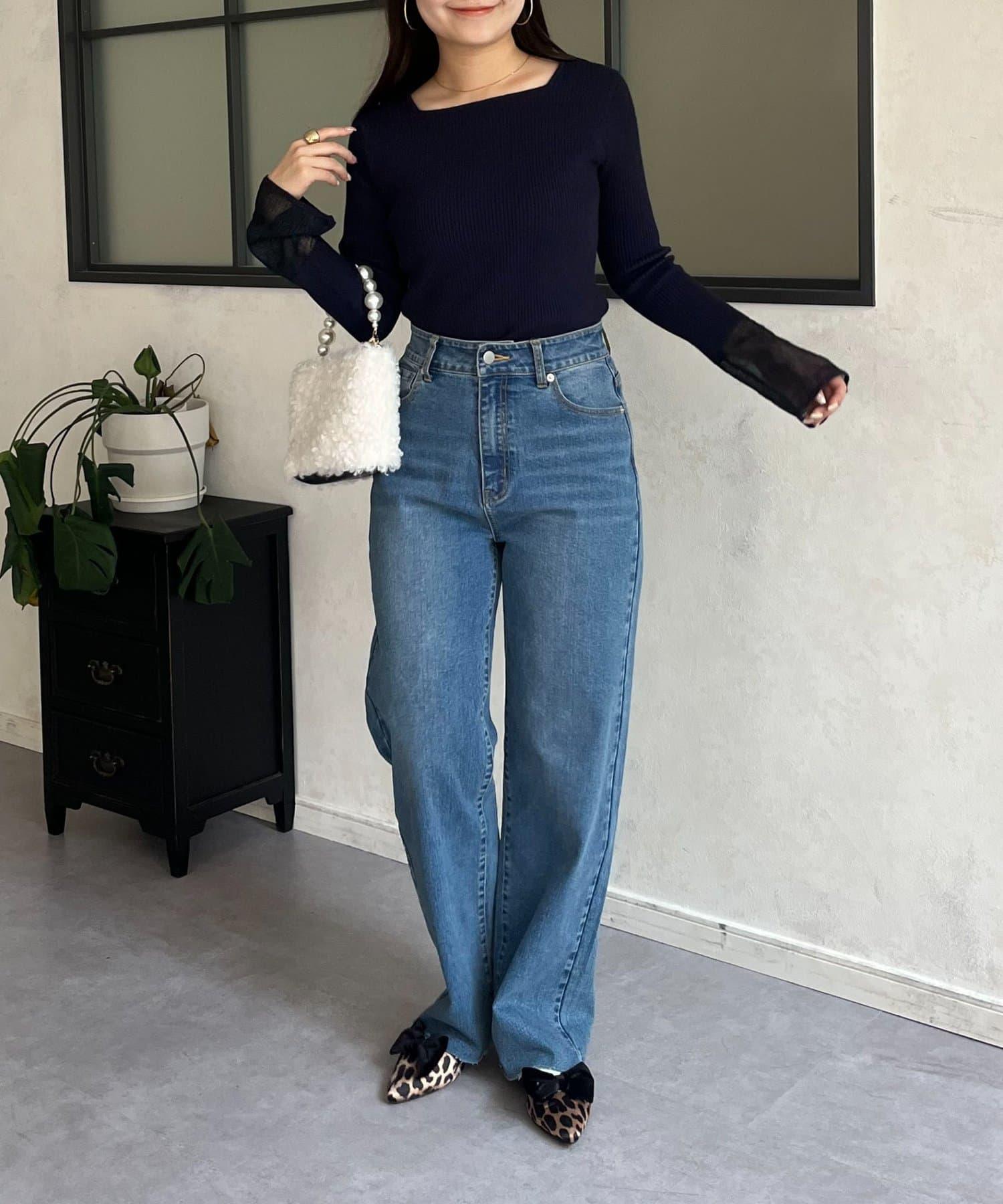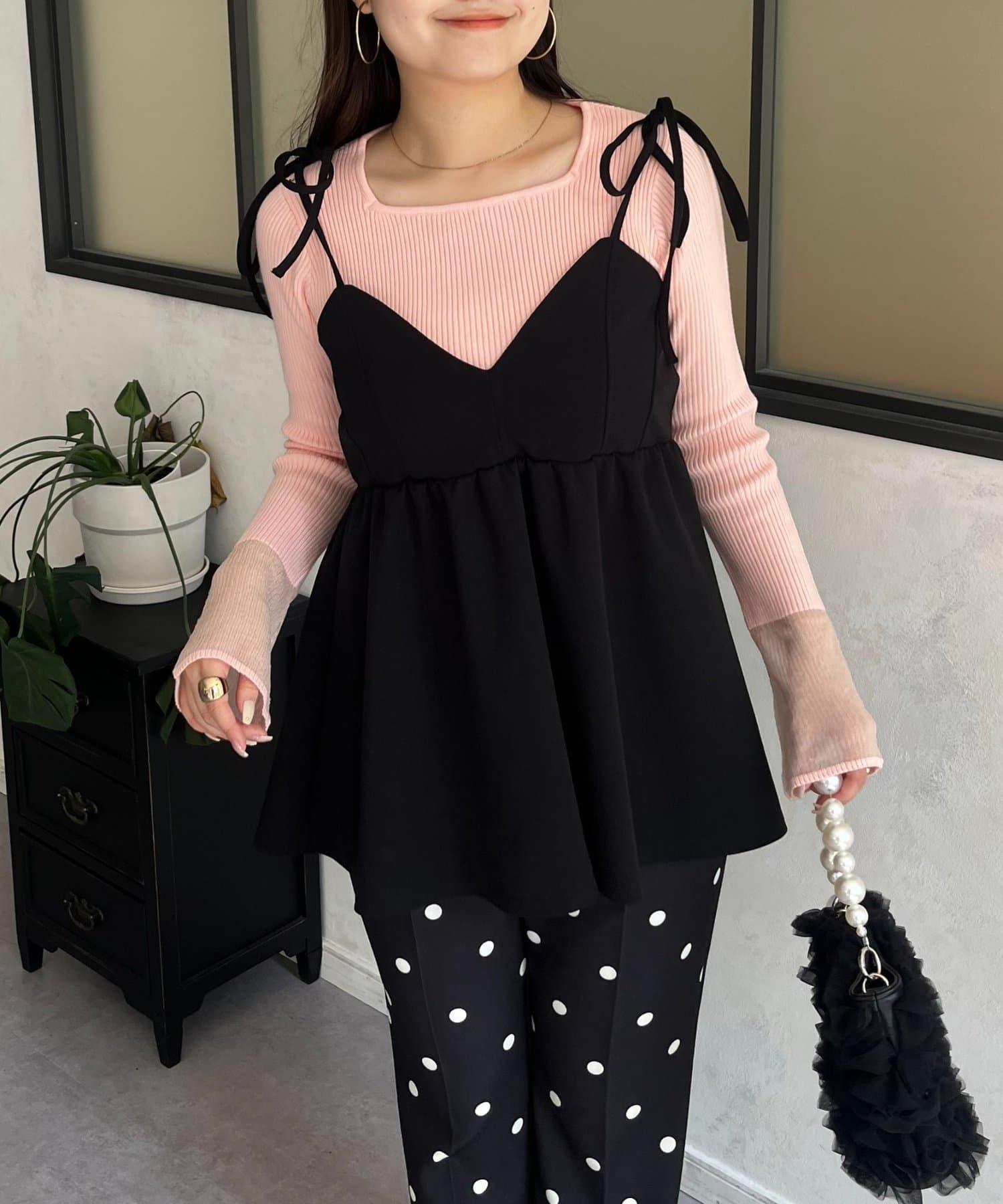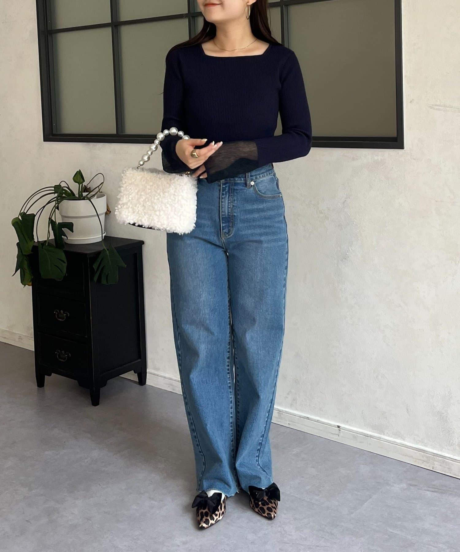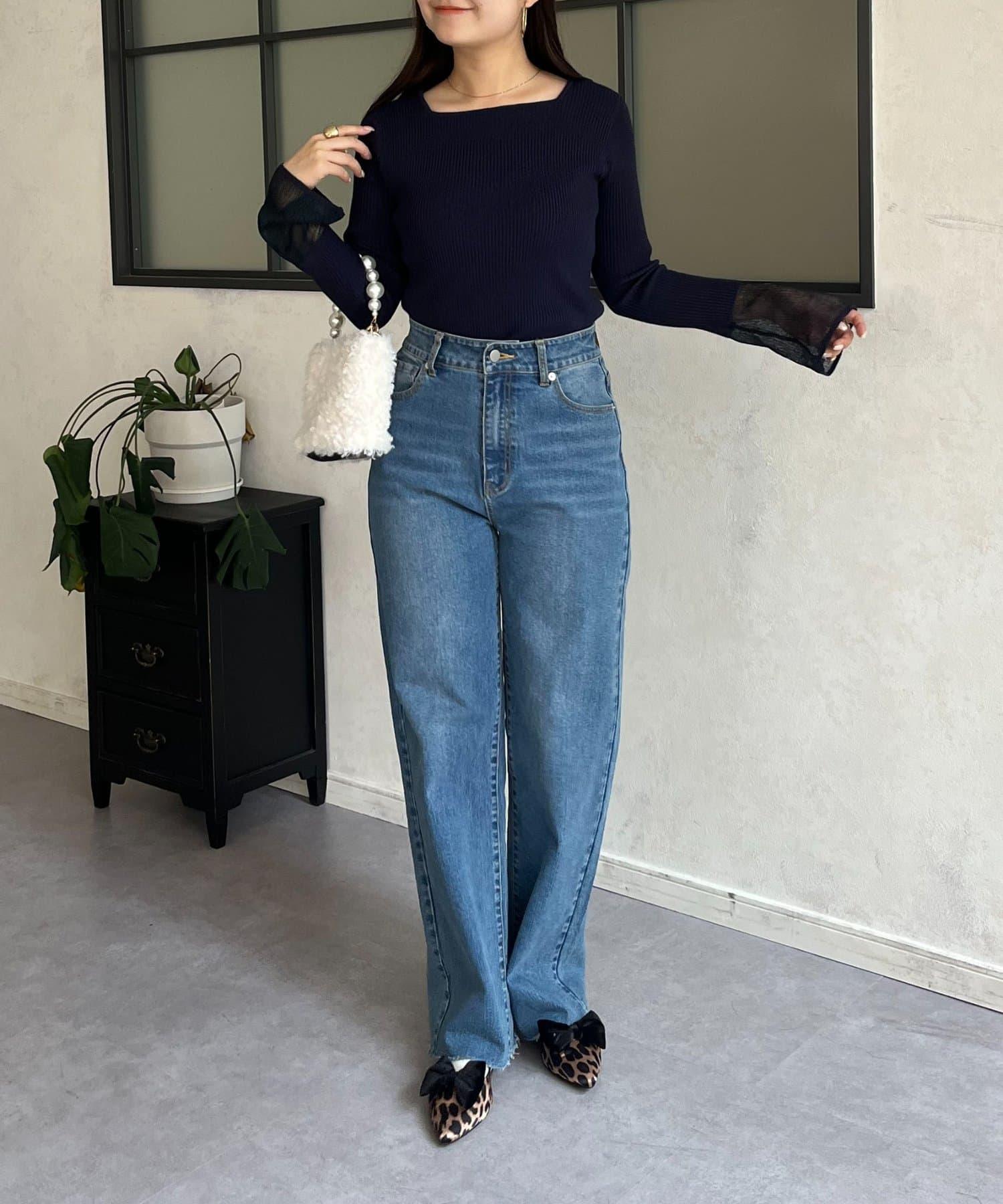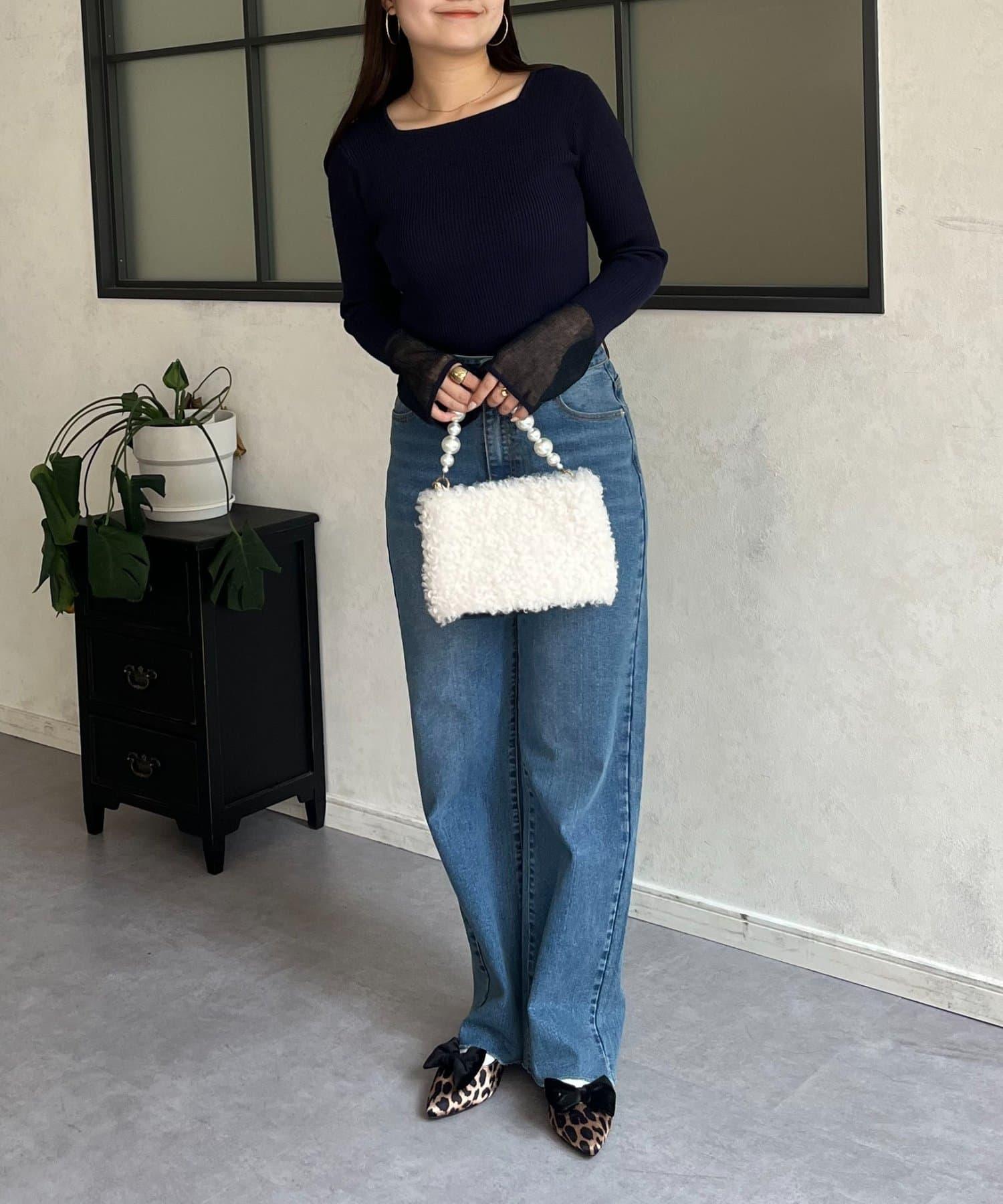 袖部透視方領羅紋針織衫