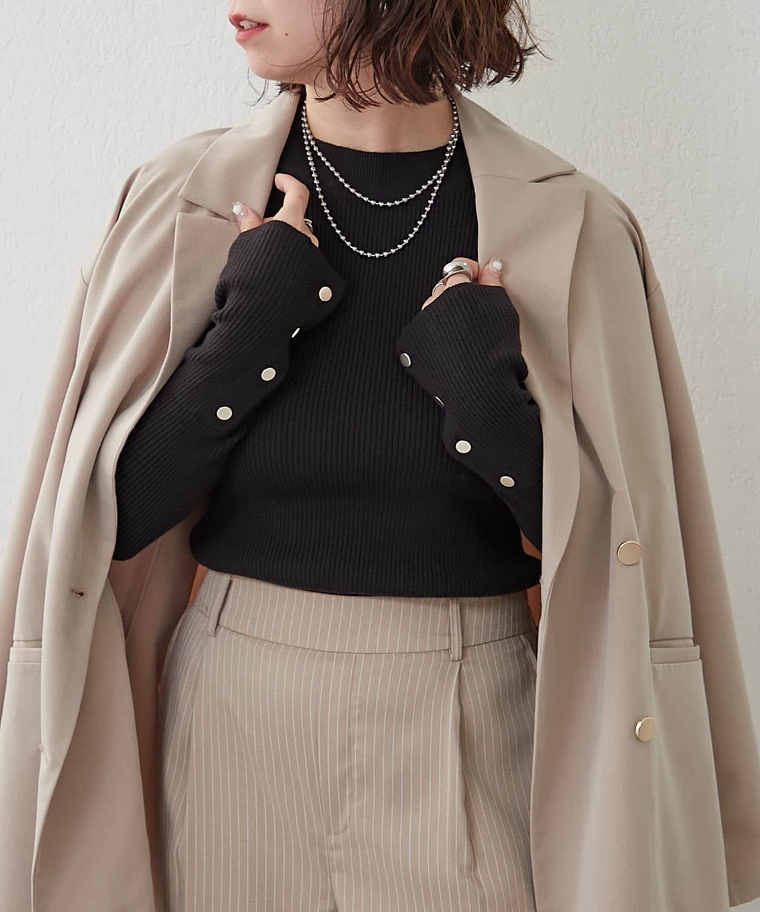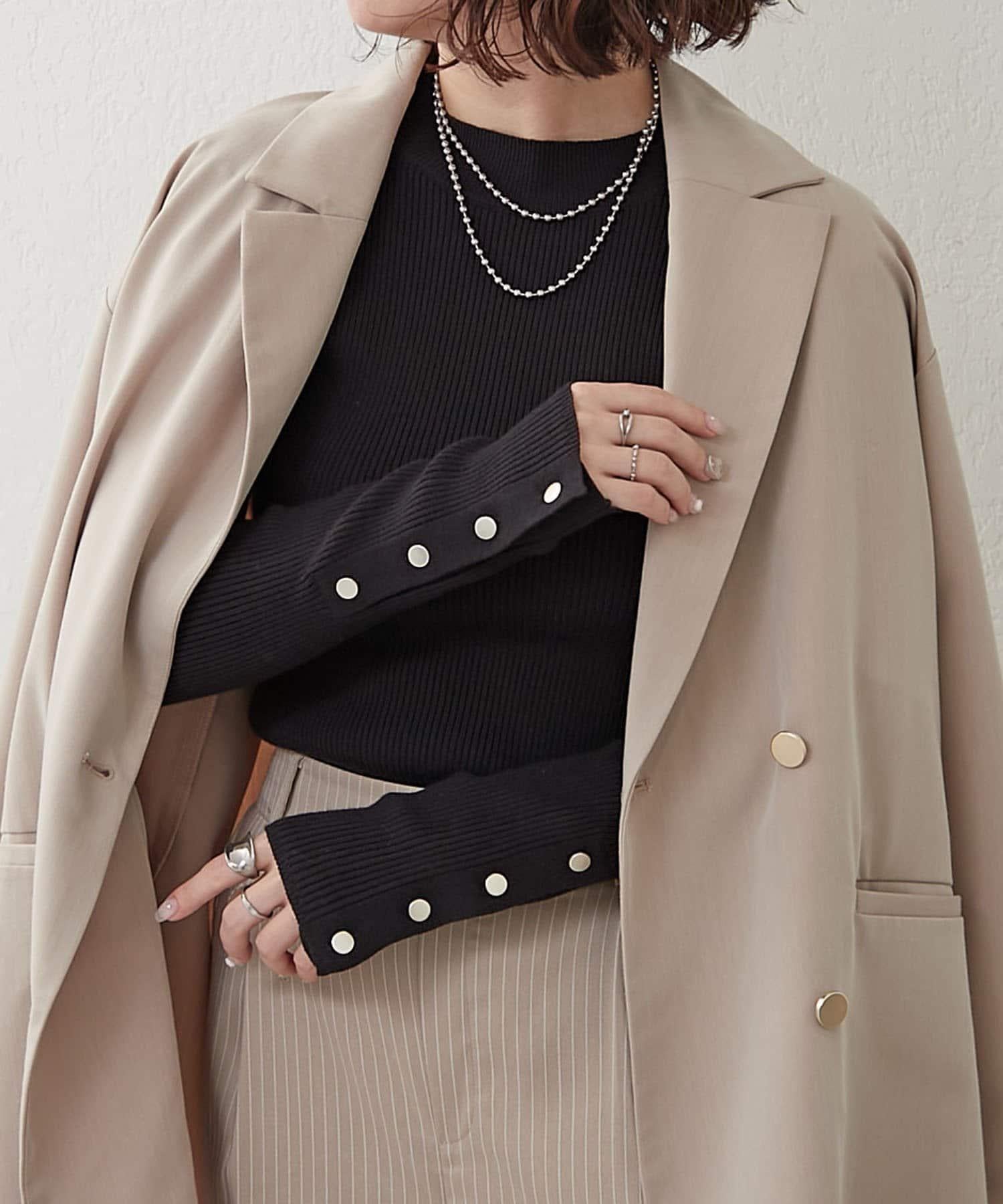 設計簡潔,因此注重 "優美的輪廓"!看似簡單的袖口上的紐扣是一個關鍵點。