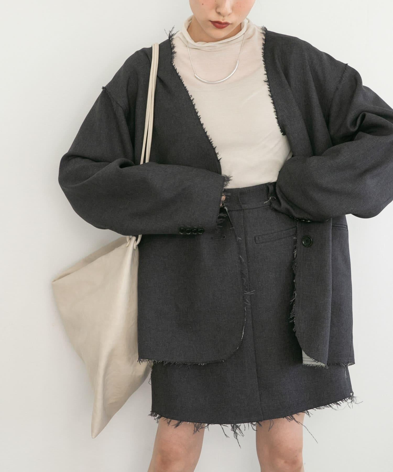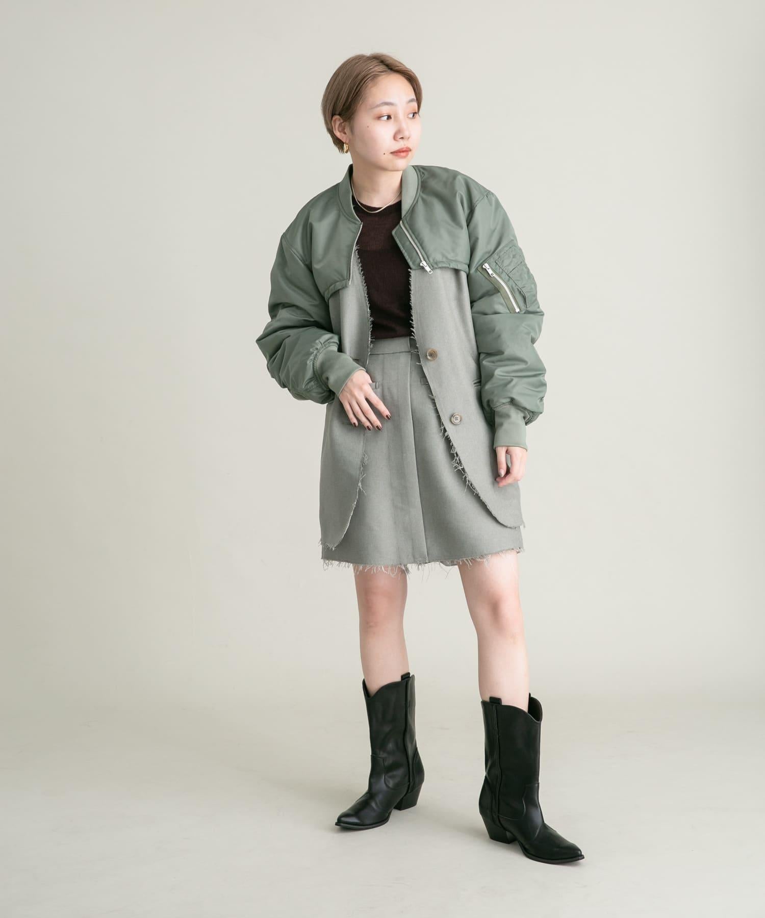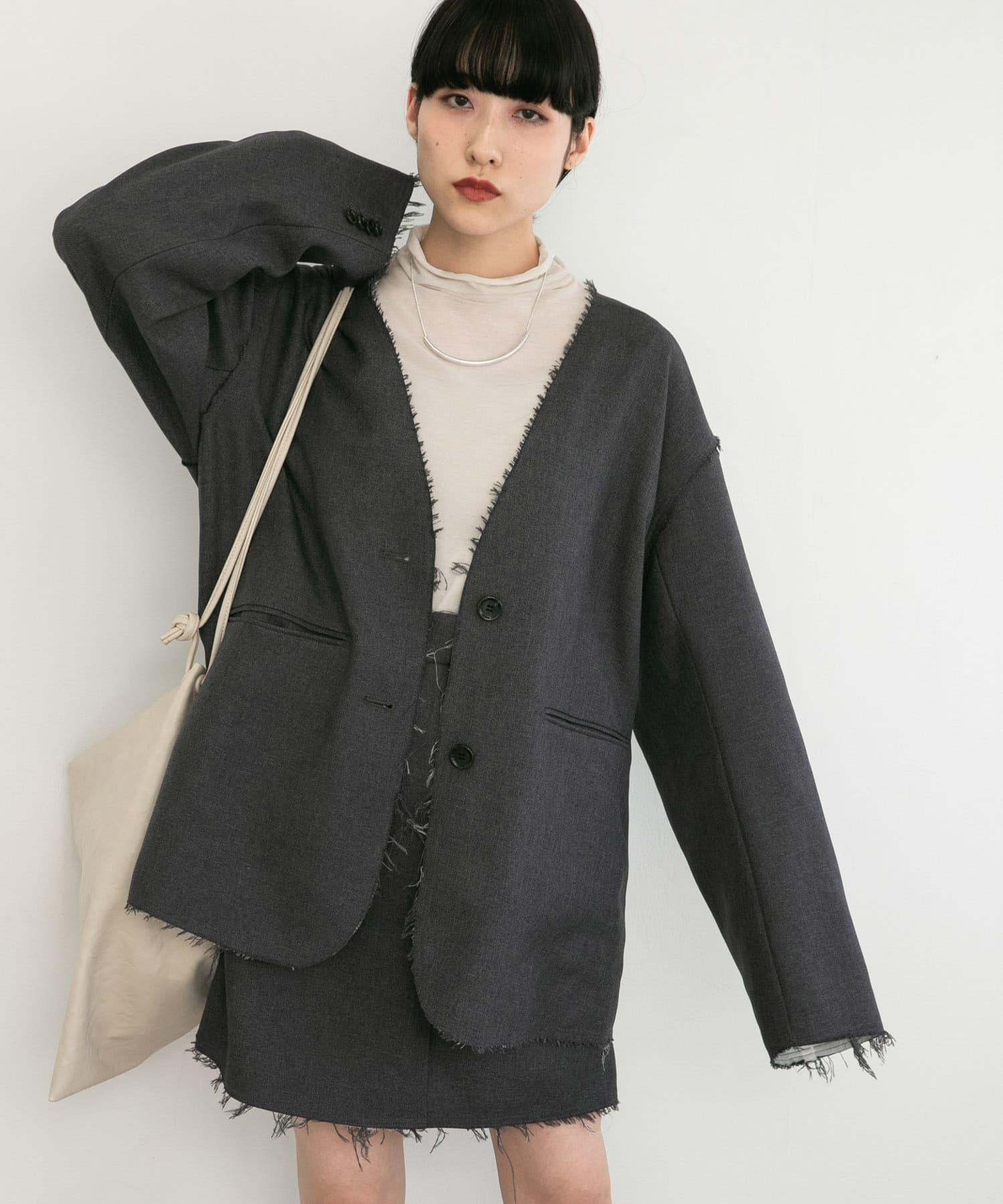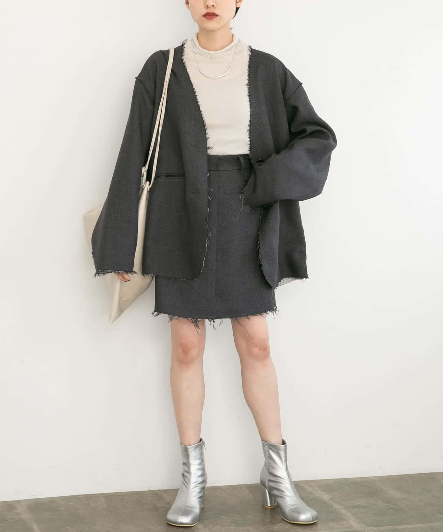 搭配小巧的上衣,給人成熟的印象。搭配超大號運動衫和針織衫也很可愛。另外,建議與同材質的無領剪裁外套(KB36-27V070)搭配。
