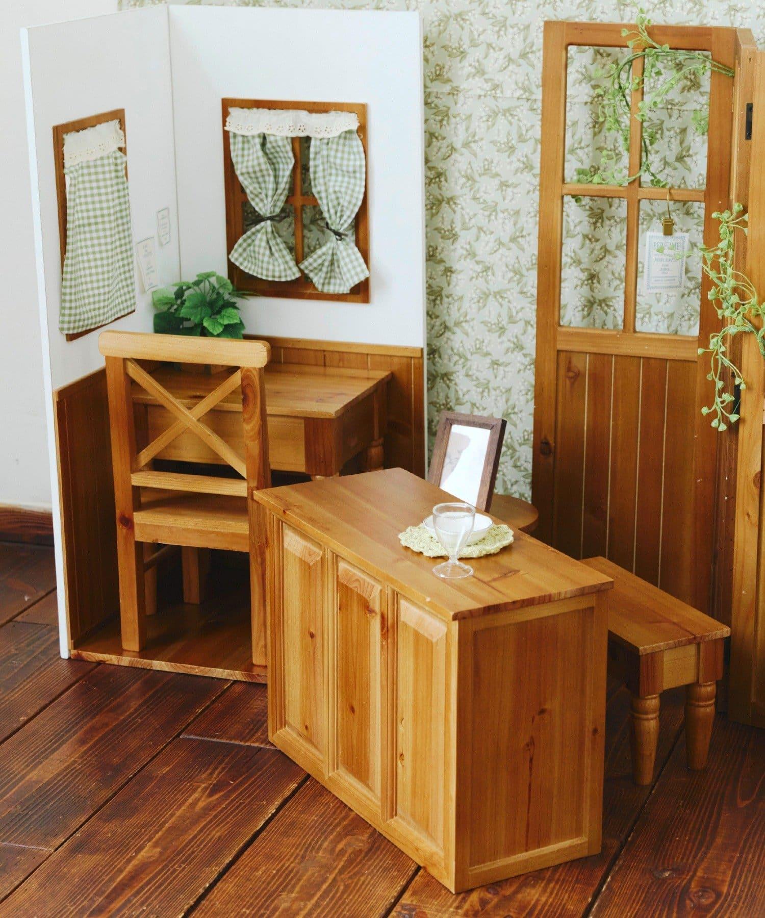 木桌的靈感來自於 1/3 娃娃的生活。
