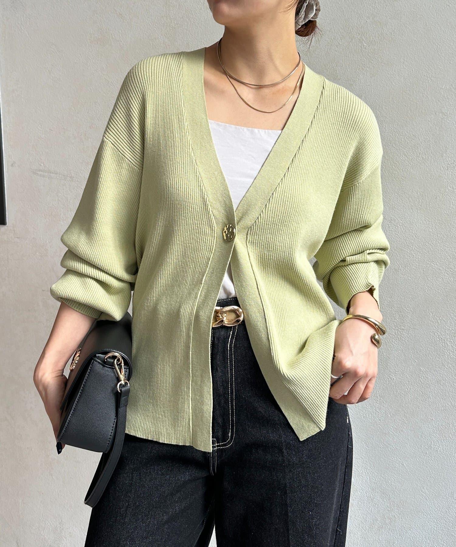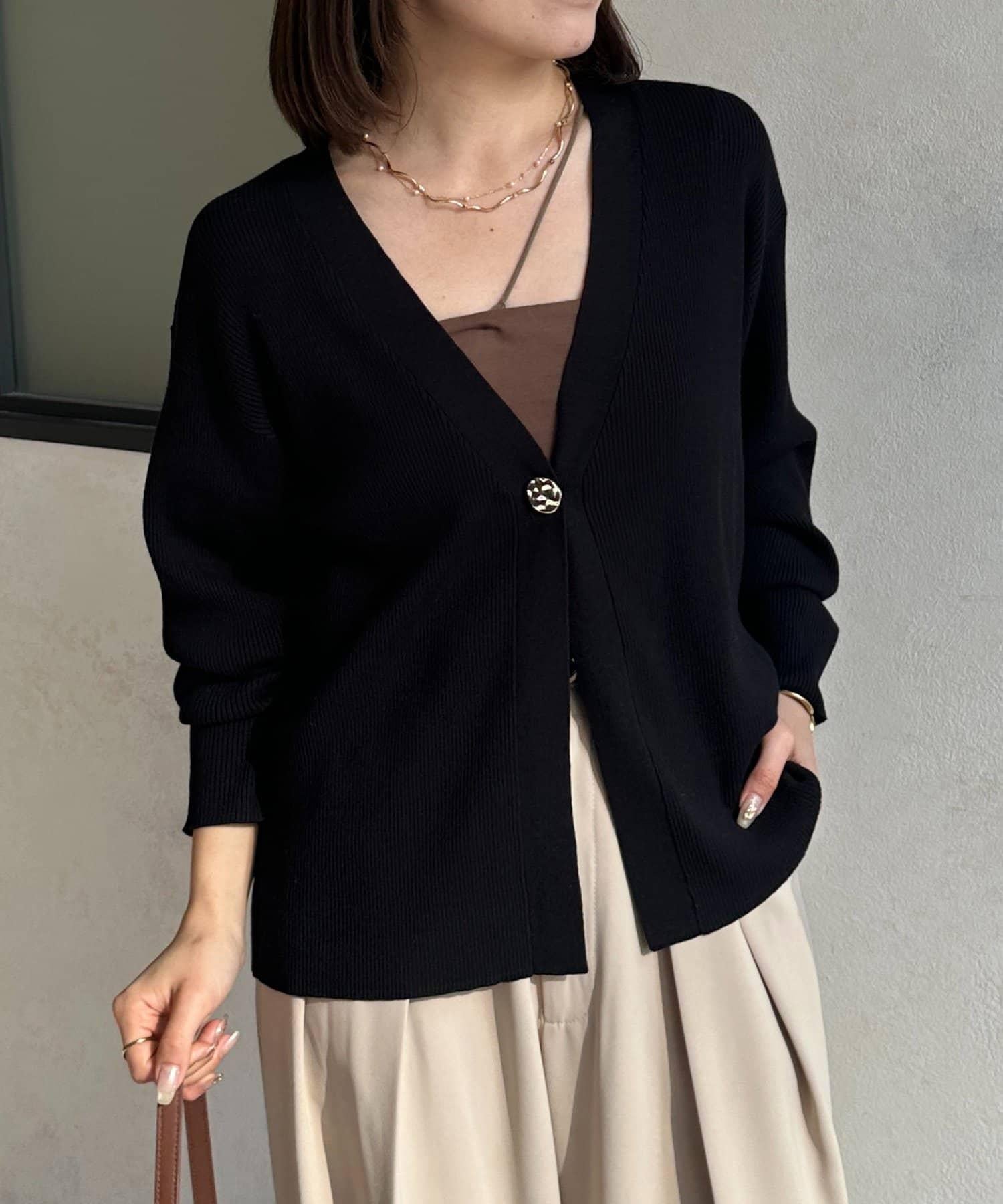 裝飾紐扣 羅紋針織 開衫