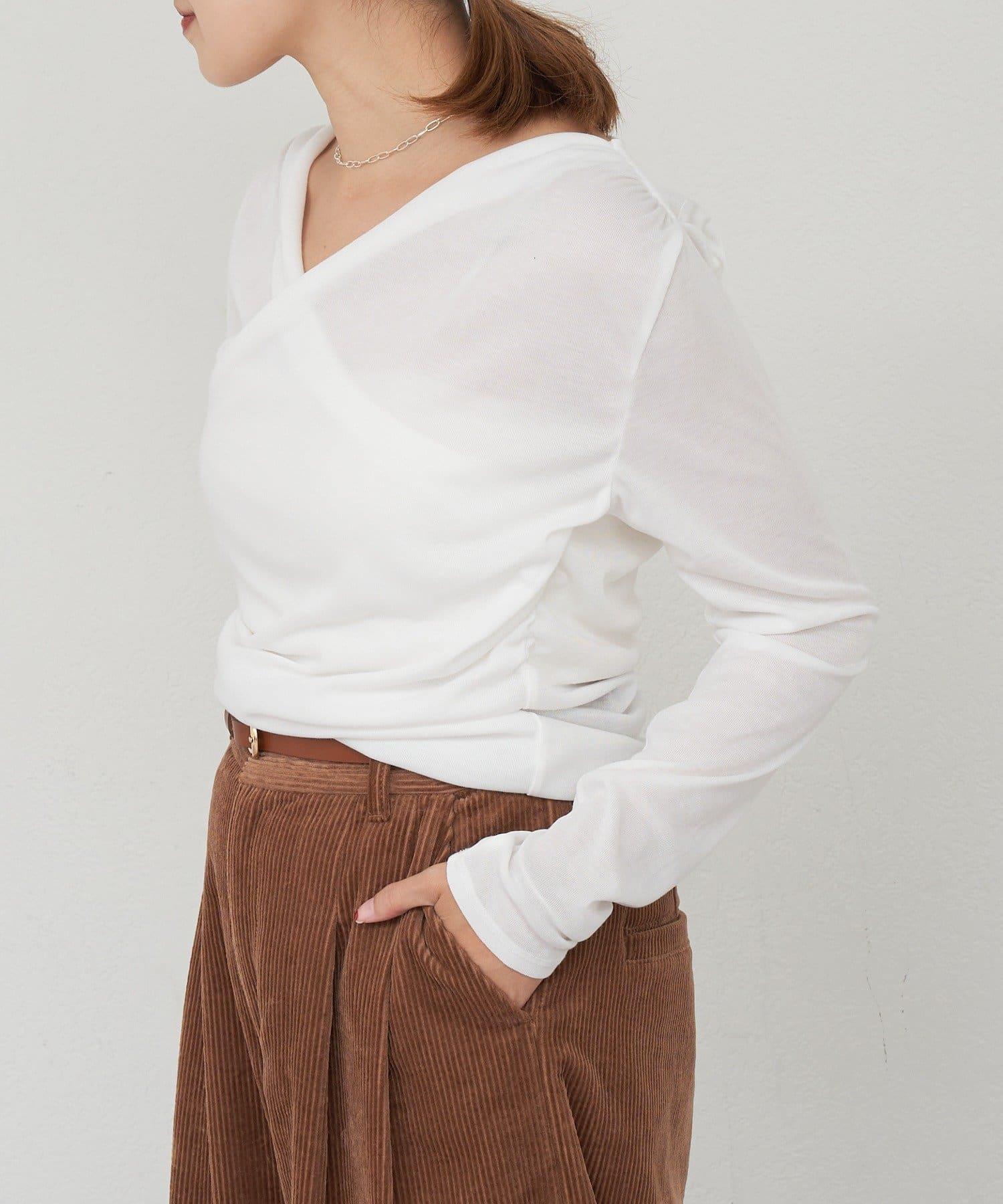 這款Cache-coeur上衣能將肩頸部線條展現得淋漓盡致。