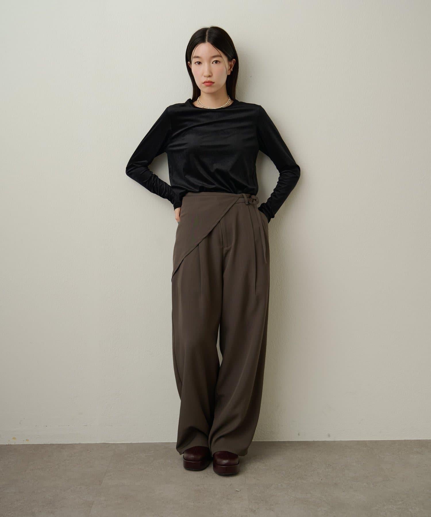 褲子的雙層收腰設計能巧妙地遮住令人擔憂的腰部。