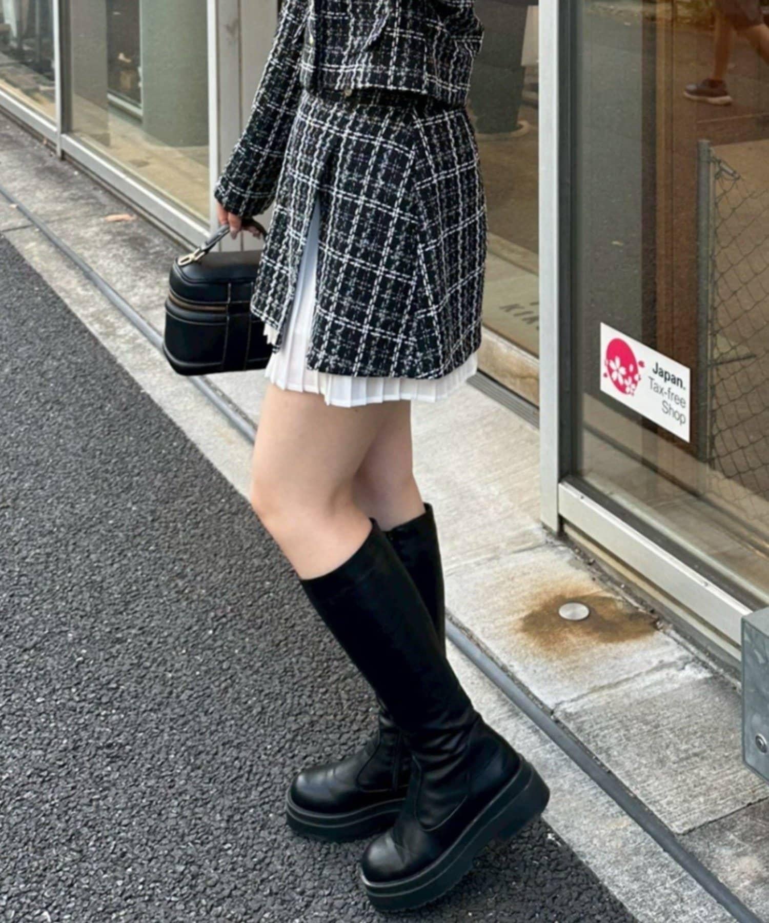 搭配及膝襪和高跟鞋,也能穿出少女感。